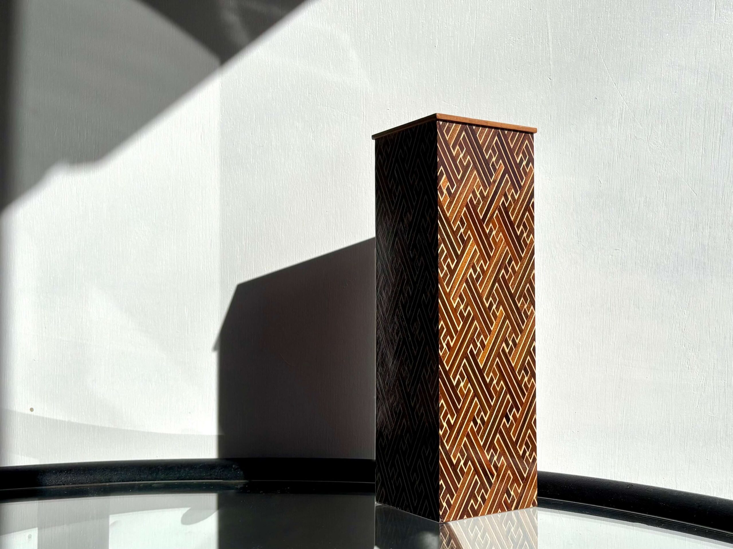 No.12139「日本の工芸品:寄木細工のベース」高さ21cm