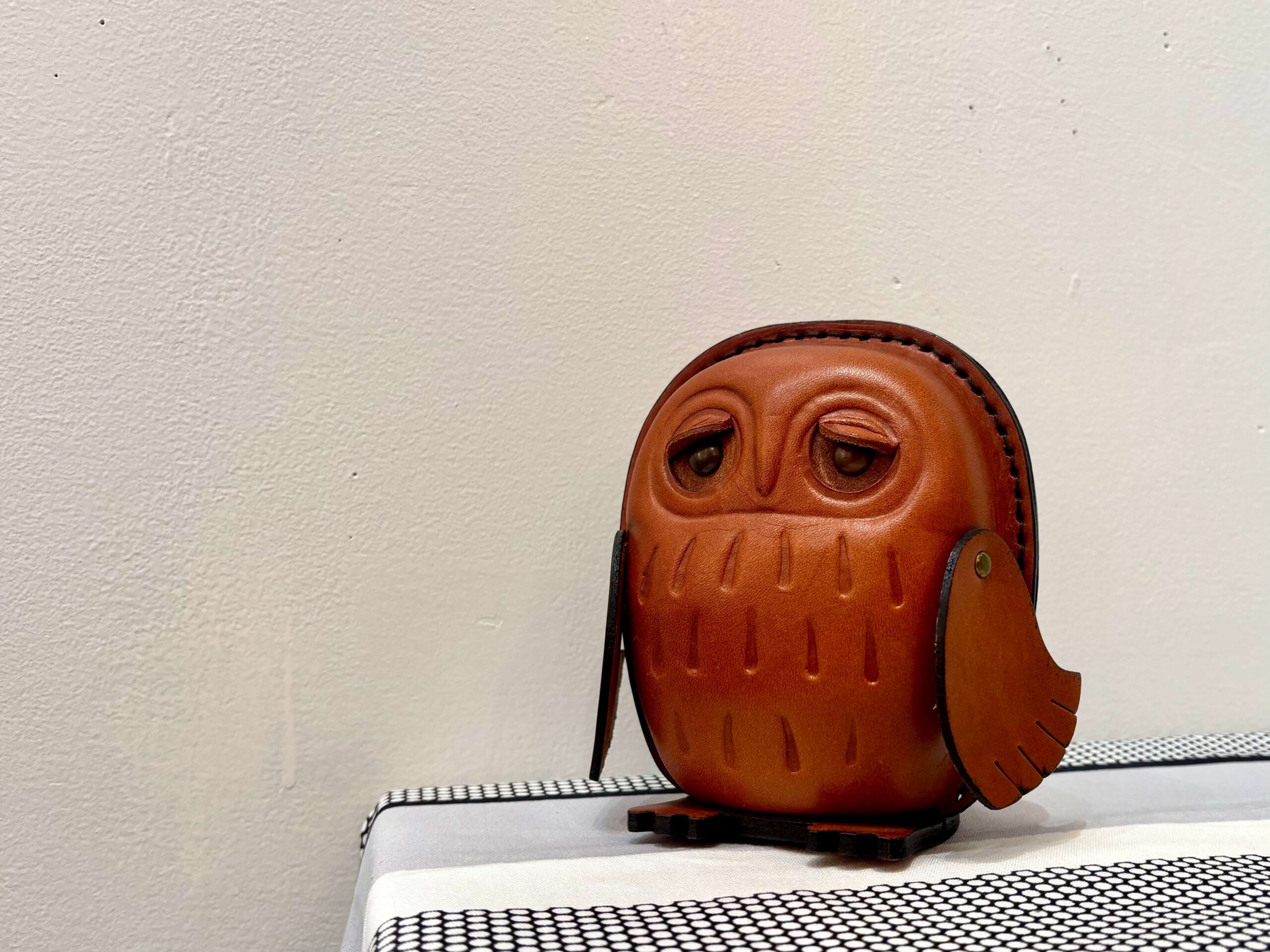 No.12081「ヌメ革の貯金箱〈フクロウ〉:鴻池製作所」高さ13.5cm SOLD