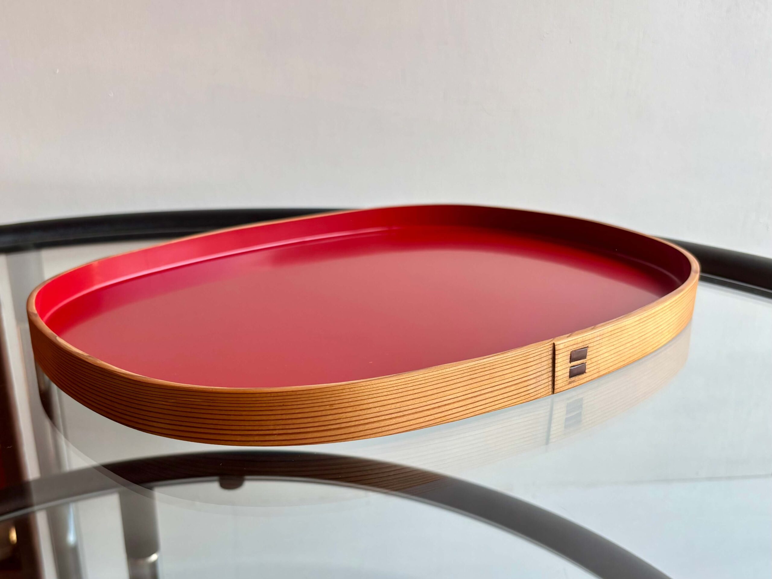 No.11665「曲げわっぱ オーバルトレイ:朱色」 幅33.5cm SOLD