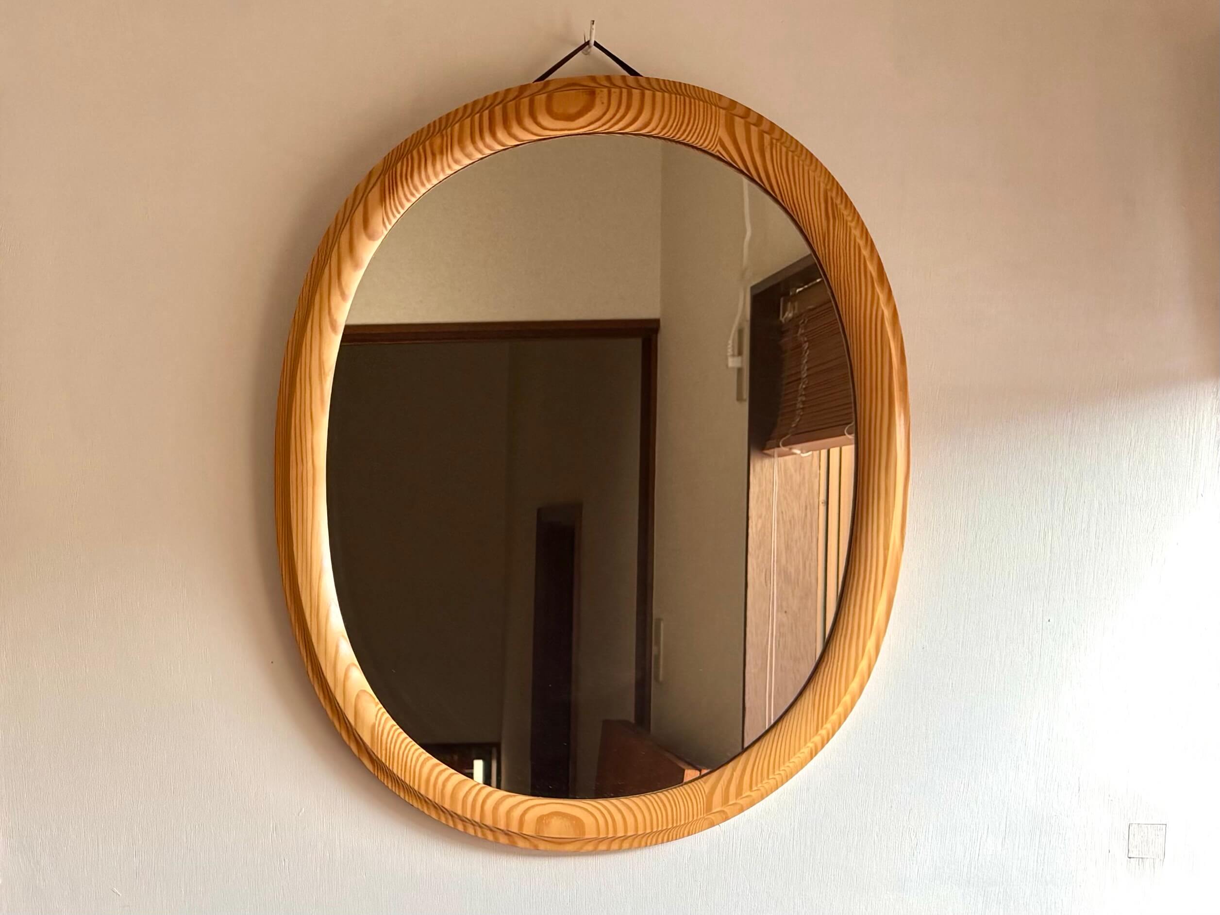 No.11853「オーバル型 ウォールミラー:無垢集成材」45×55.5cm
