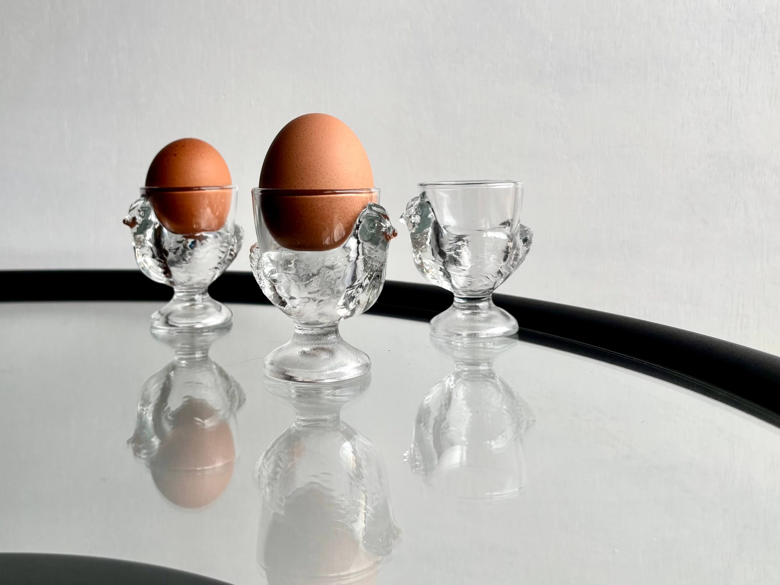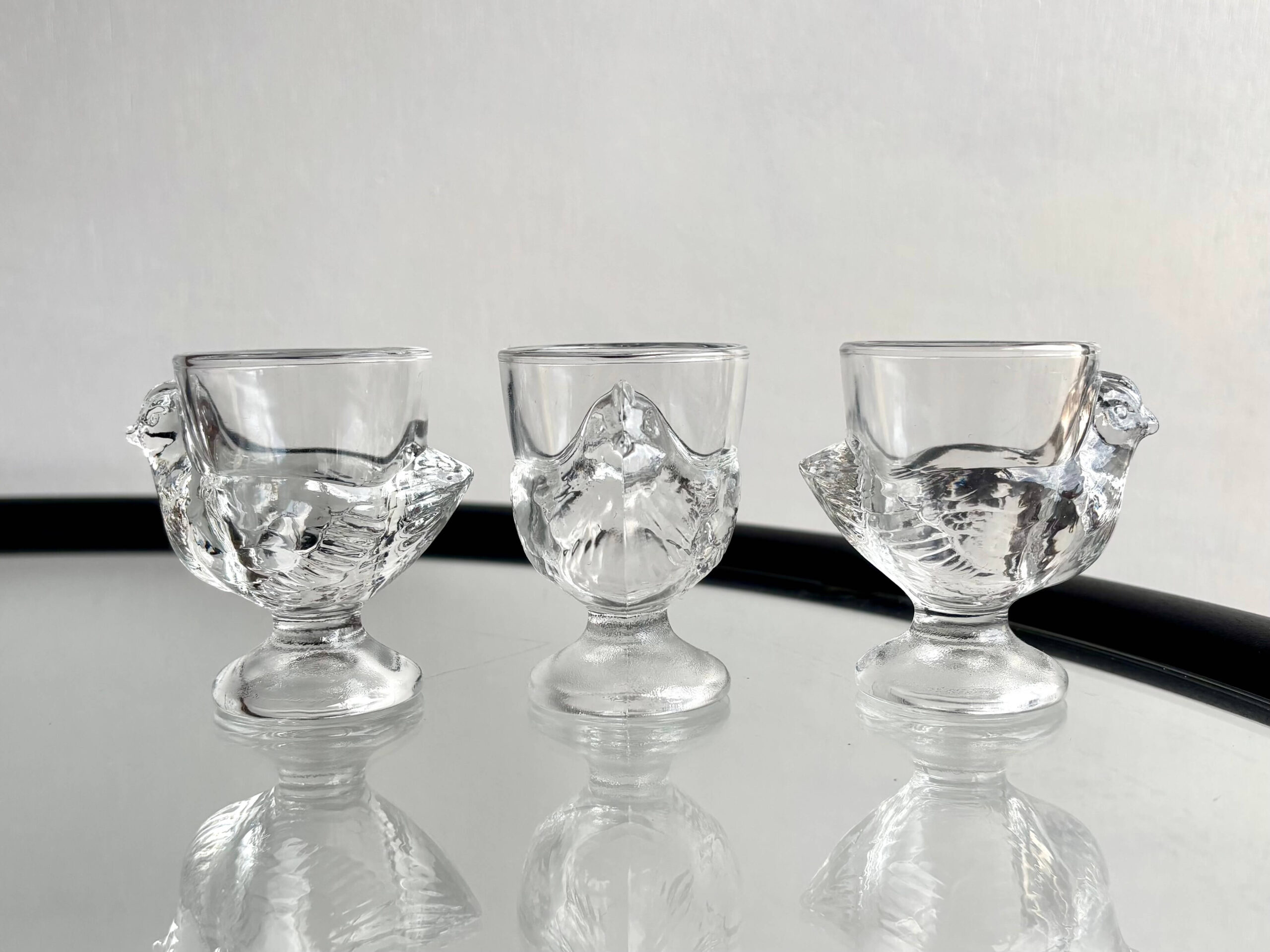 ニワトリをモチーフとした、エッグスタンド3点セット。