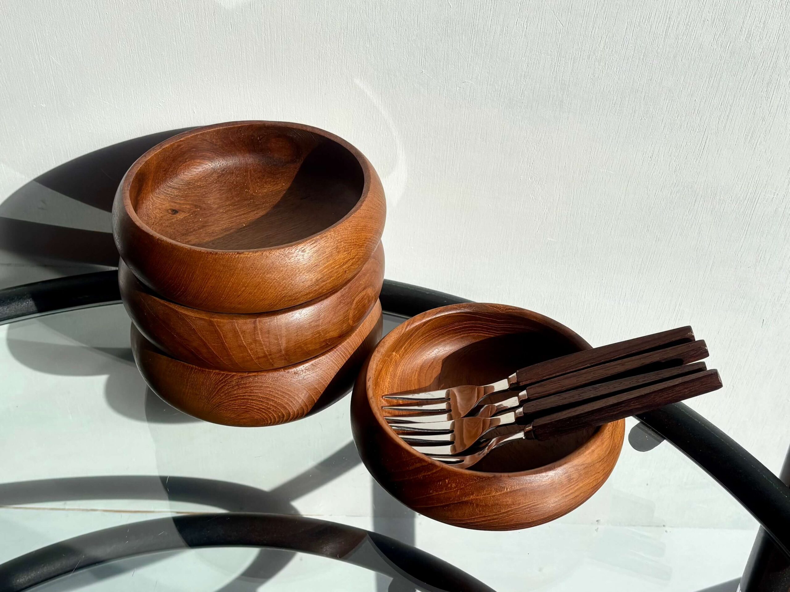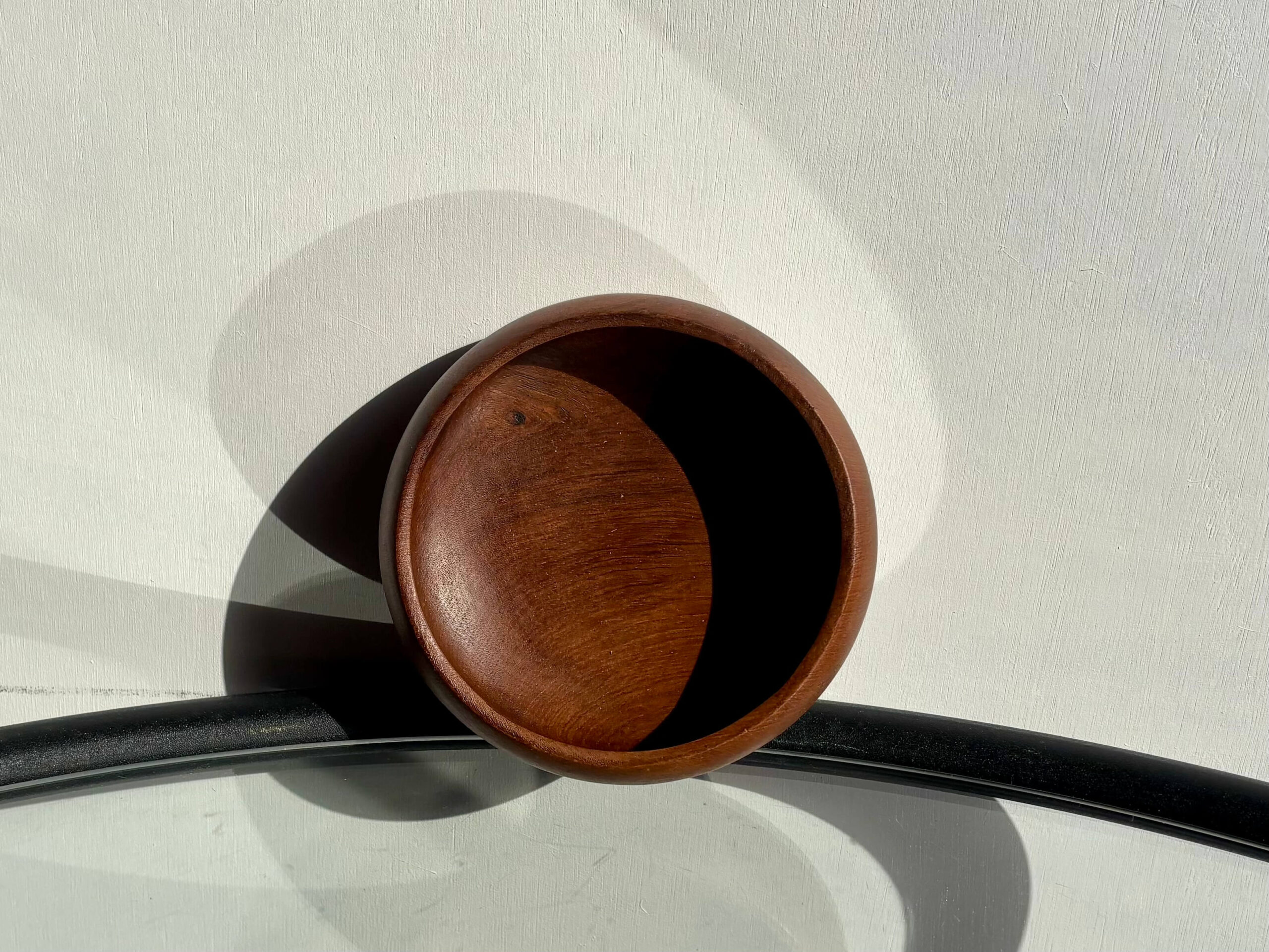 贅沢に無垢のチーク材1本から削り出したボウル。