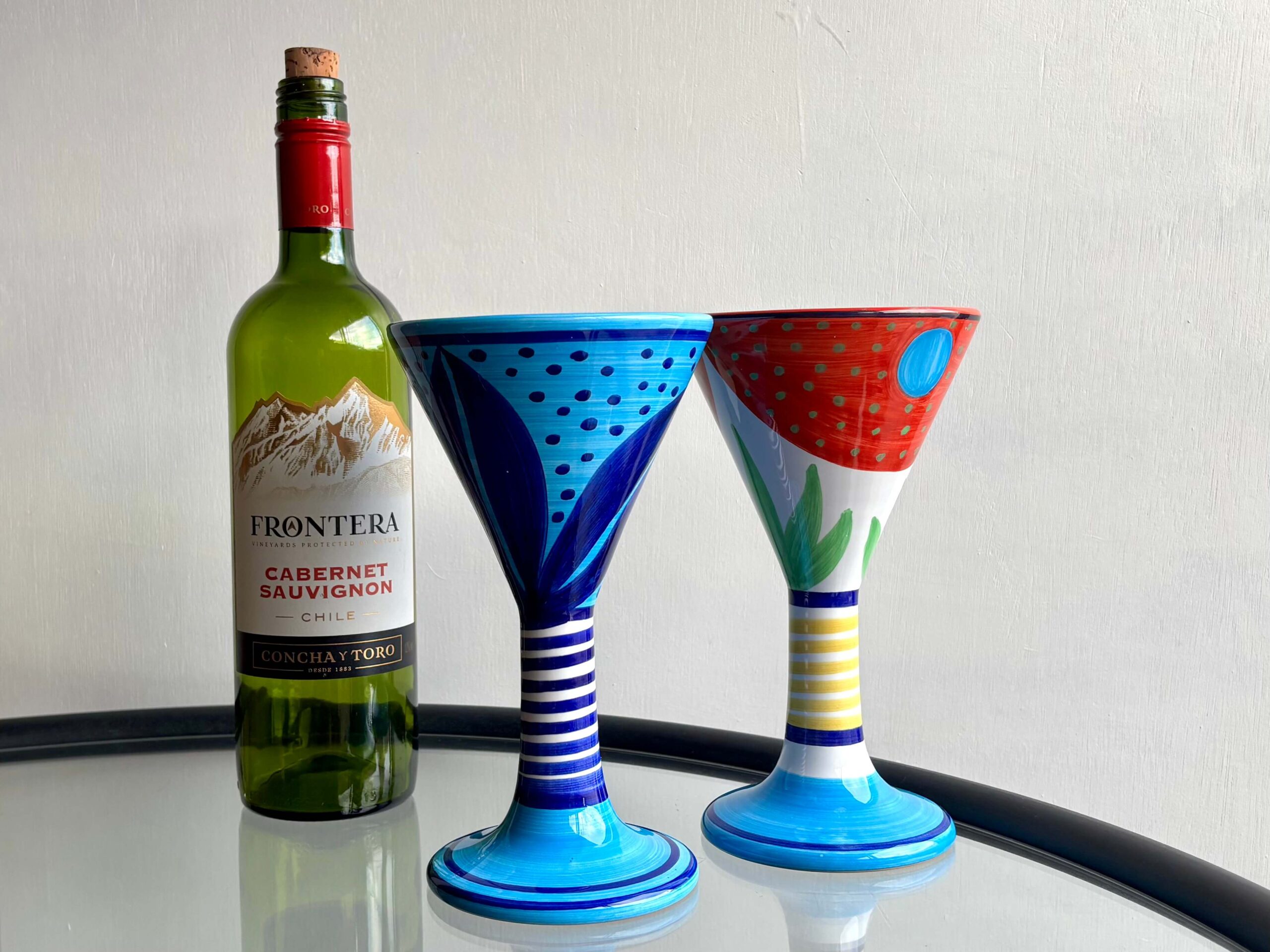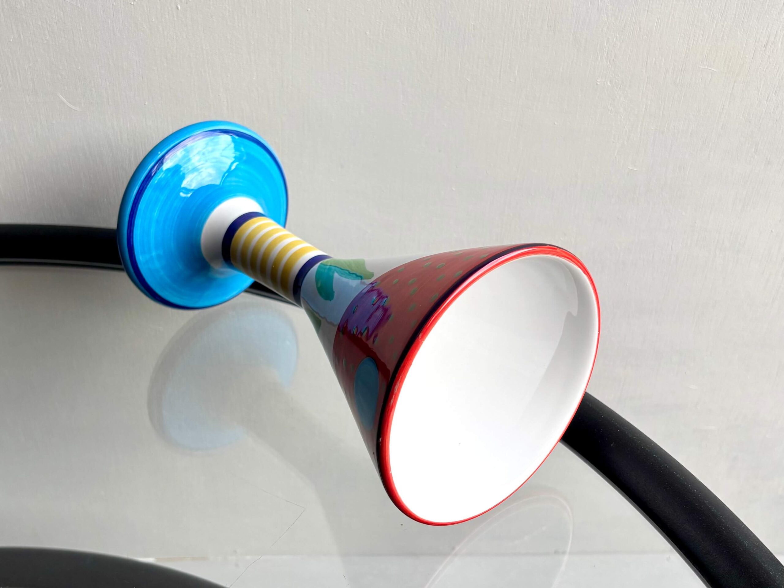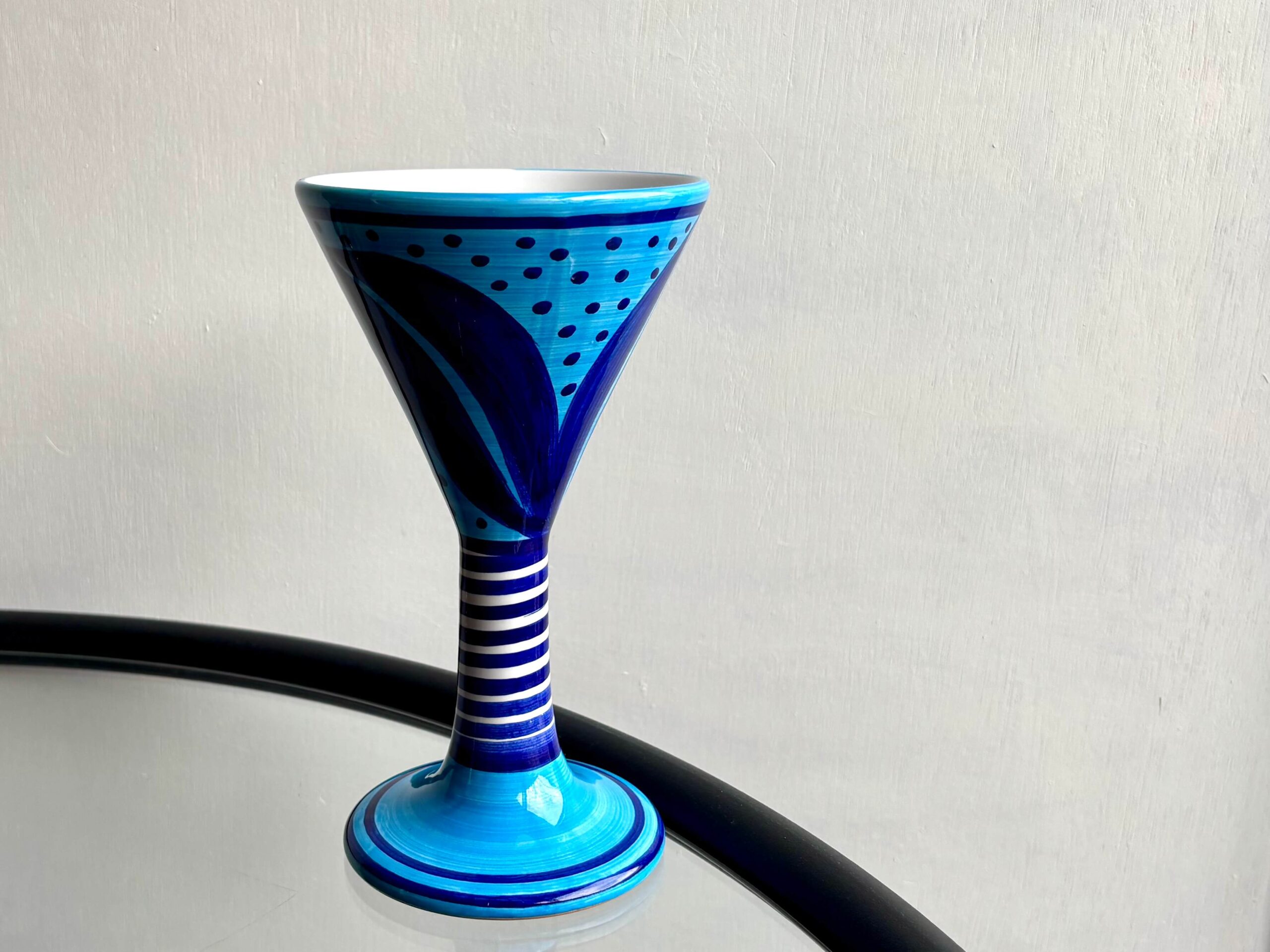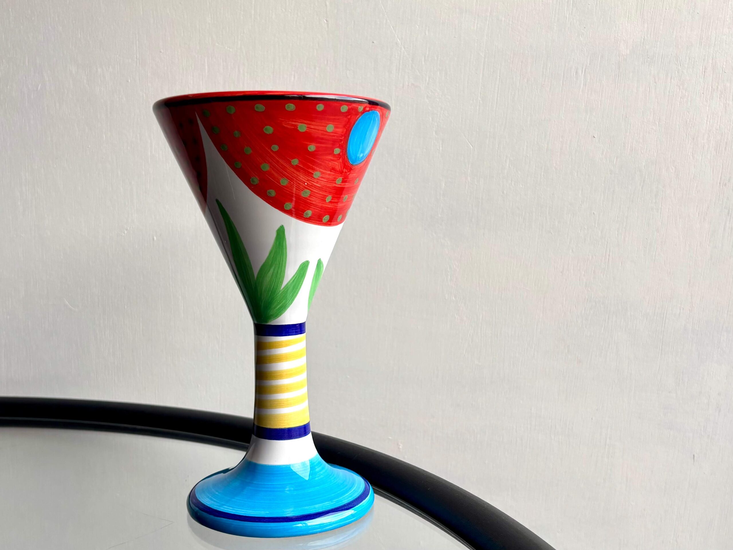 高さ19cm、ユニークなパターンと色鮮やかさが目を惹くゴブレット2種。