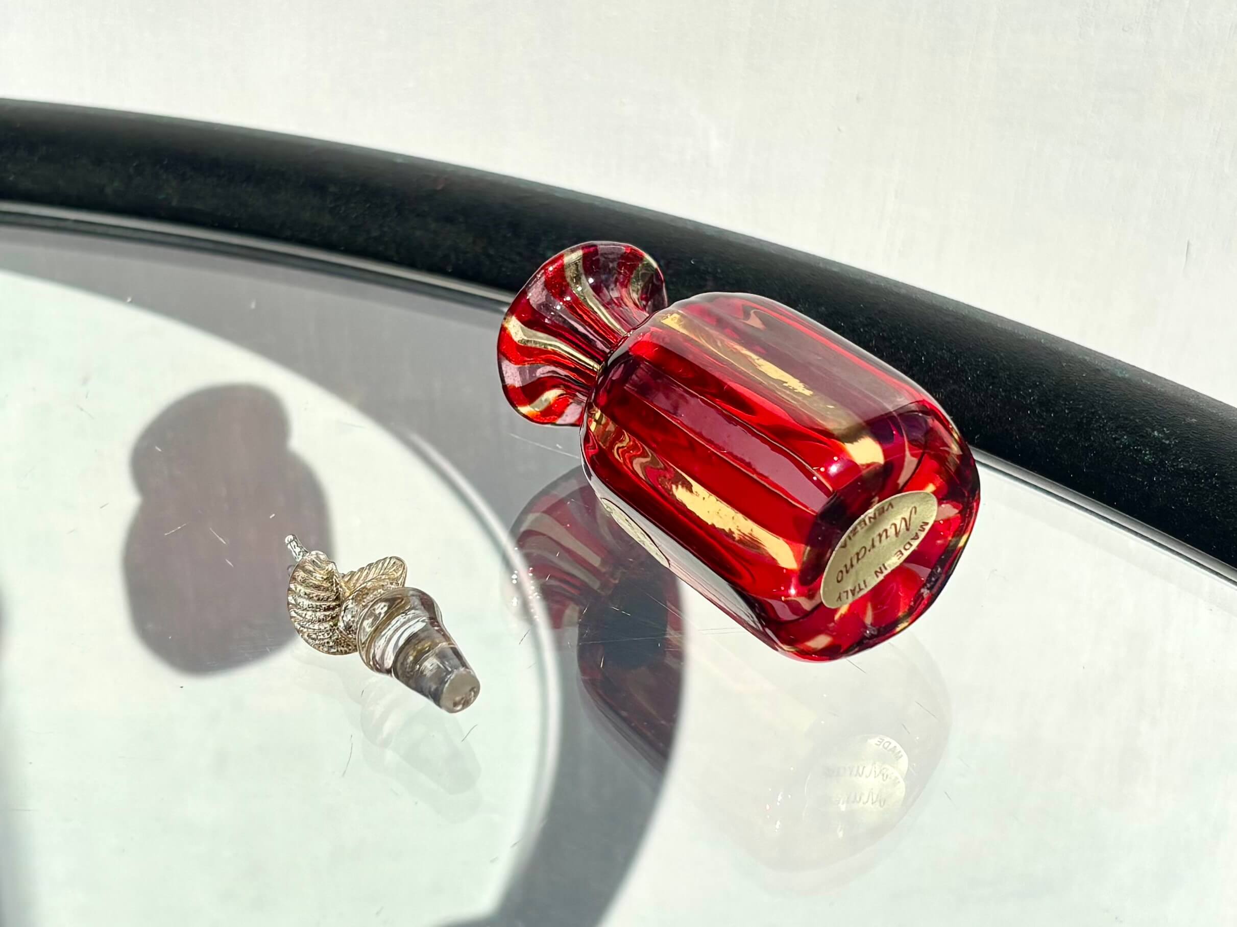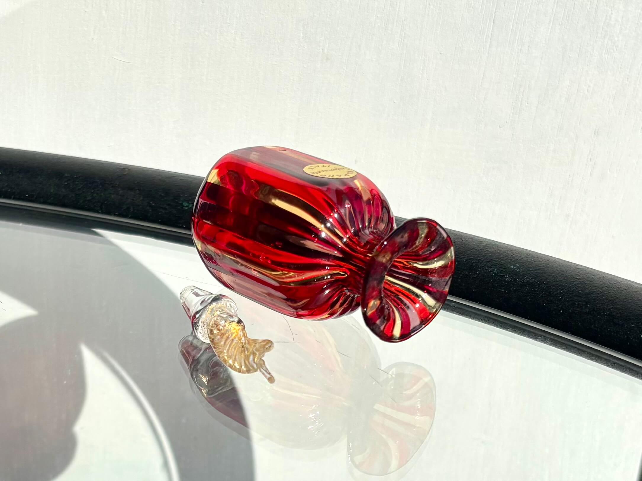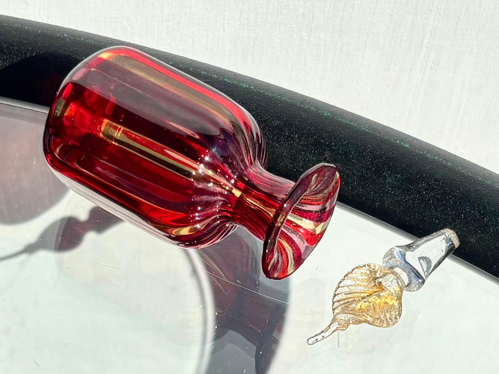 ストライプの赤い六角形ボトルにゴールド装飾された栓が映えます。
