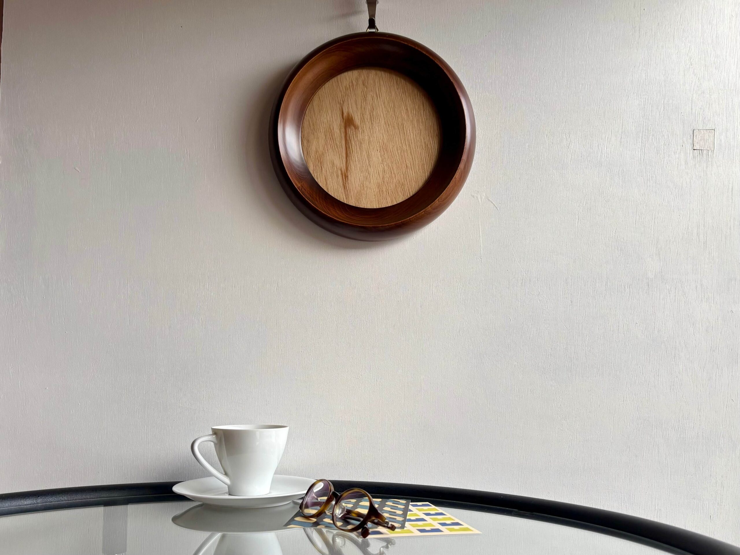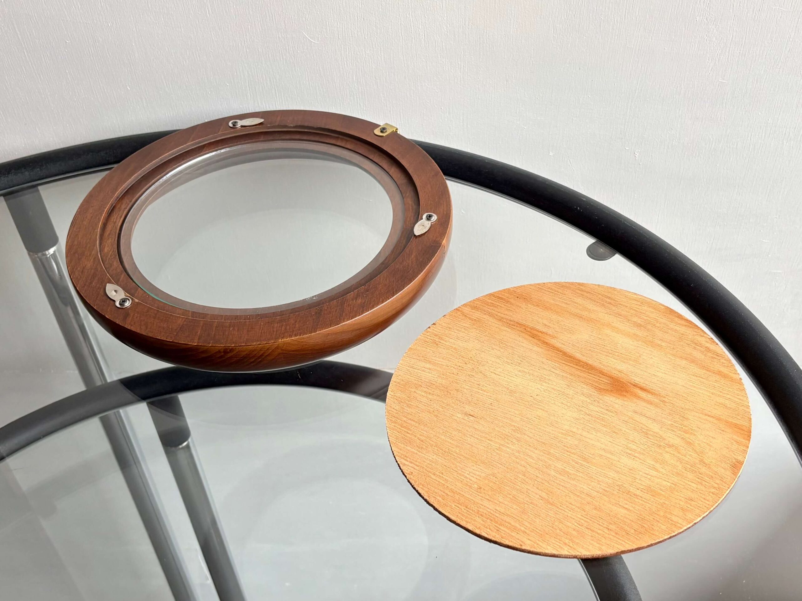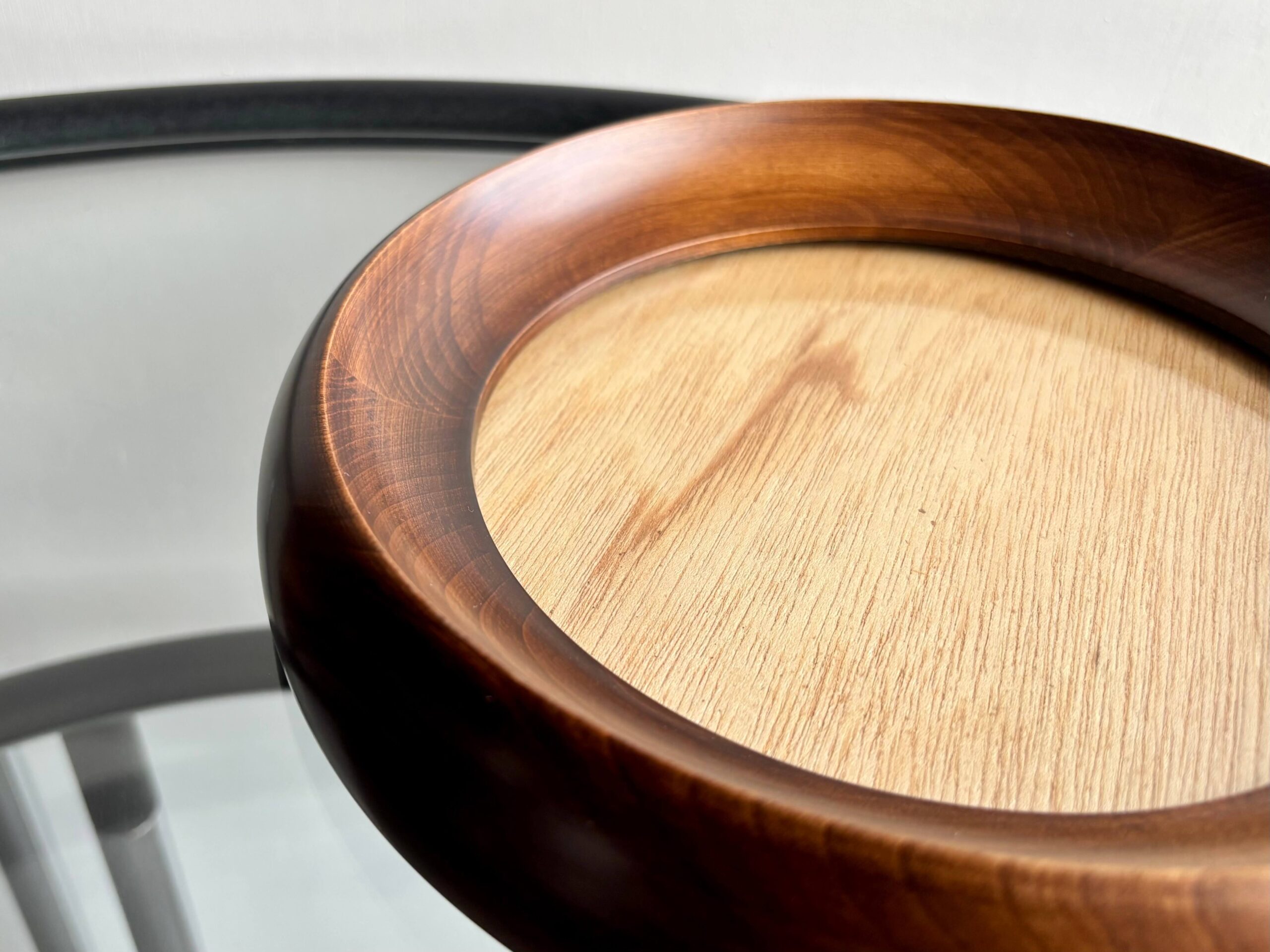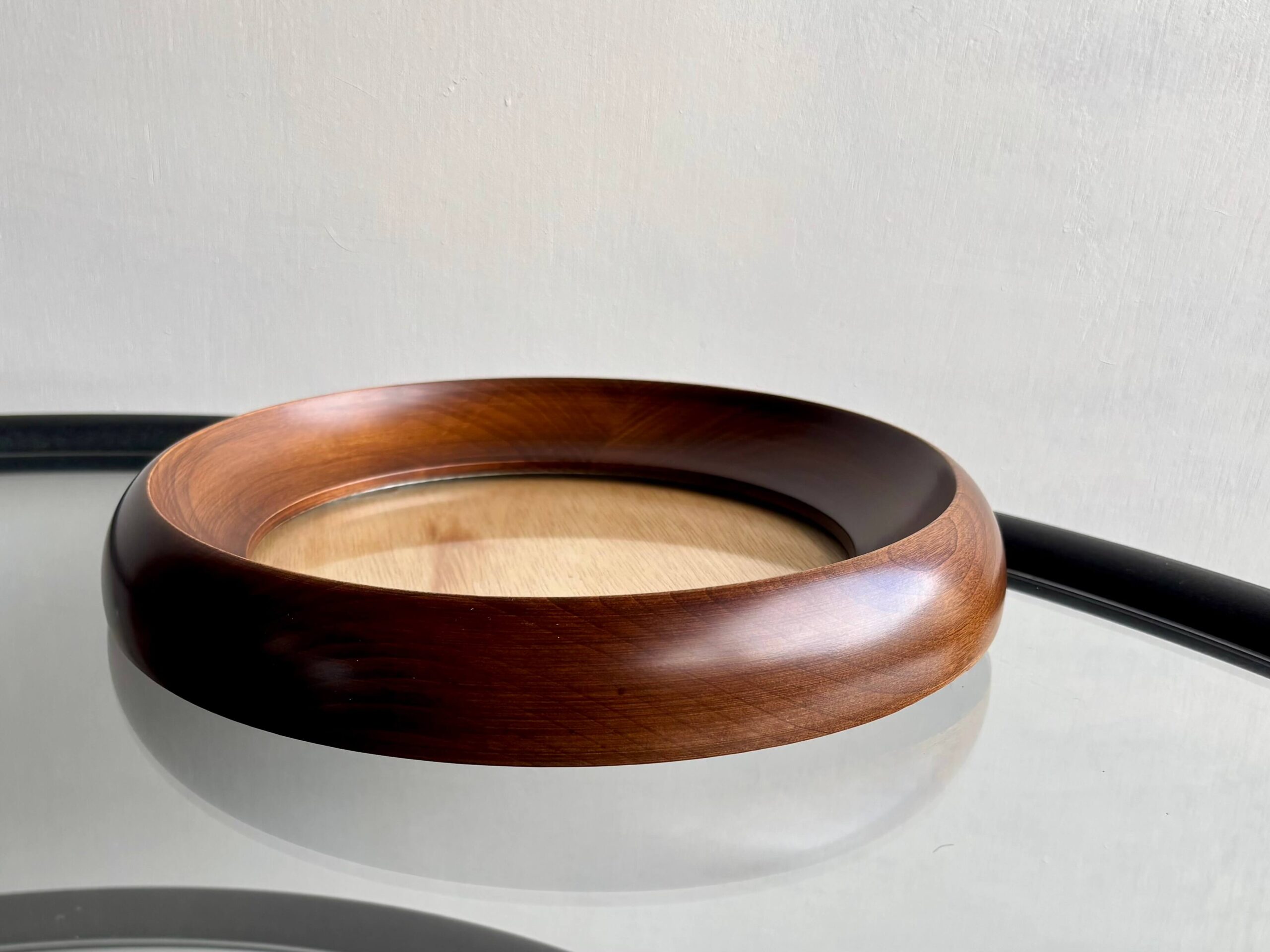 無垢集成材が使われた、ラウンド フォトフレーム。