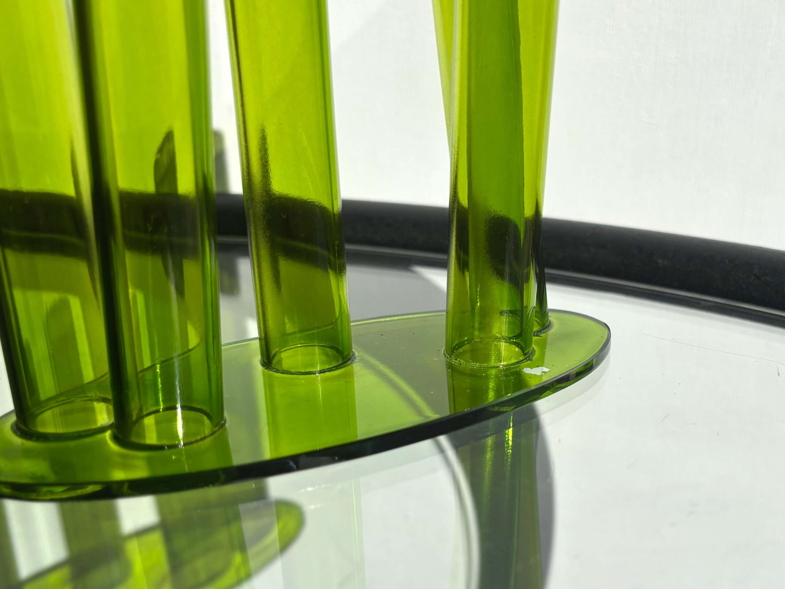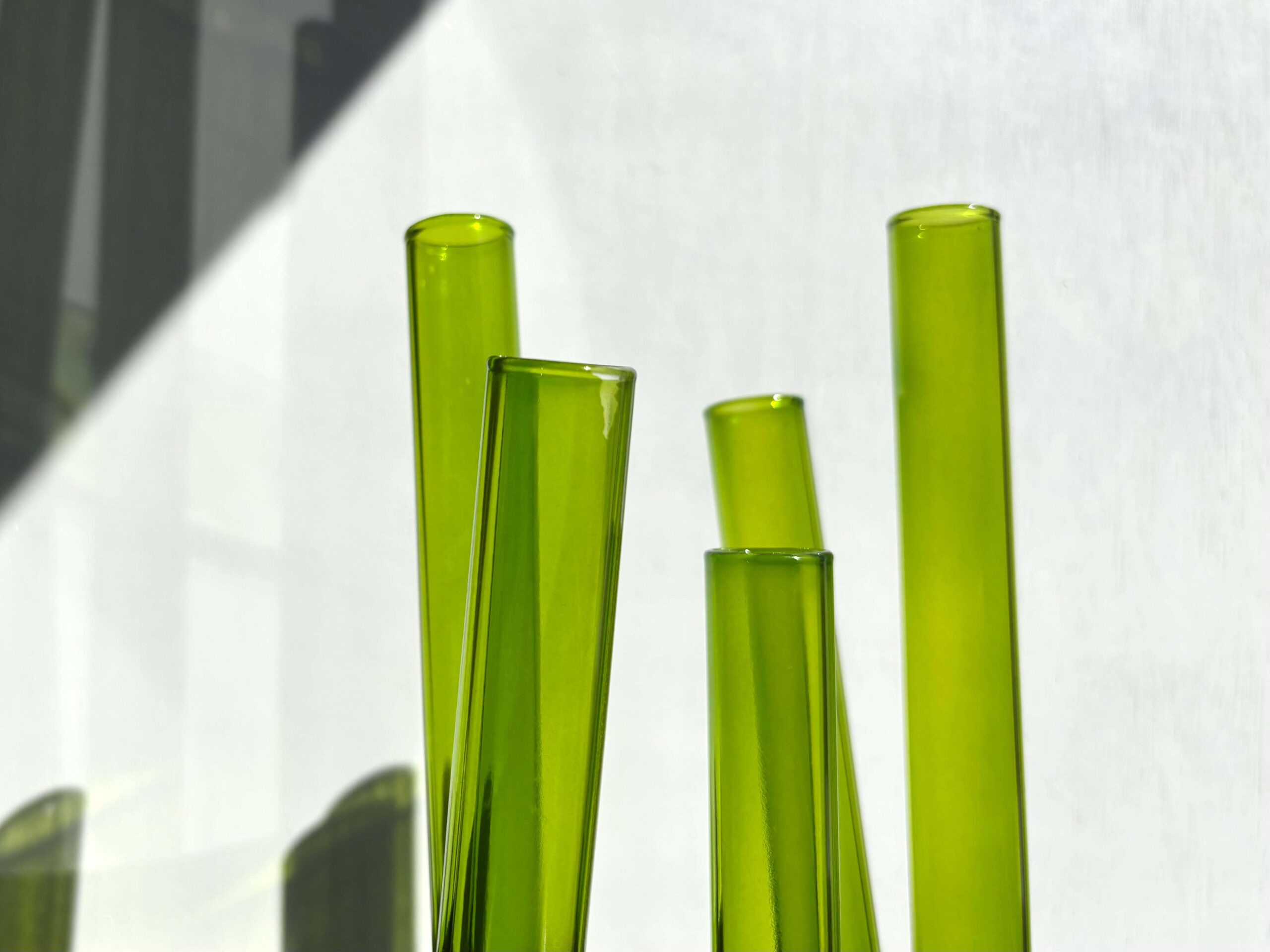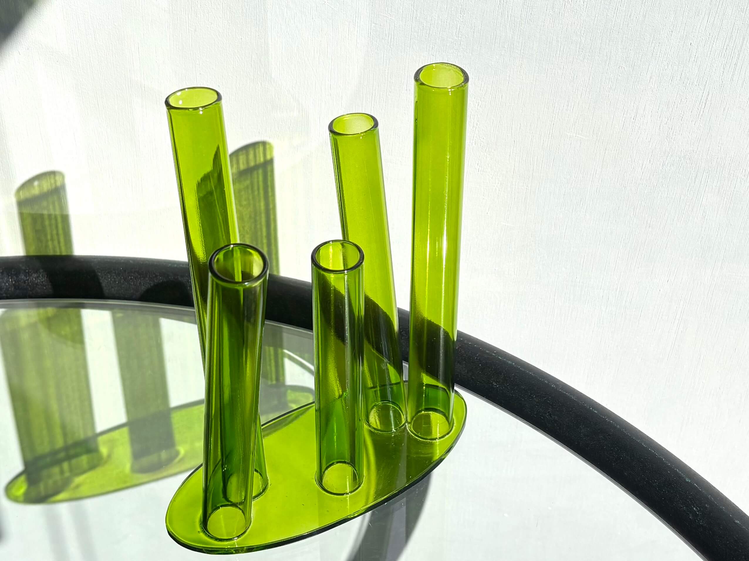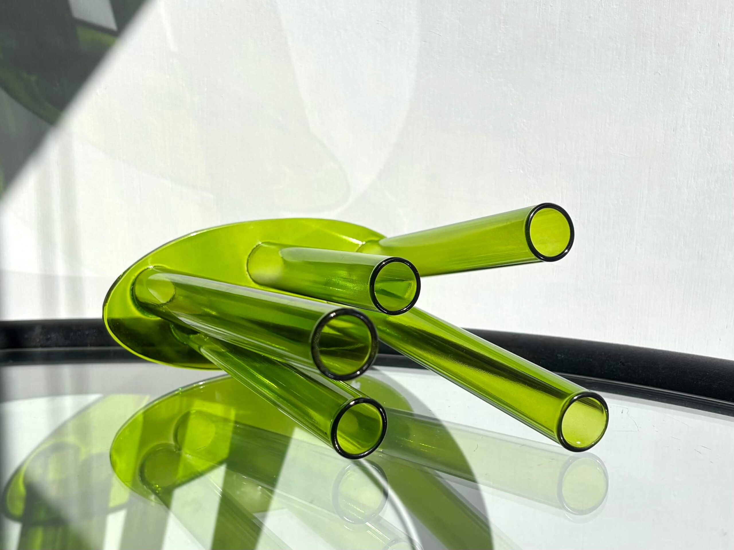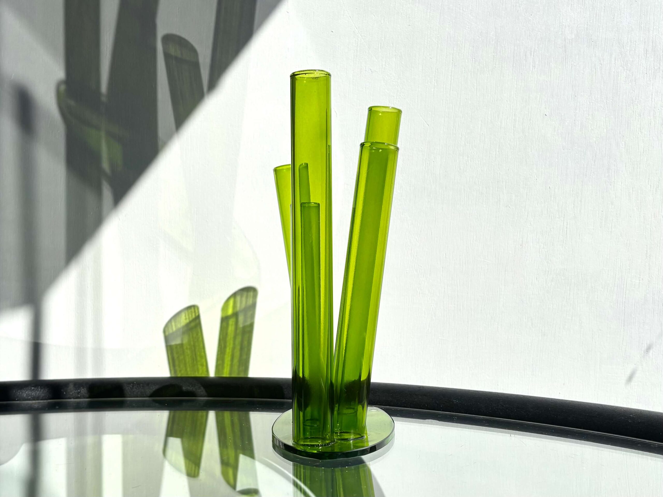 グリーンの筒5本が四方八方へ伸びる、自由気ままな花器。