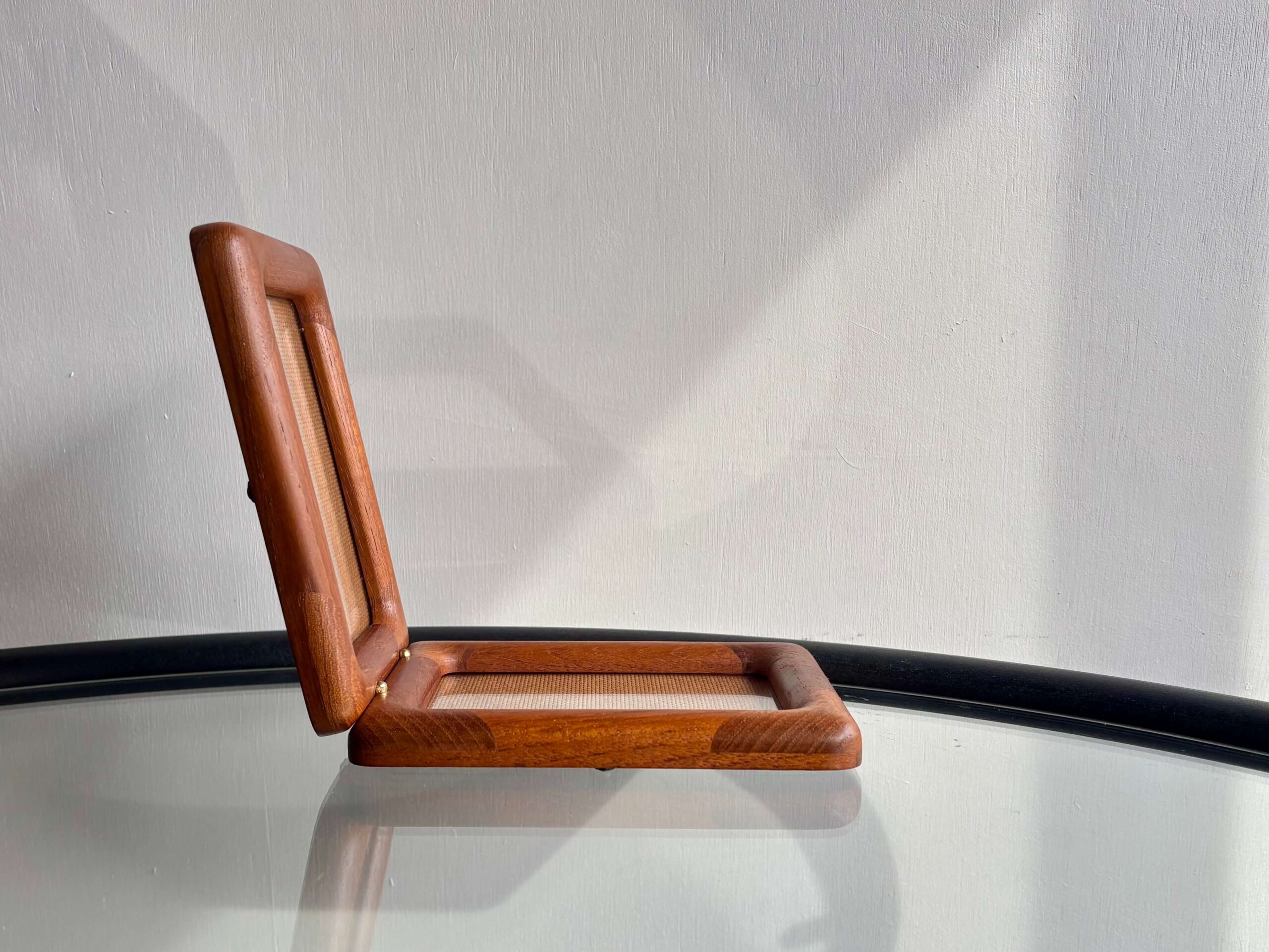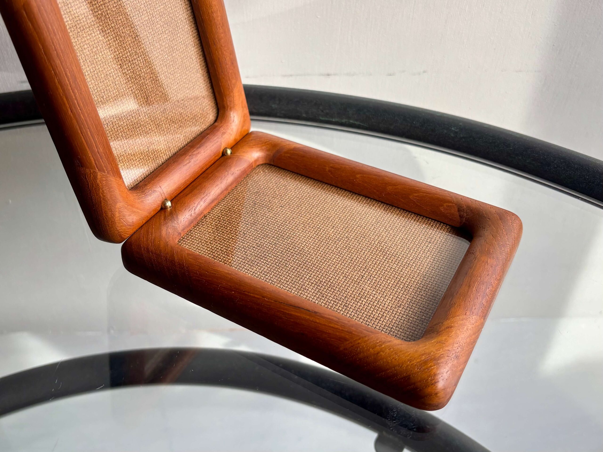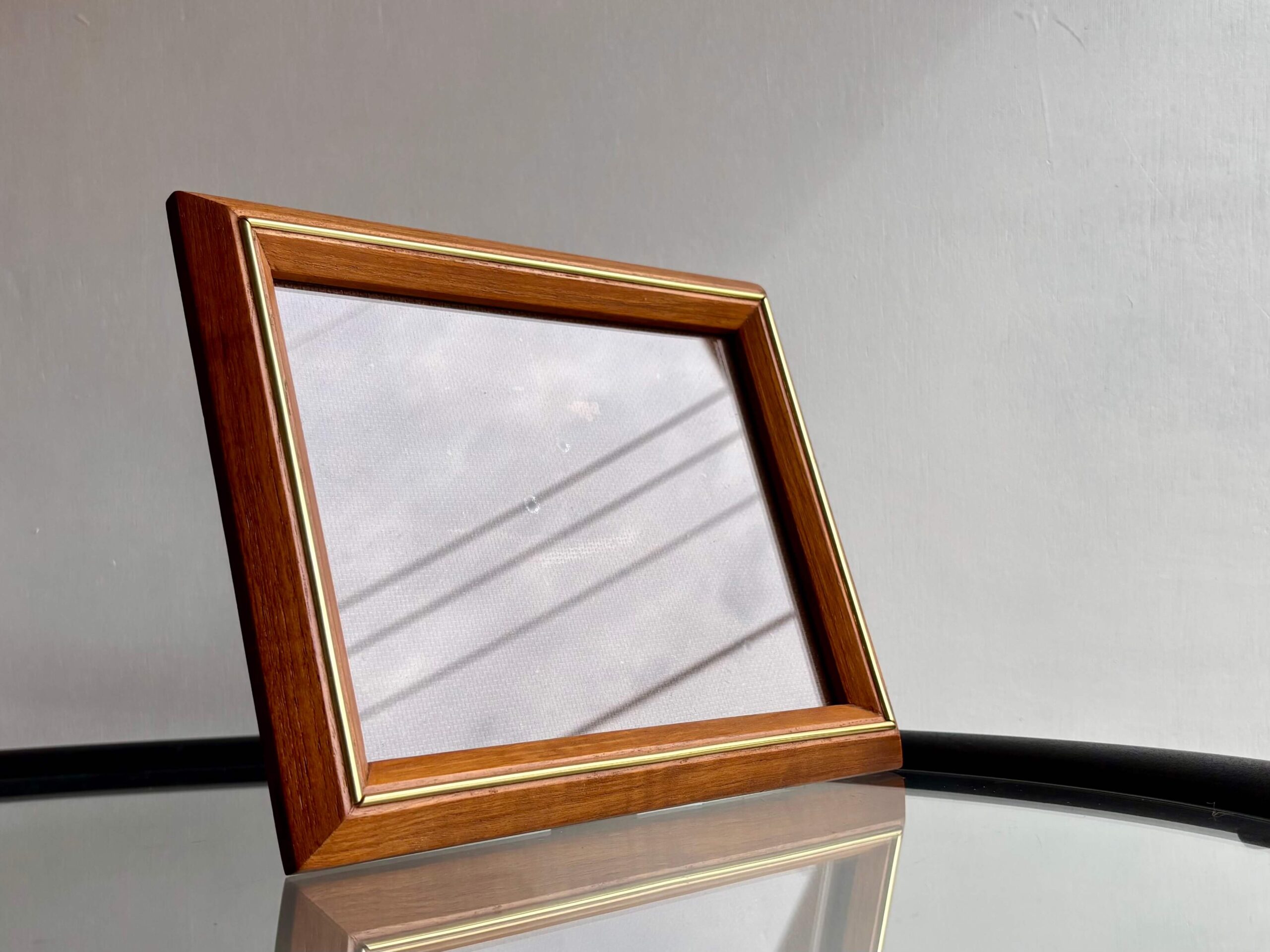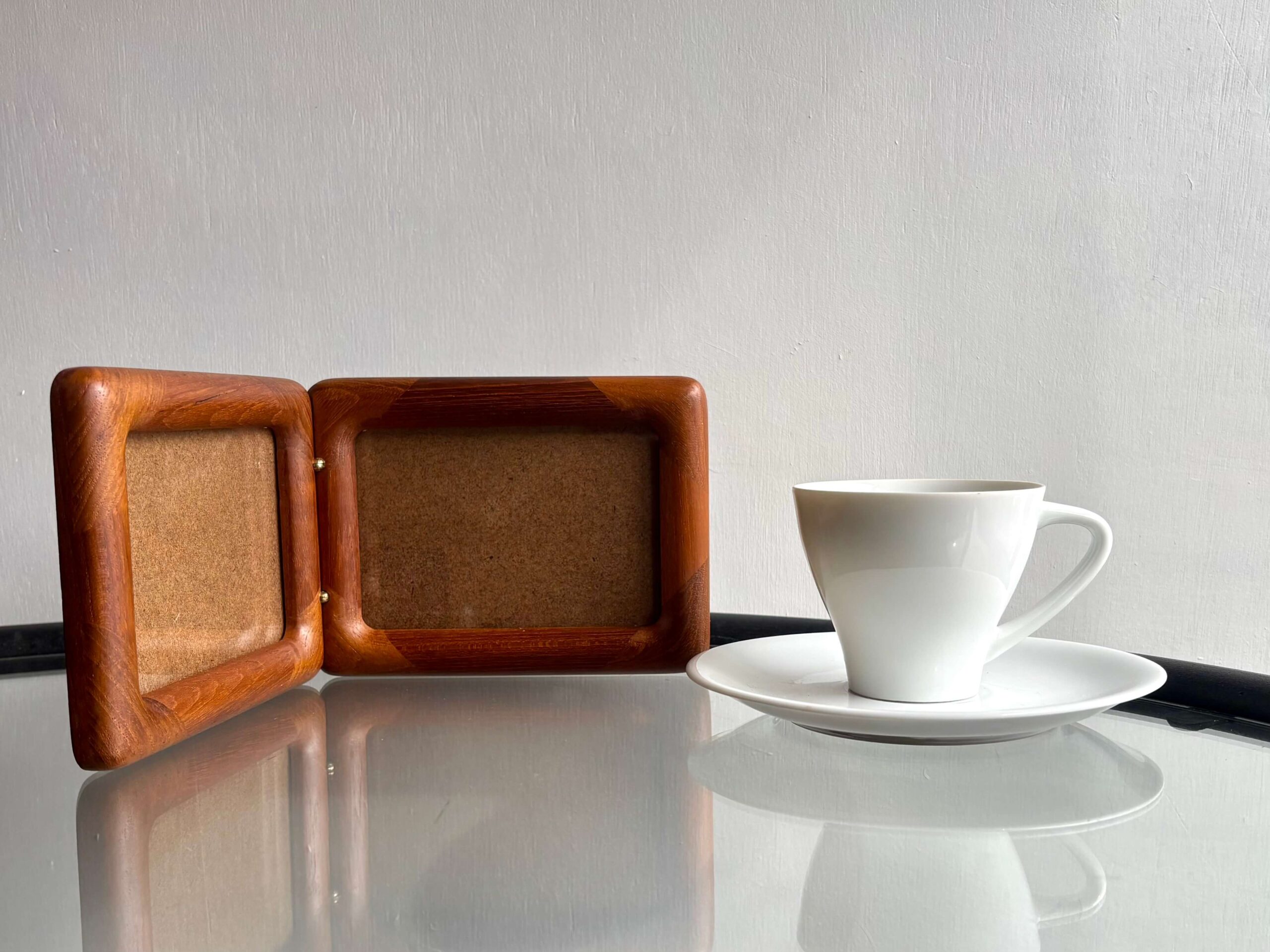チーク無垢材をフレームに使用した両開きフォトスタンド。