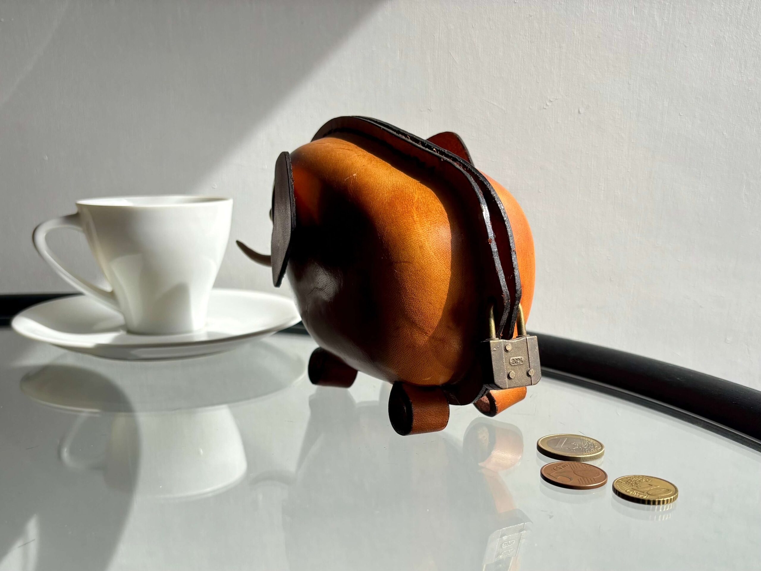1949年創業、老舗の革製品メーカー、鴻池製作所から癒される貯金箱。