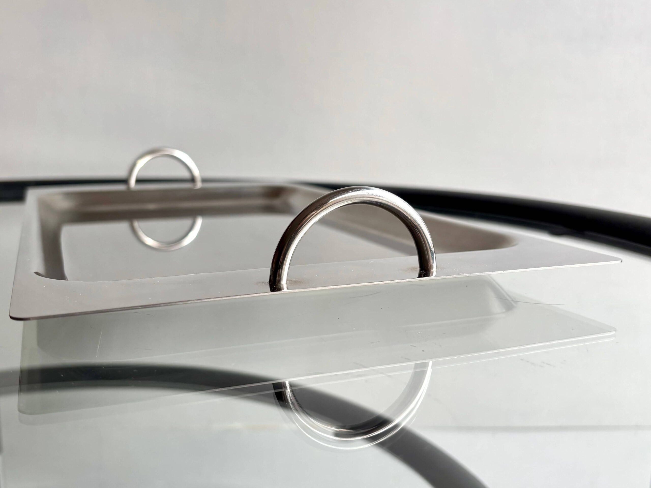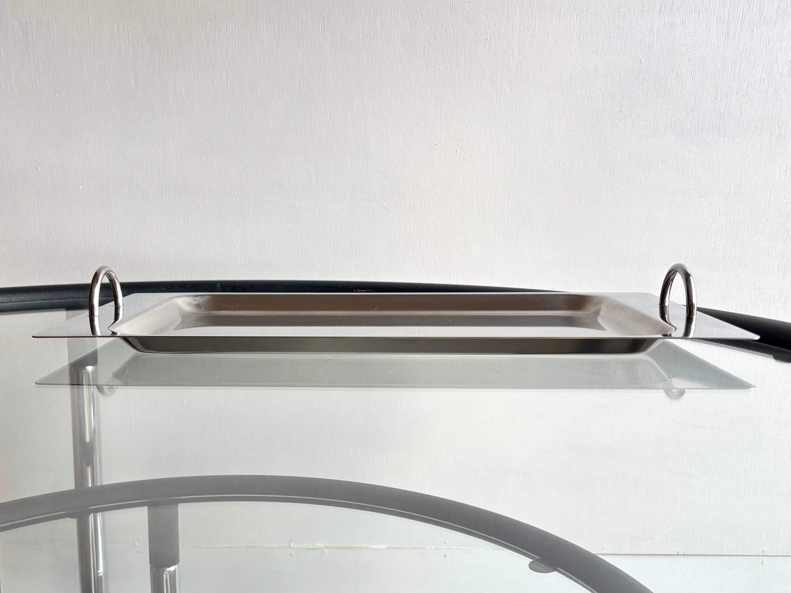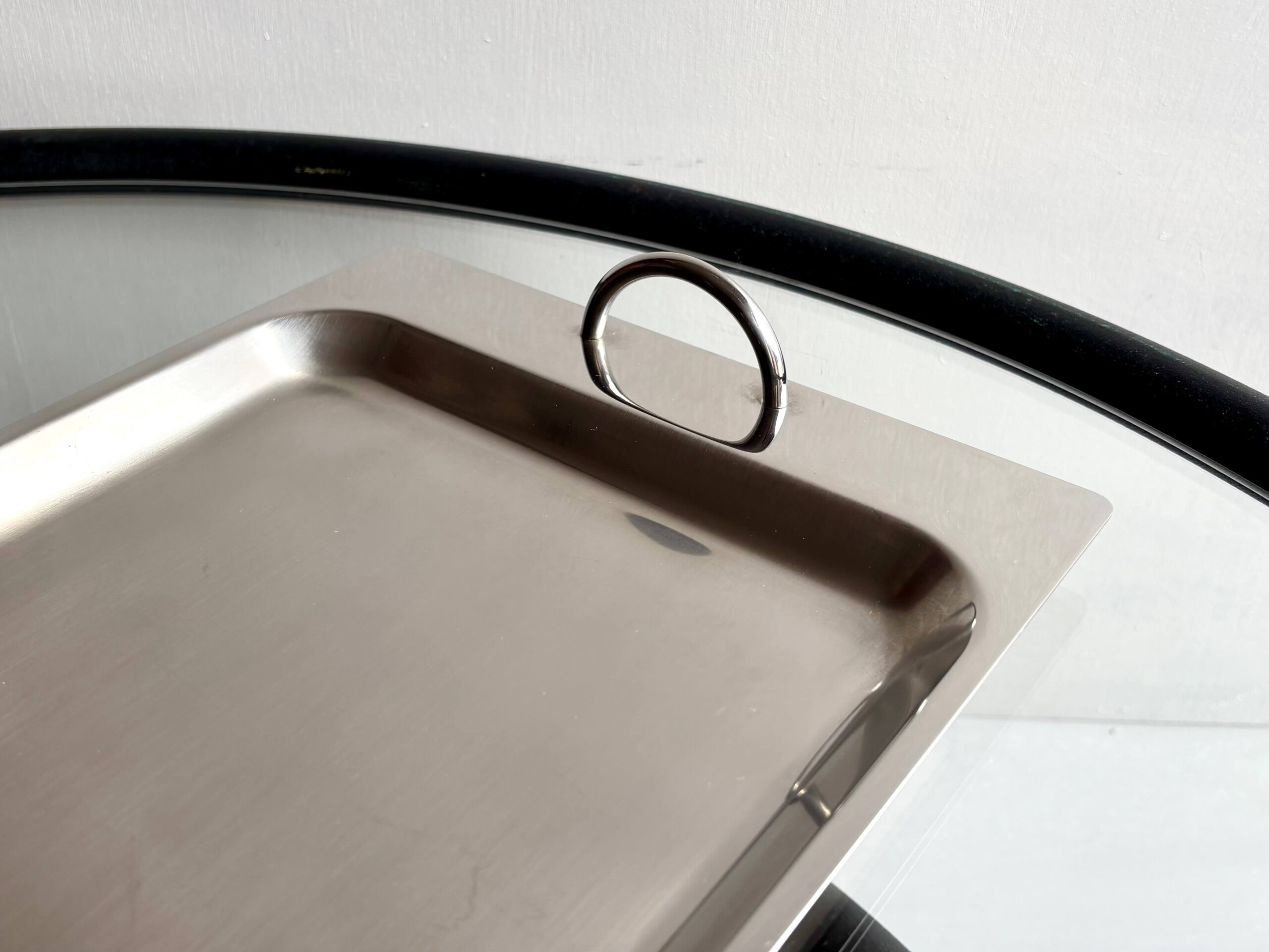一段下がったトレイ部分はヘアライン、それを囲む外周と持ち手は鏡面仕上げというこだわりも。