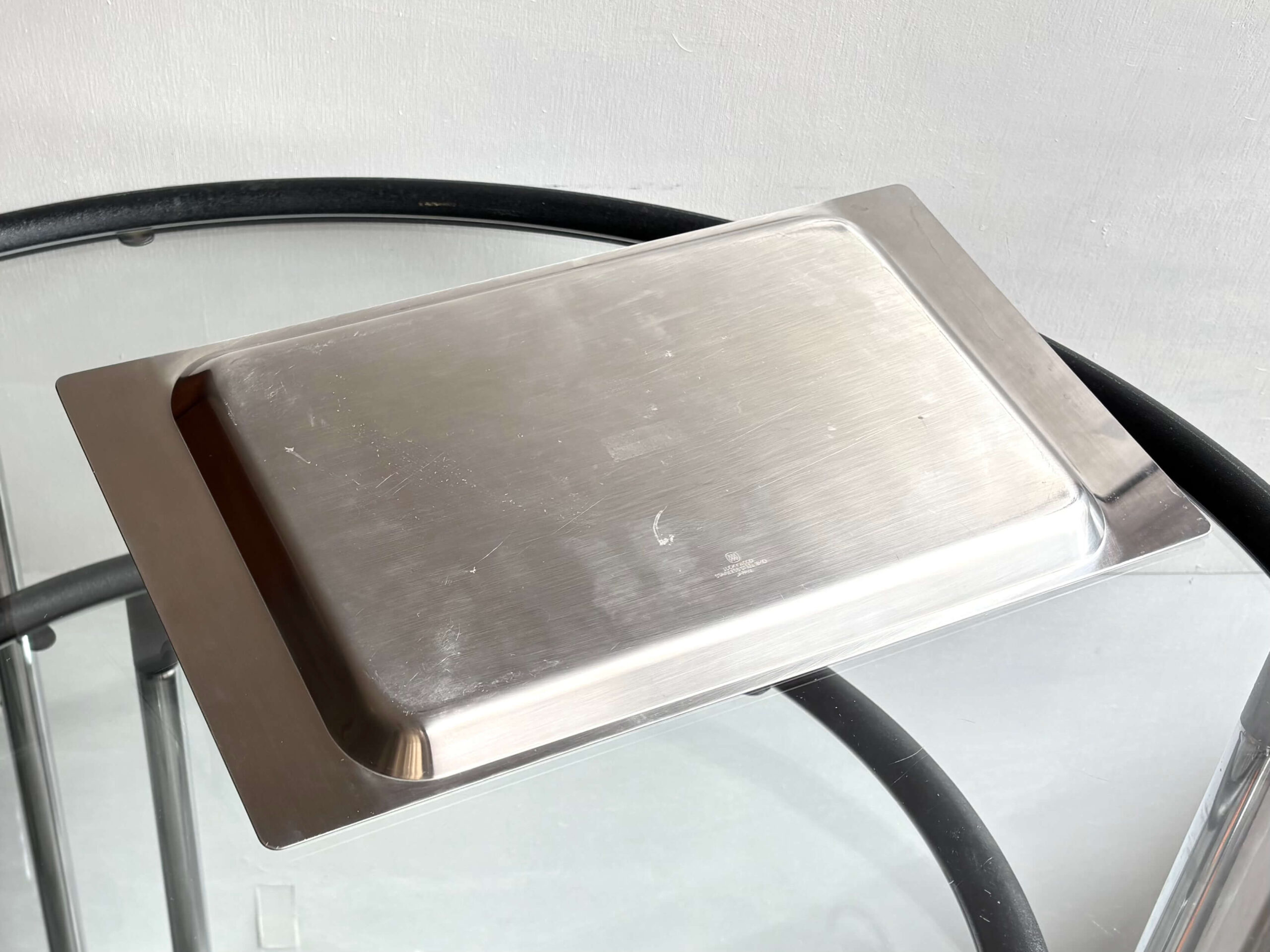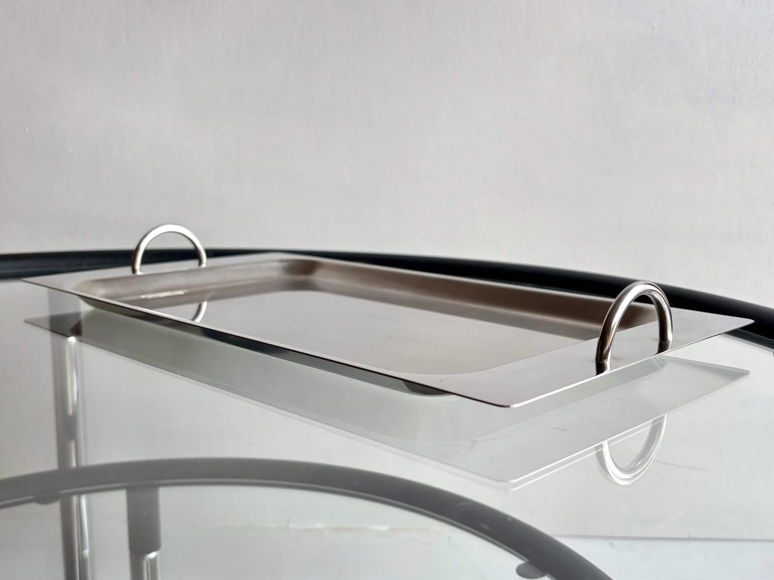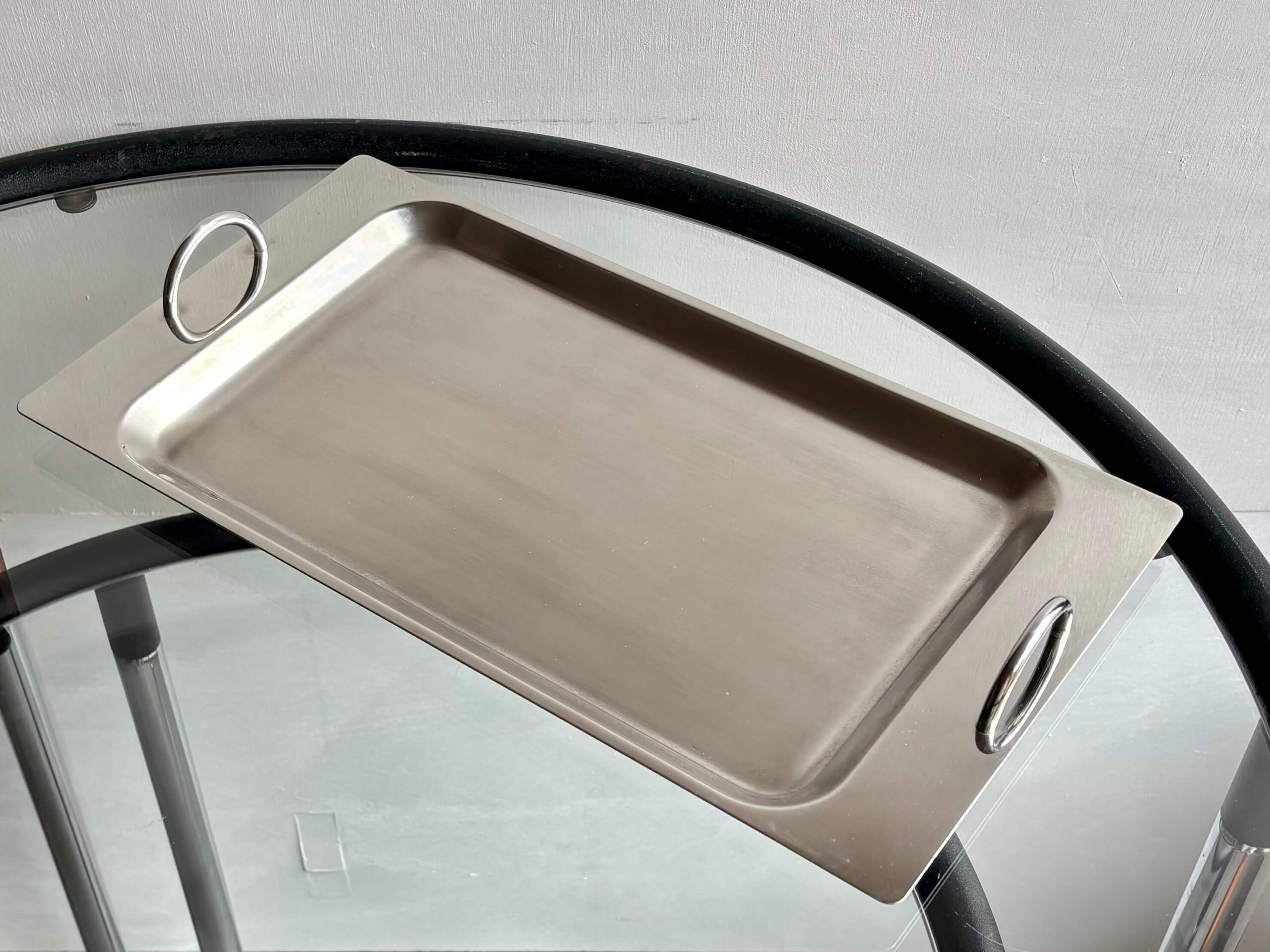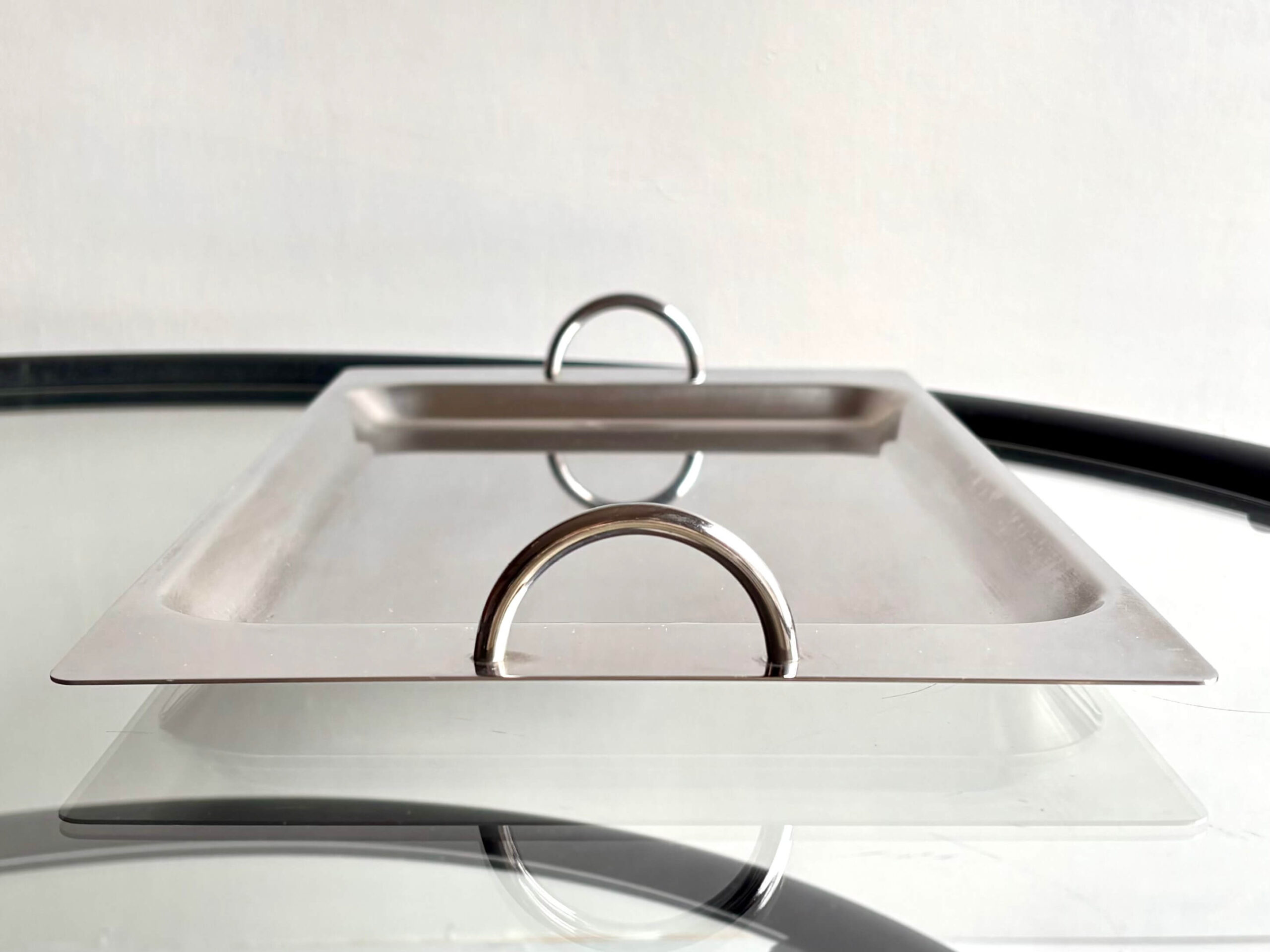 一段下がったトレイ部分はヘアライン、それを囲む外周と持ち手は鏡面仕上げというこだわりも。