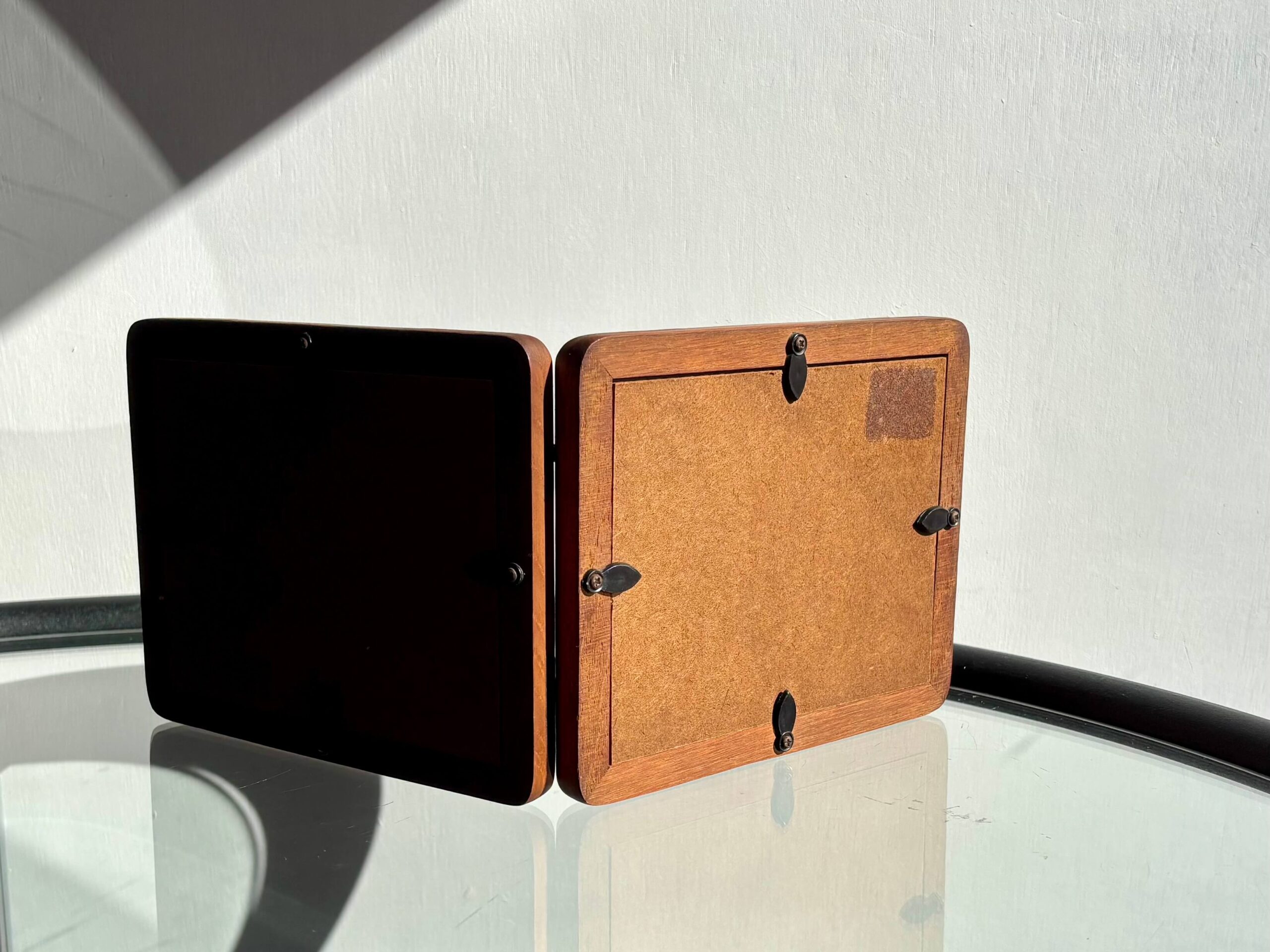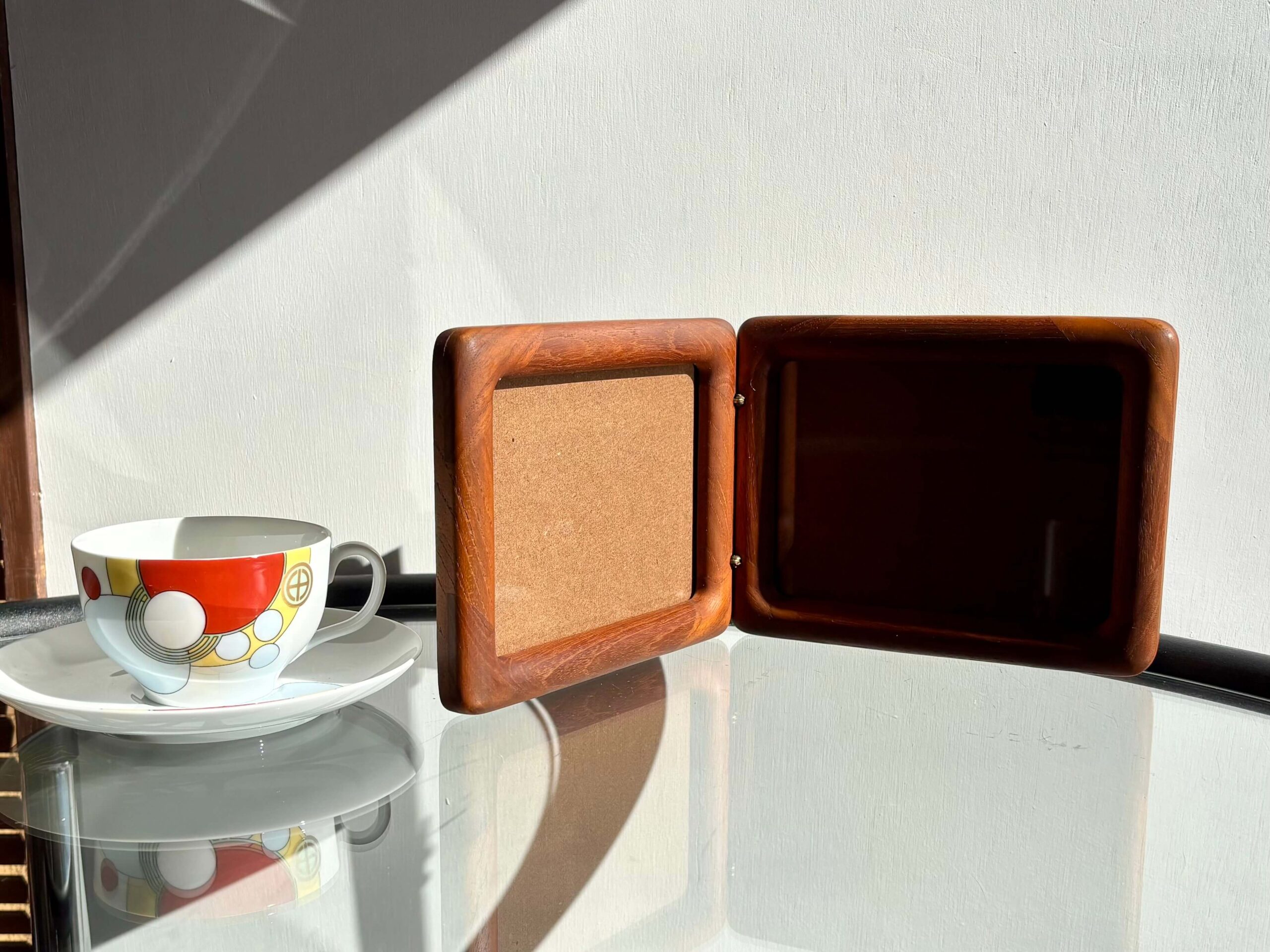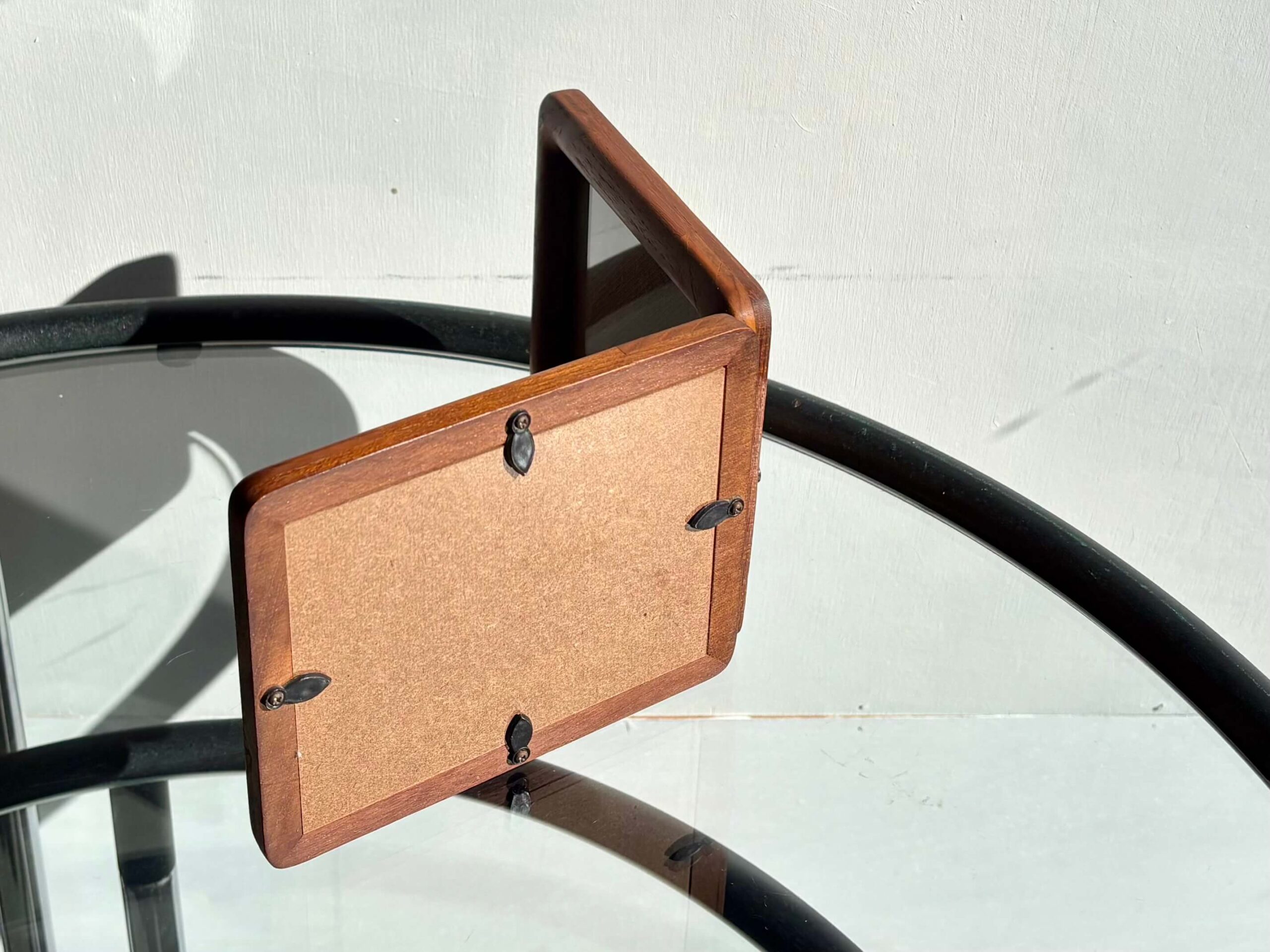 チーク無垢材をフレームに使用した両開きフォトスタンド。