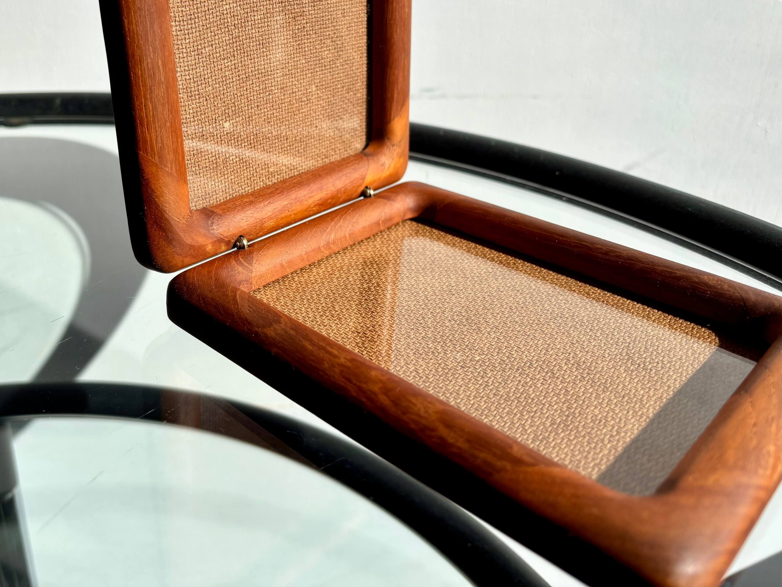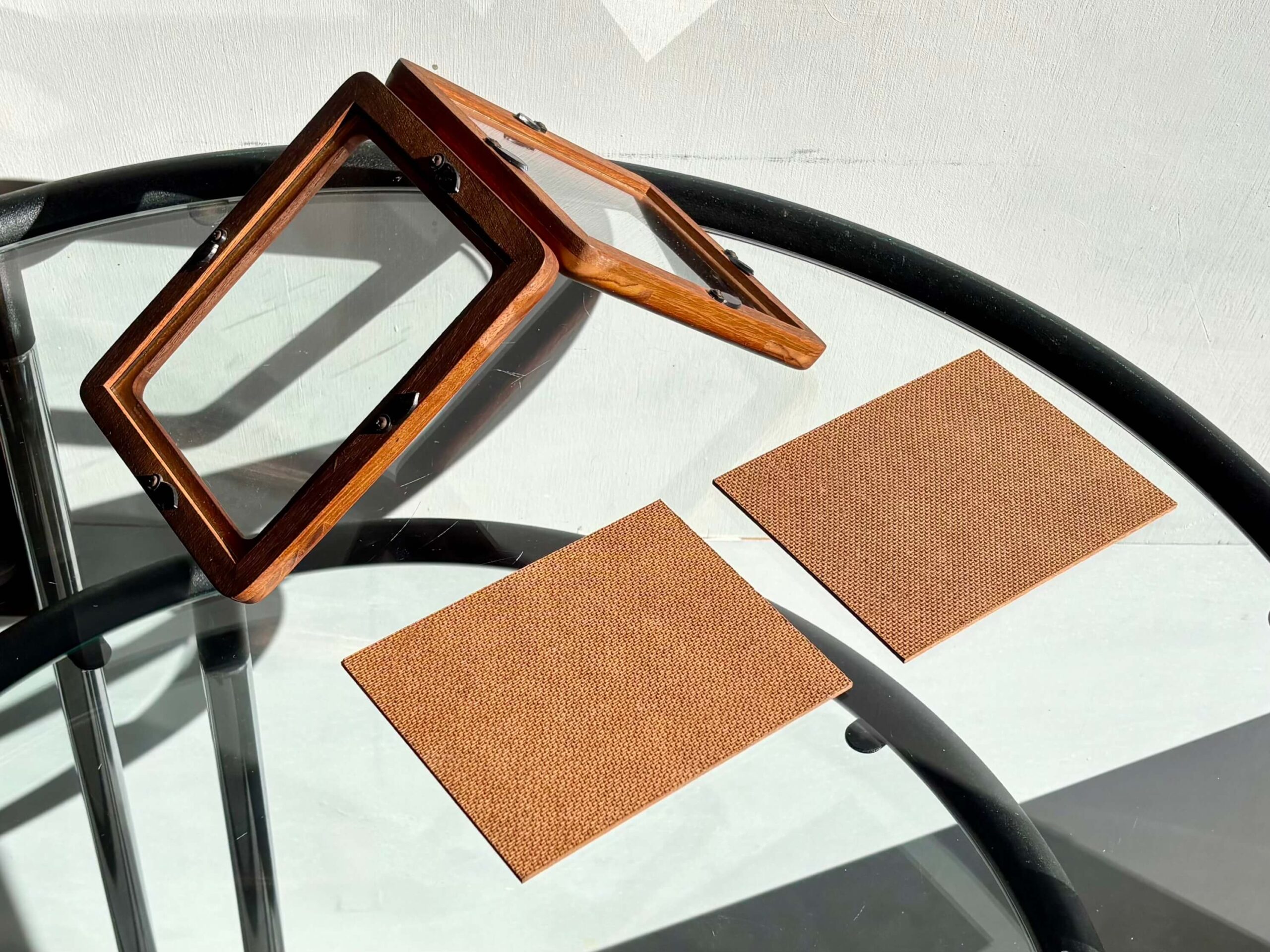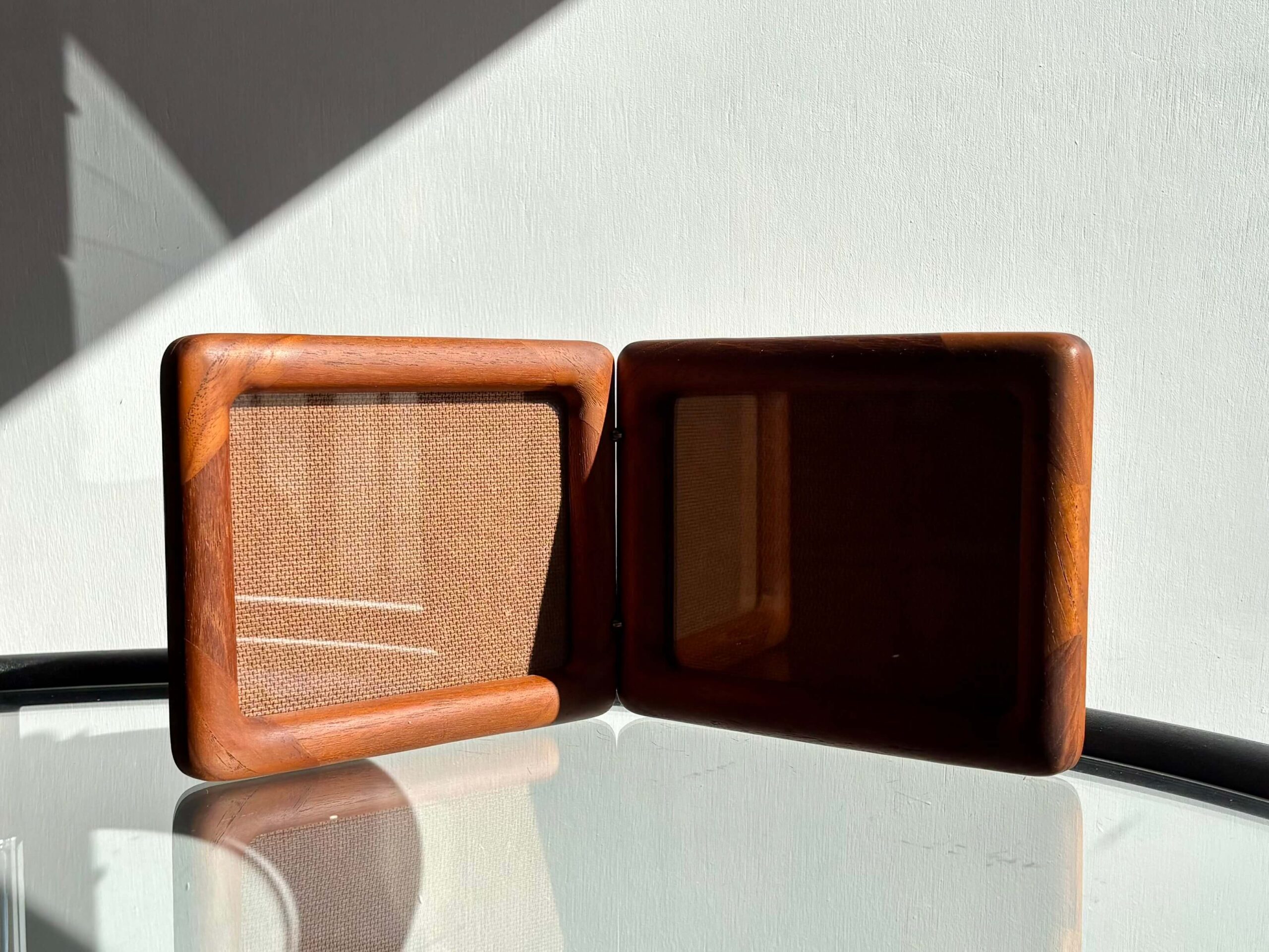 チーク無垢材をフレームに使用した両開きフォトスタンド。