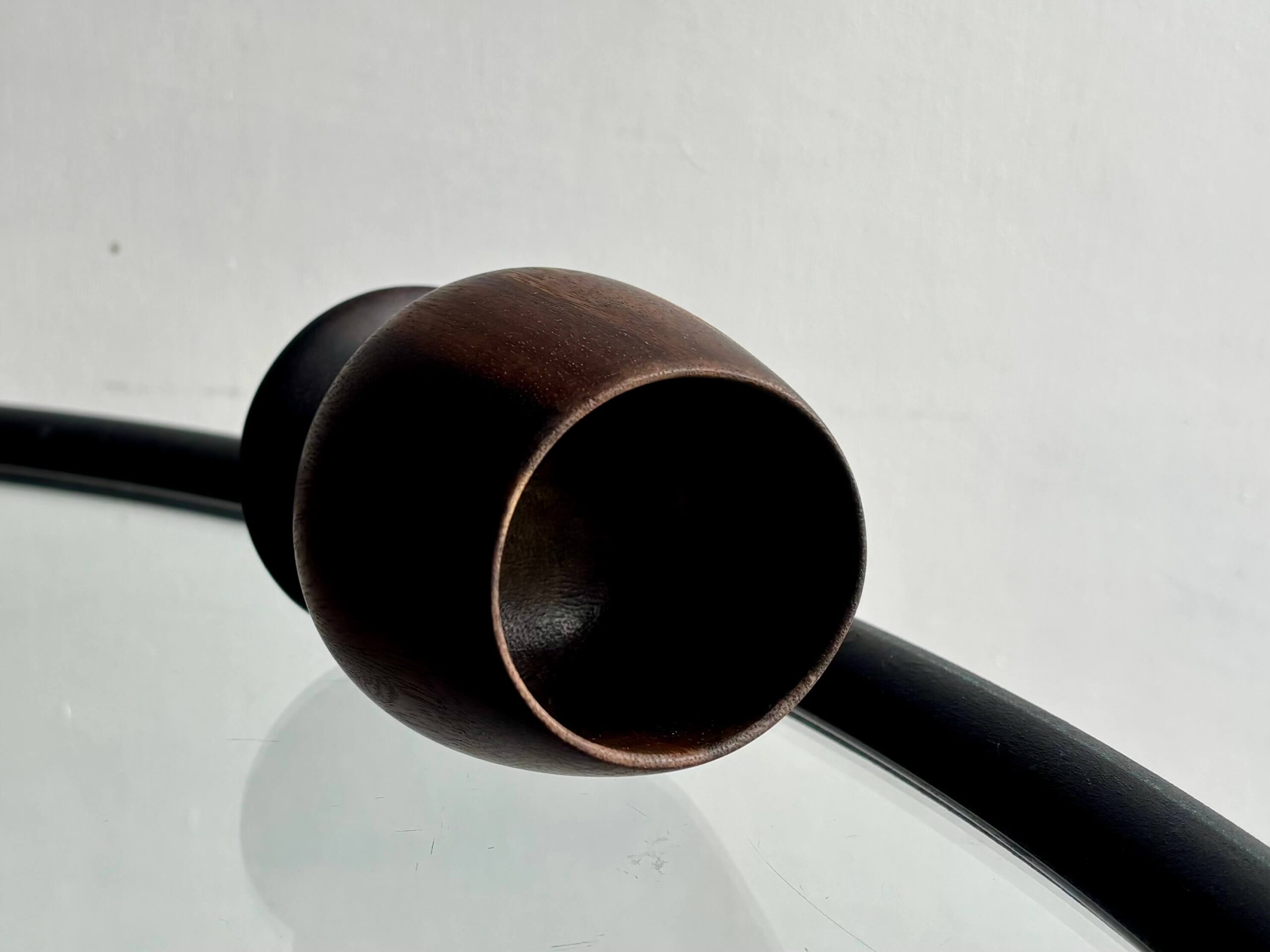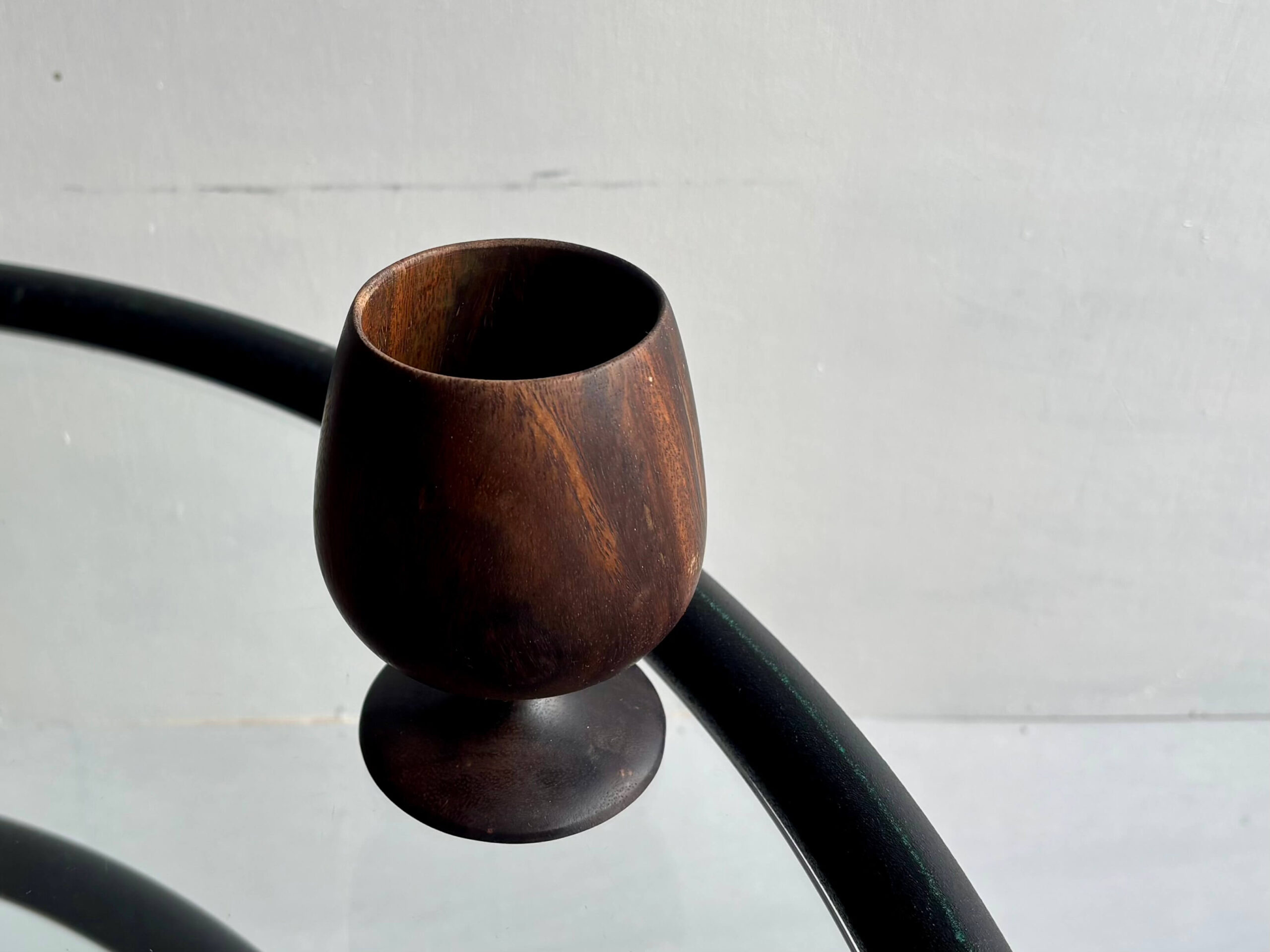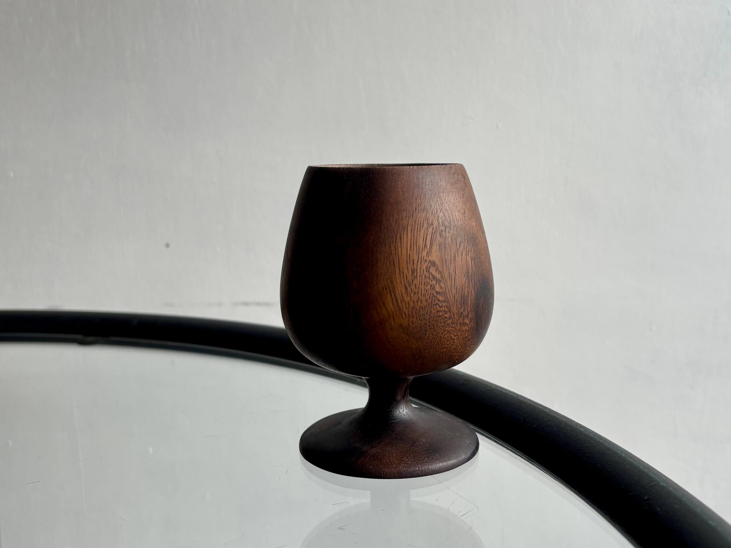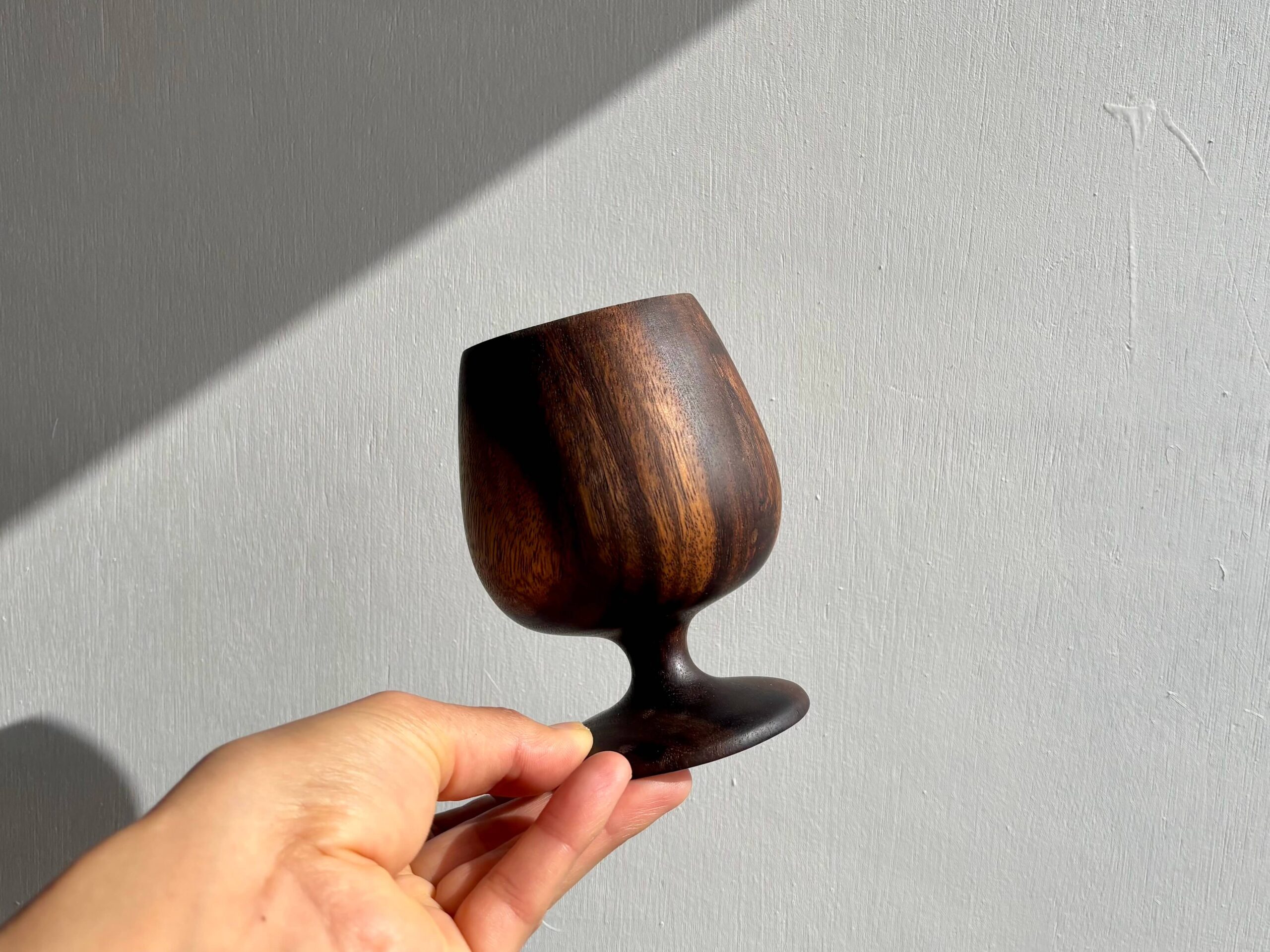 自然な杢目が特徴的なステムカップは無垢材削り出し。