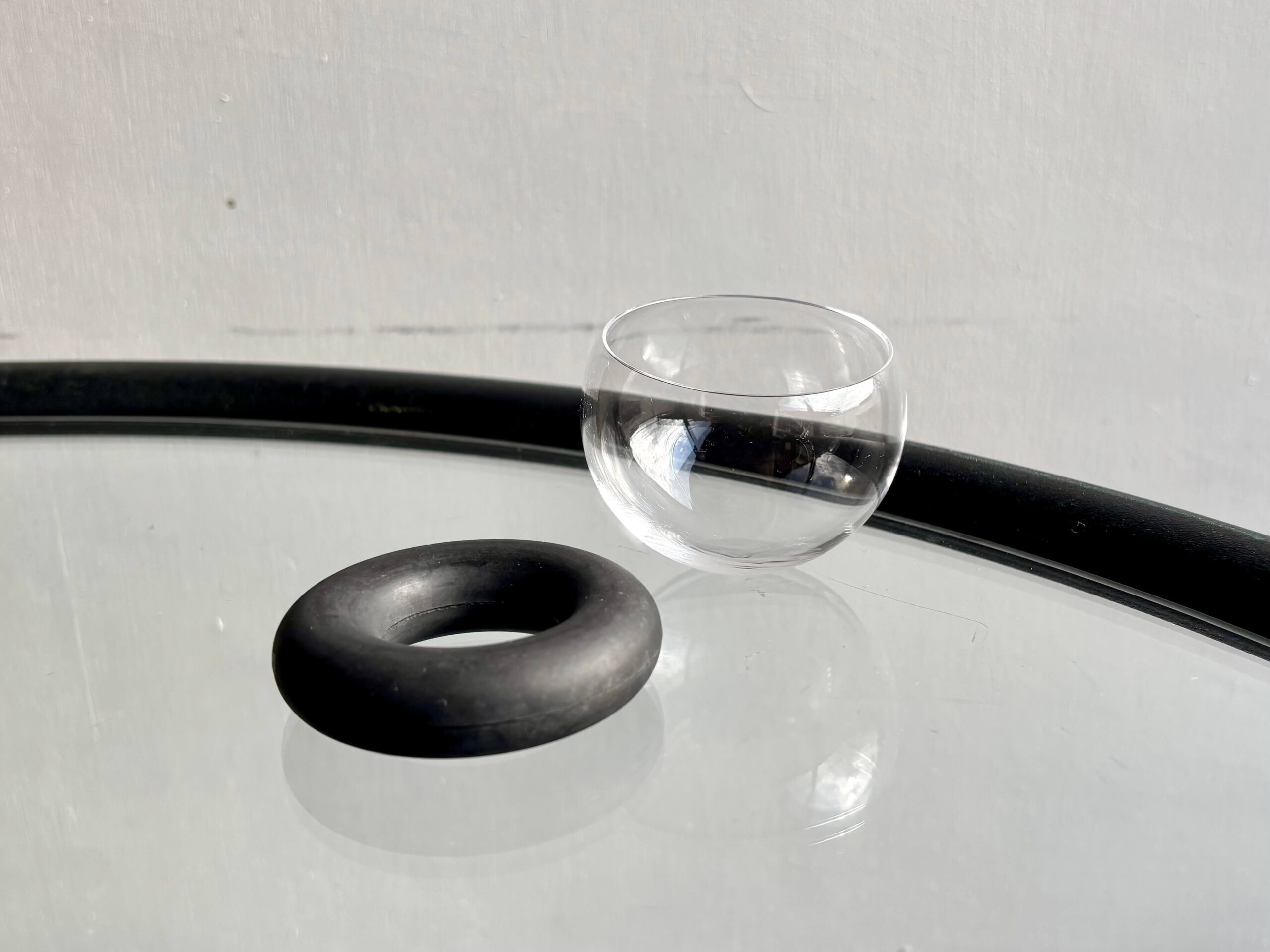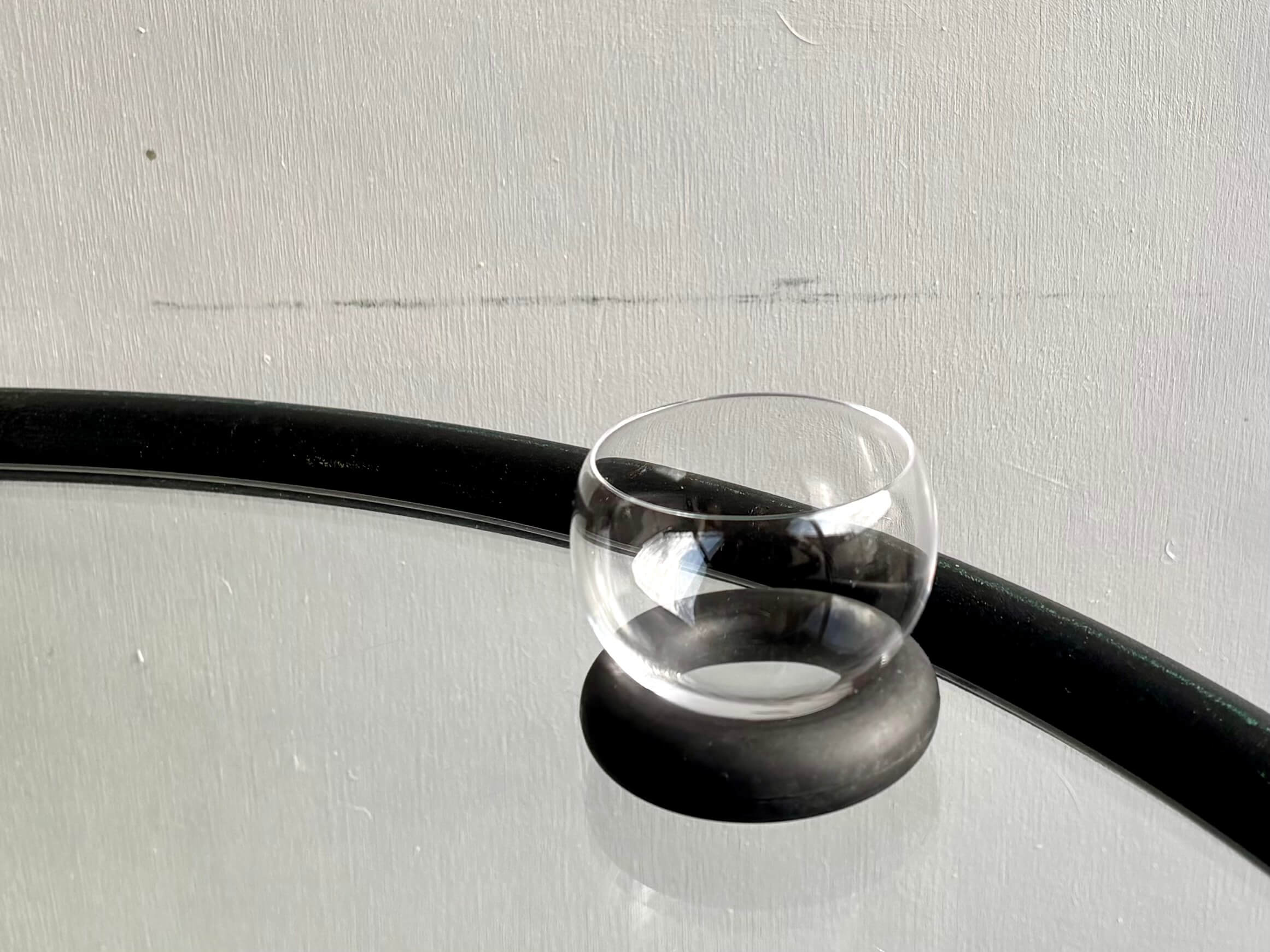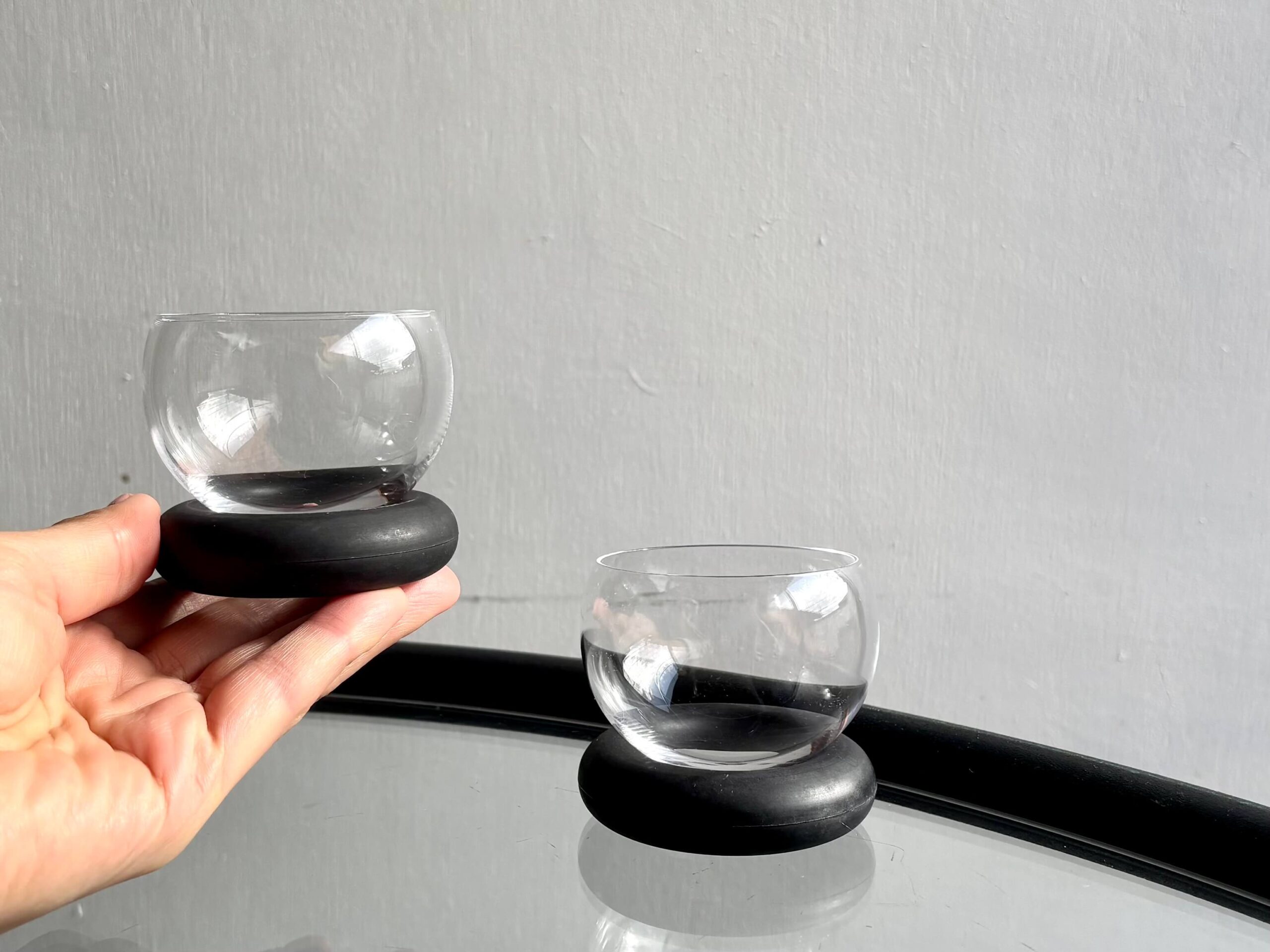 ドーナツ型のゴム製ソーサーにちょこんと乗るカップ。