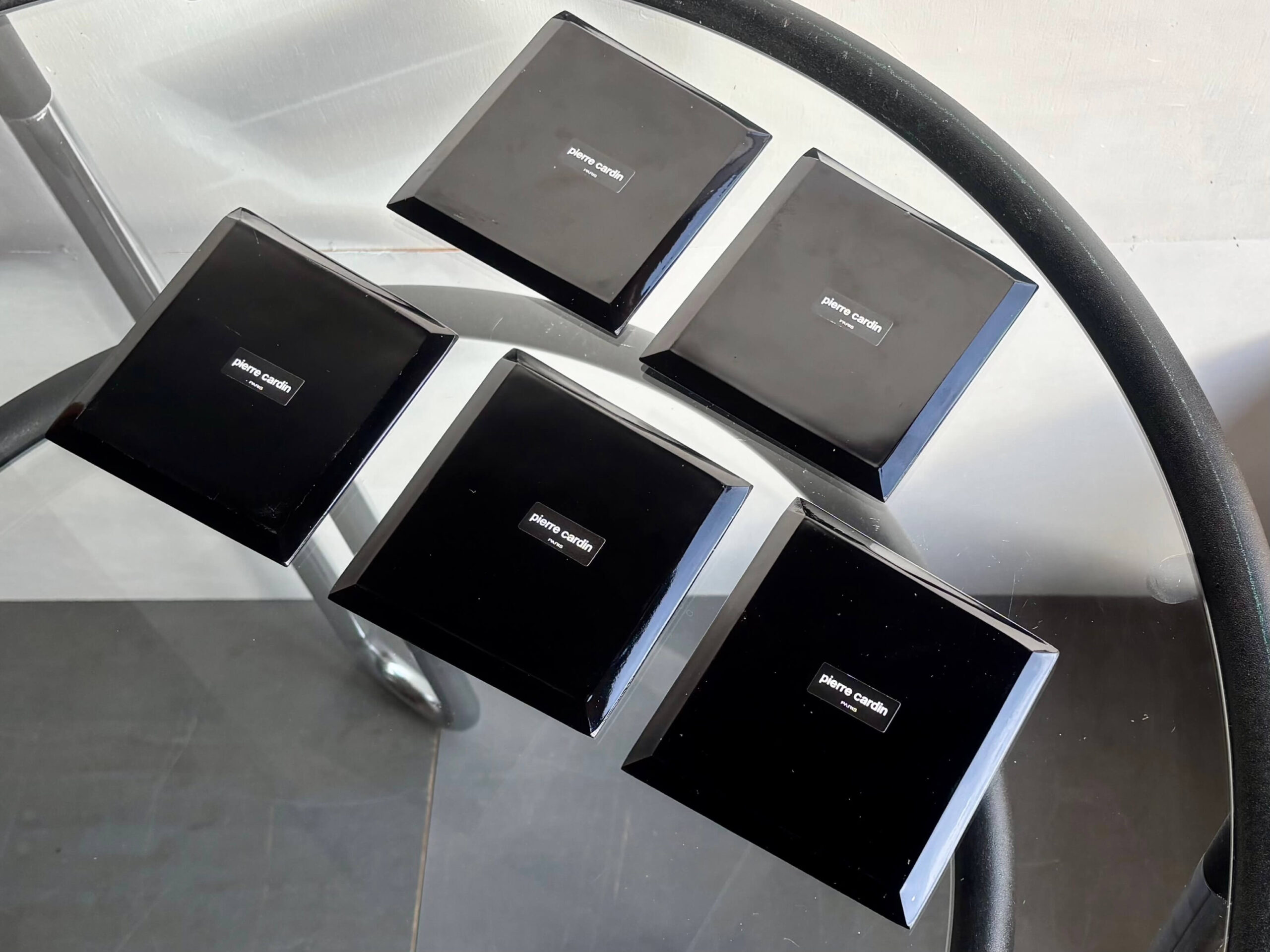 「エッジ」の効いたデザインは、ファッションから航空機の内外装などあらゆるライフスタイルに関わる商品を幅広く手掛けた Pierre Cardin らしさ溢れる1品。