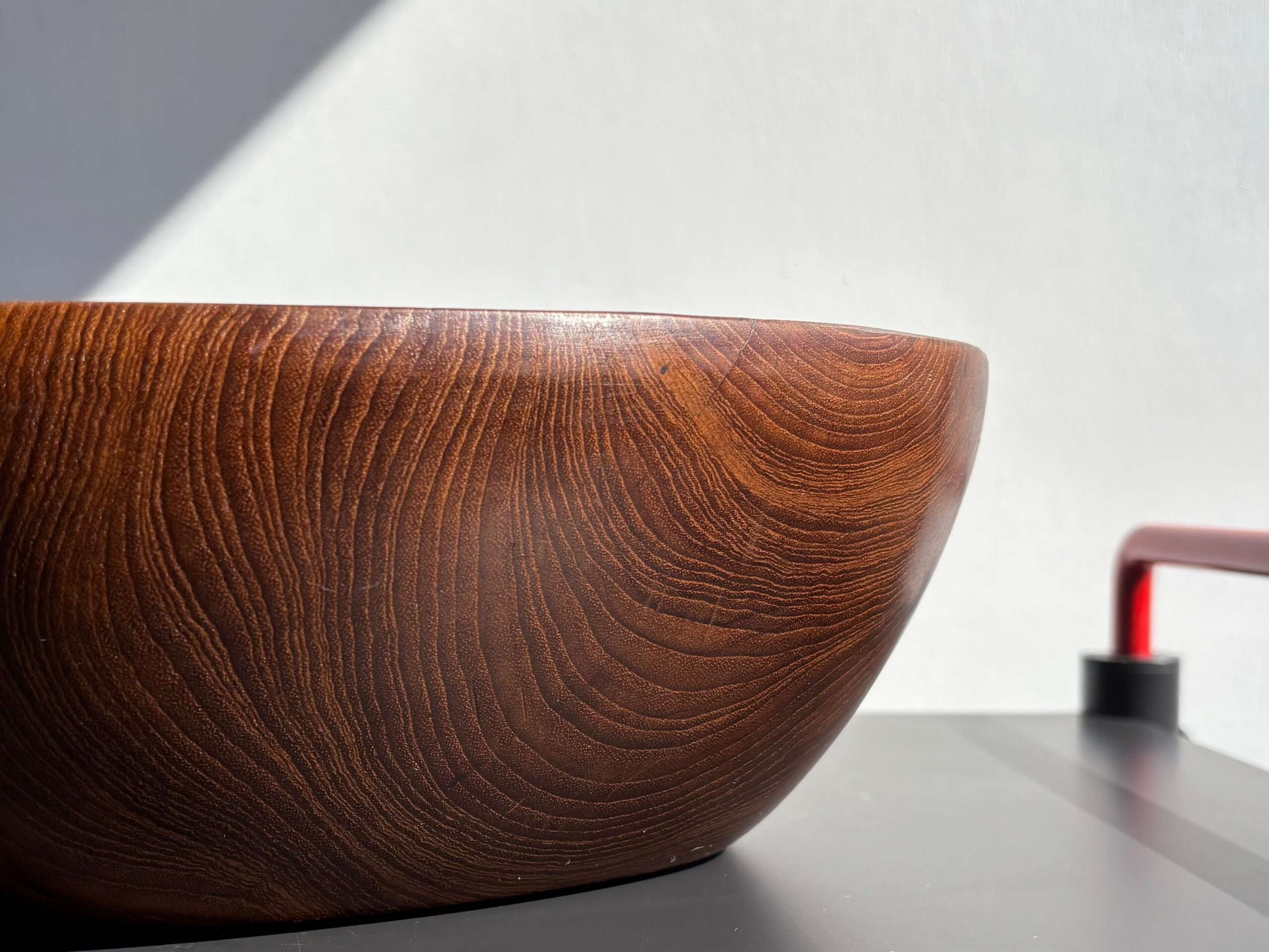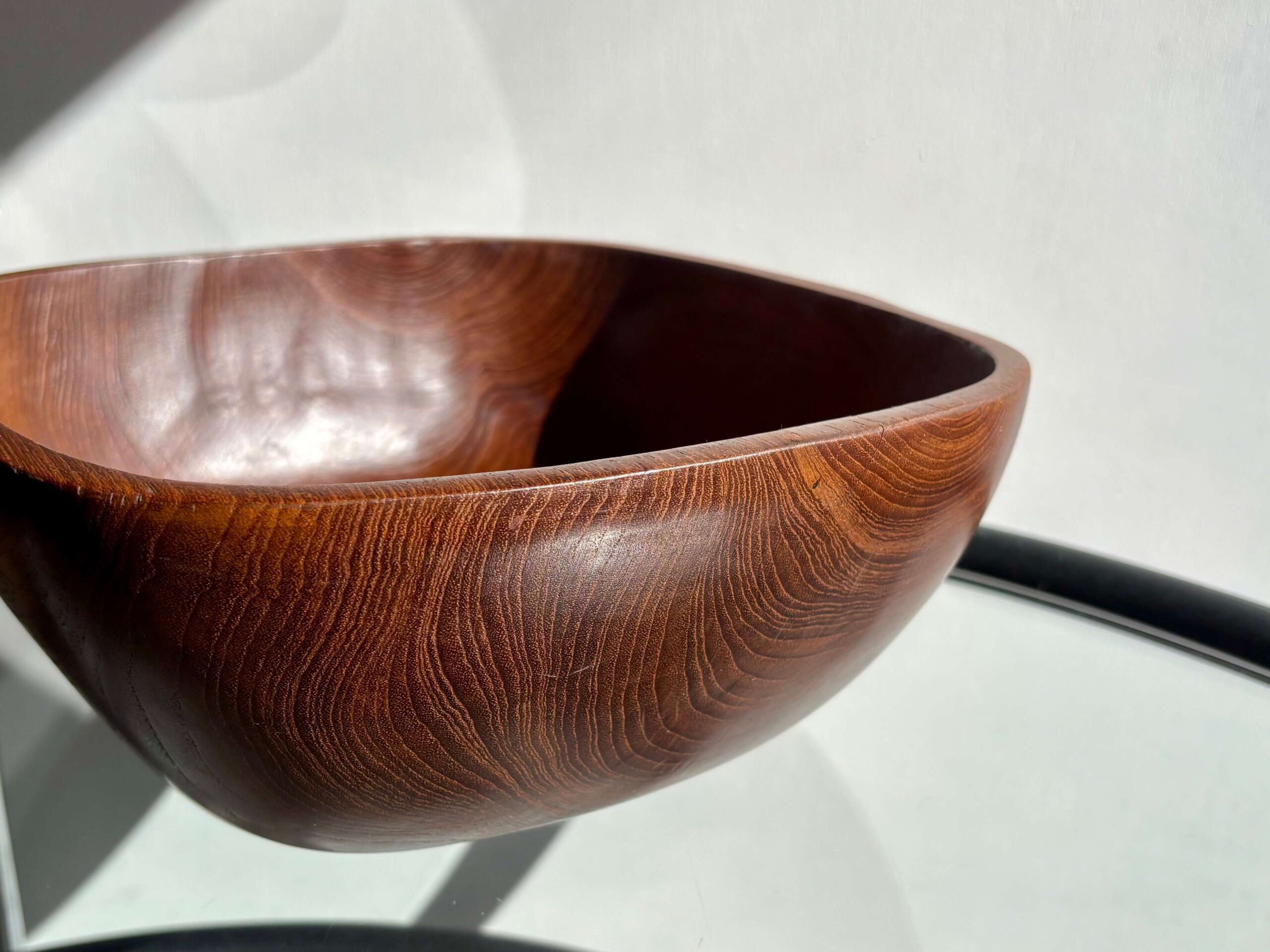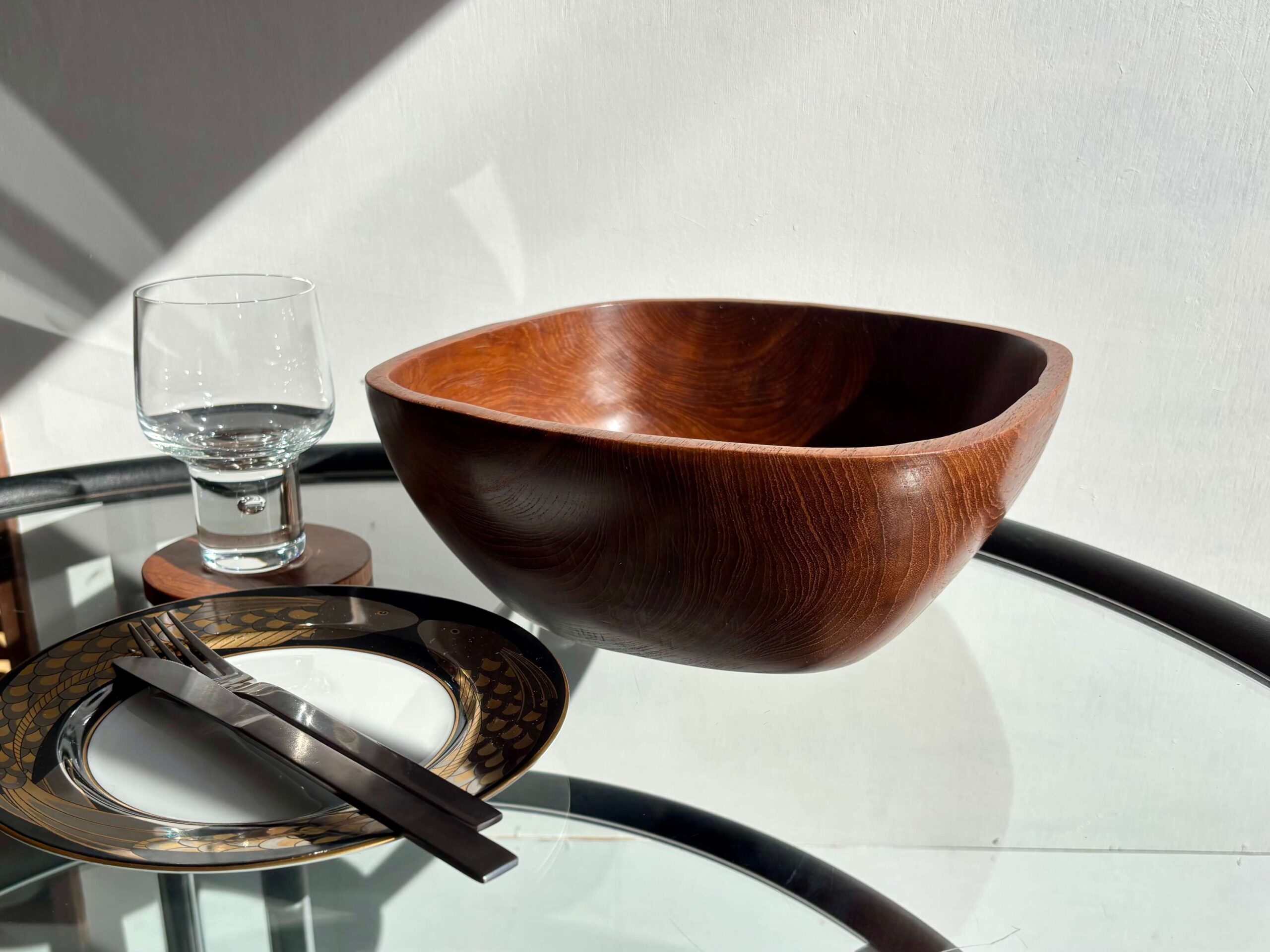 贅沢に無垢のチーク材1本から削り出した大きなボウル。
