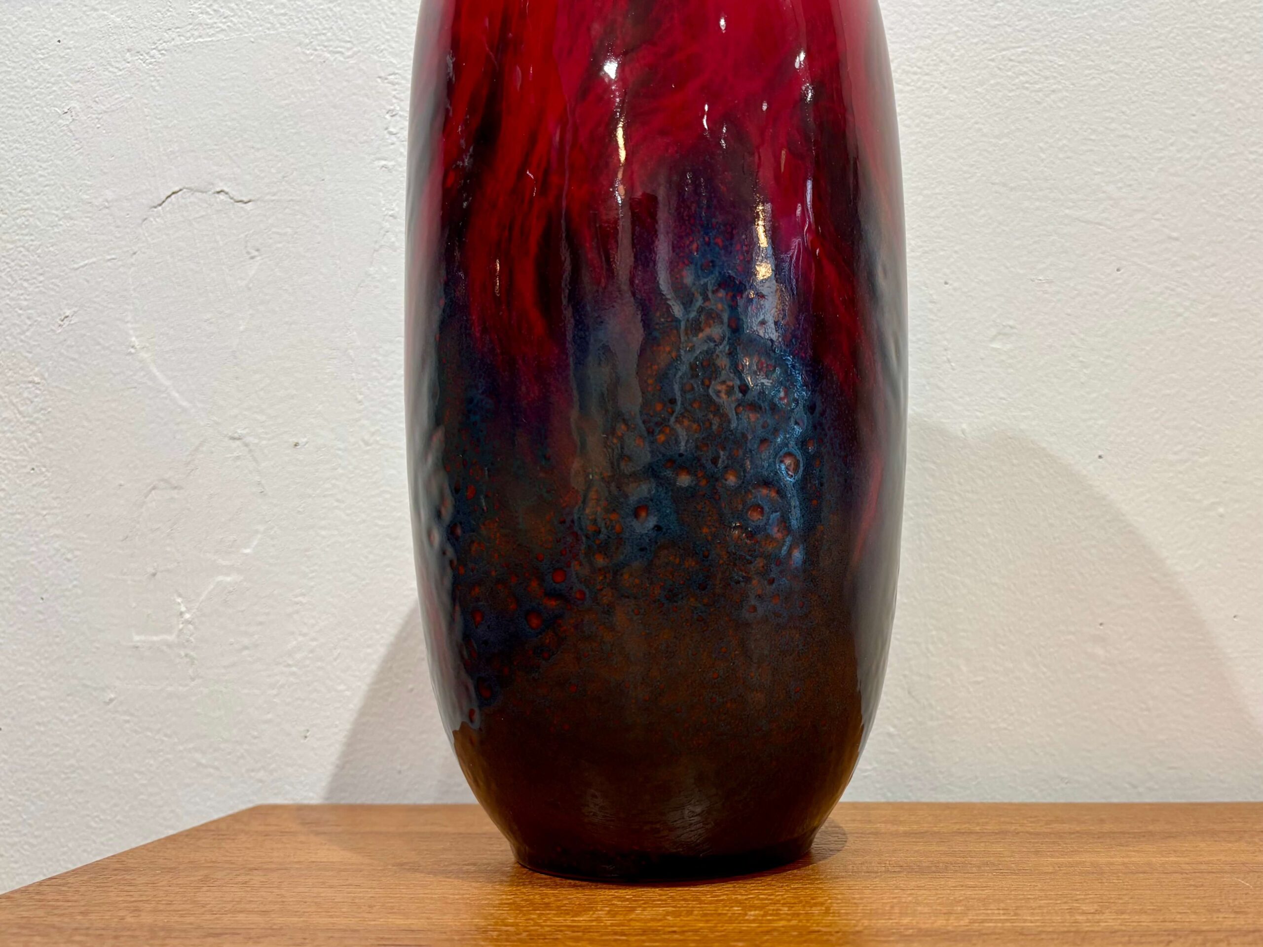 燃えるような深紅に昇り立つ深いブルー、躍動感あるデザインは流石。