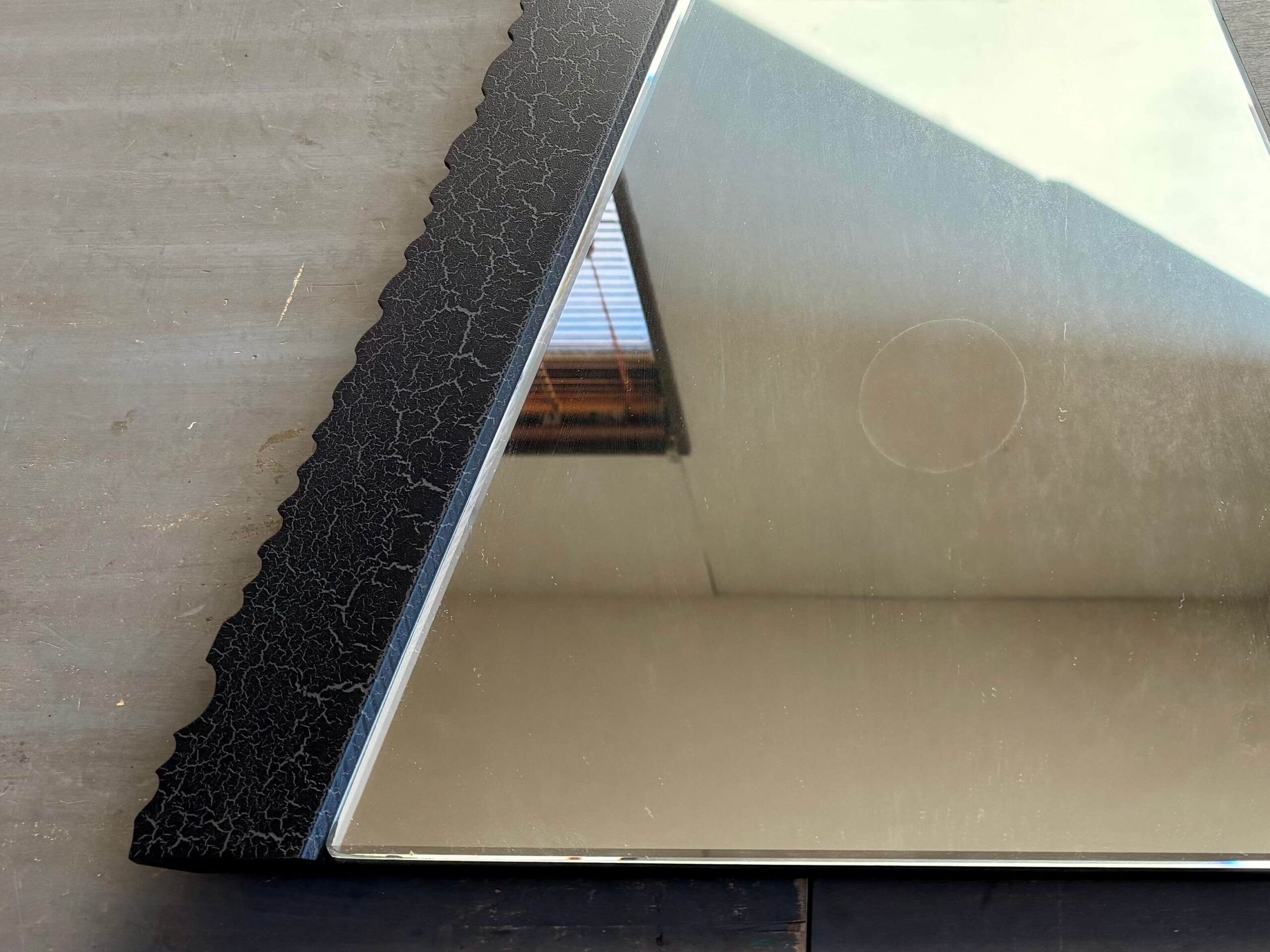 ミラーに映る「○」「○」は裏面の接着箇所が影響していると思われます。