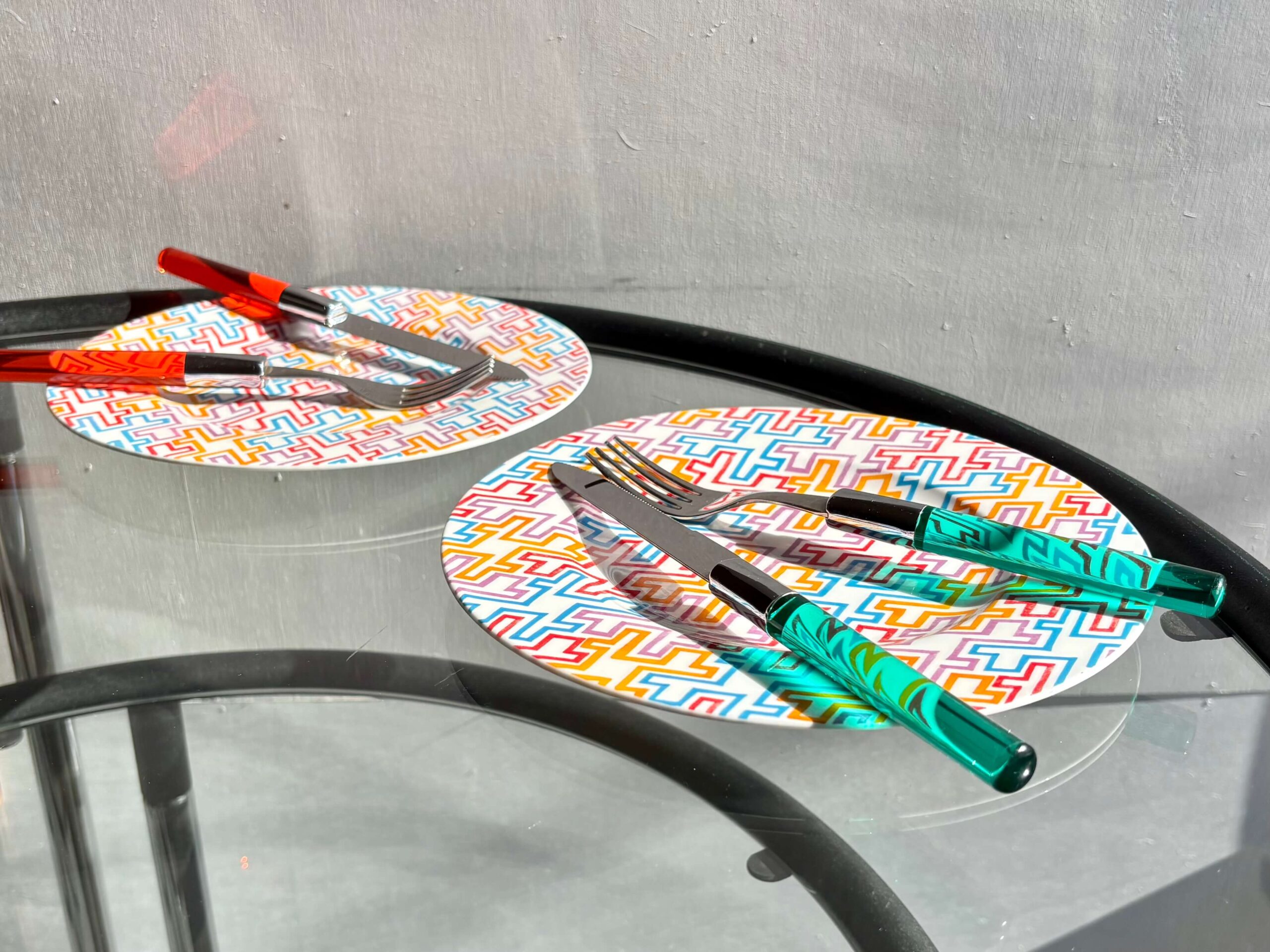 カラフルなアクリルハンドルが特徴的なカトラリーセット。