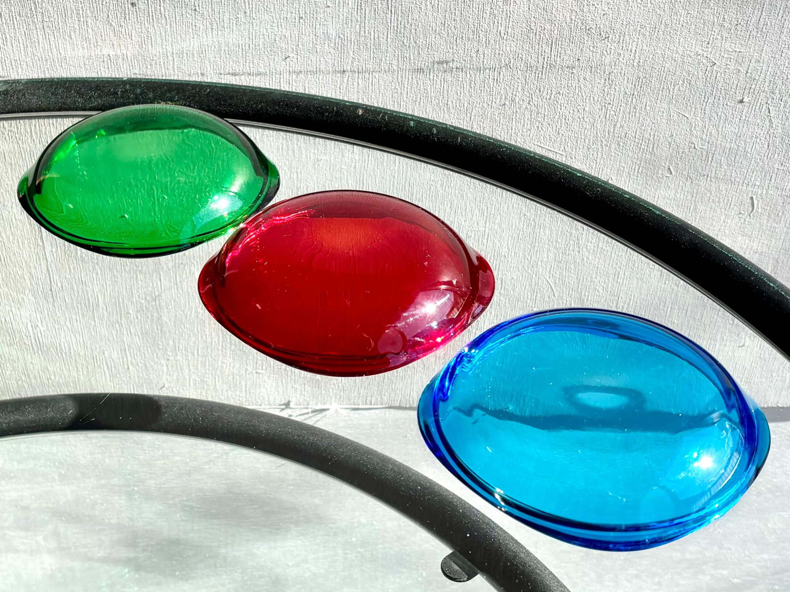 経年変化・スレ・キズ、ダメージが見られ、グリーンの1枚にはチップが散見されます。