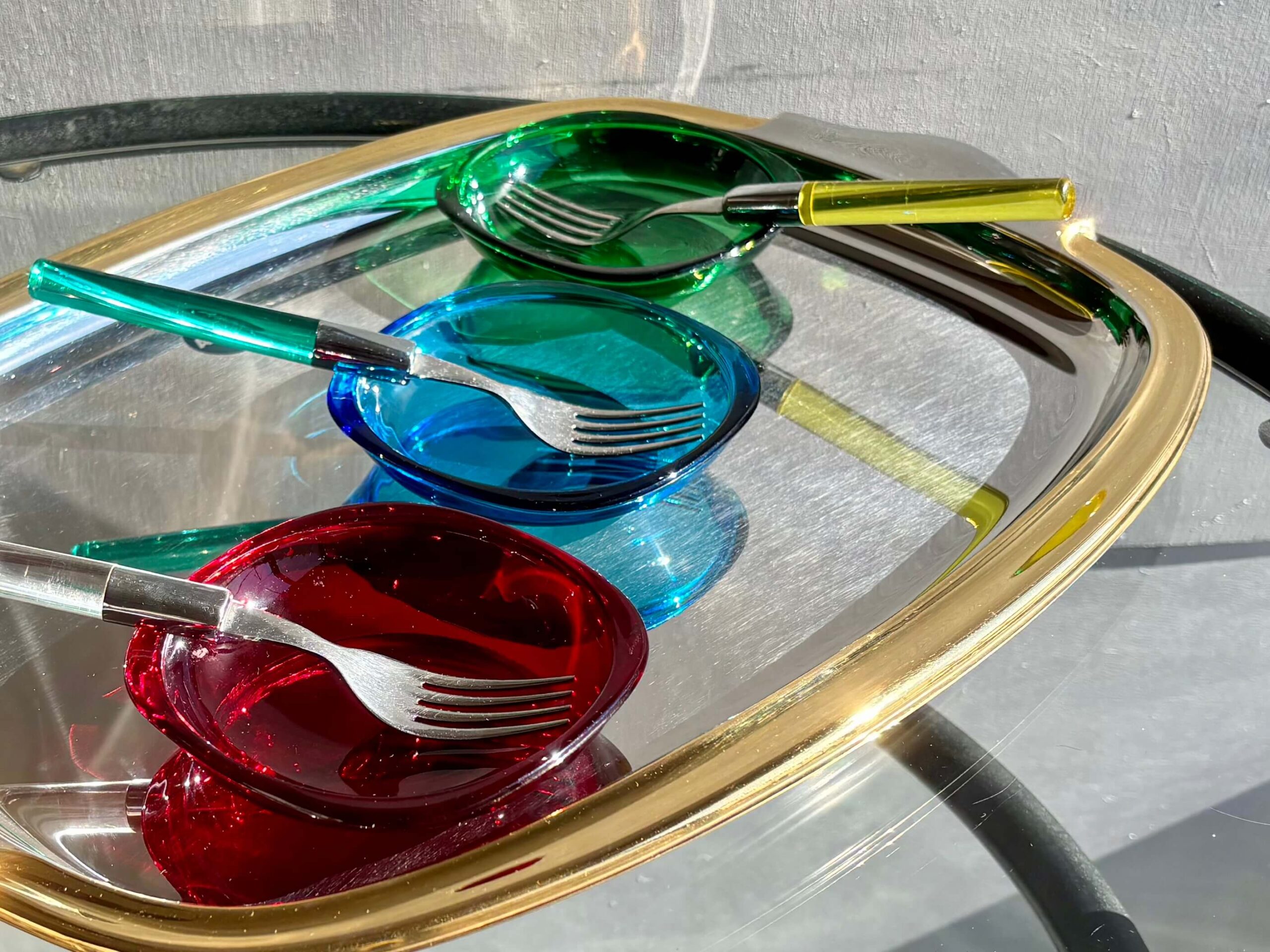 No.12142「カガミクリスタル ガラスプレート3色セット:’67グッドデザイン賞」