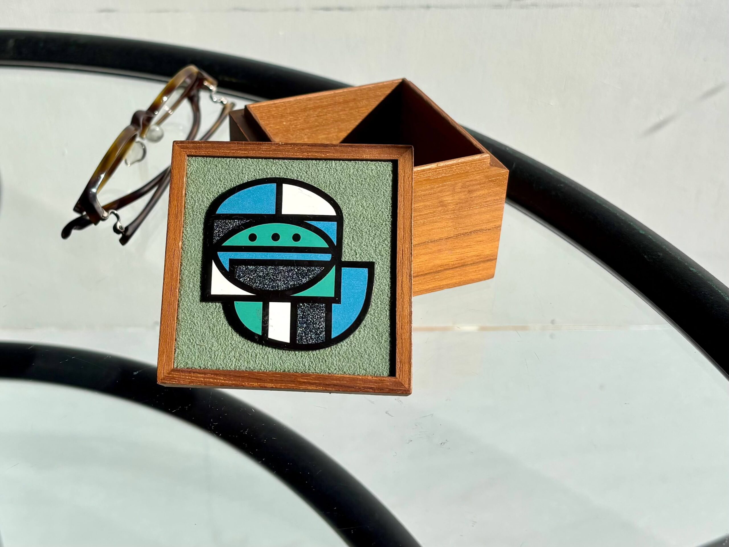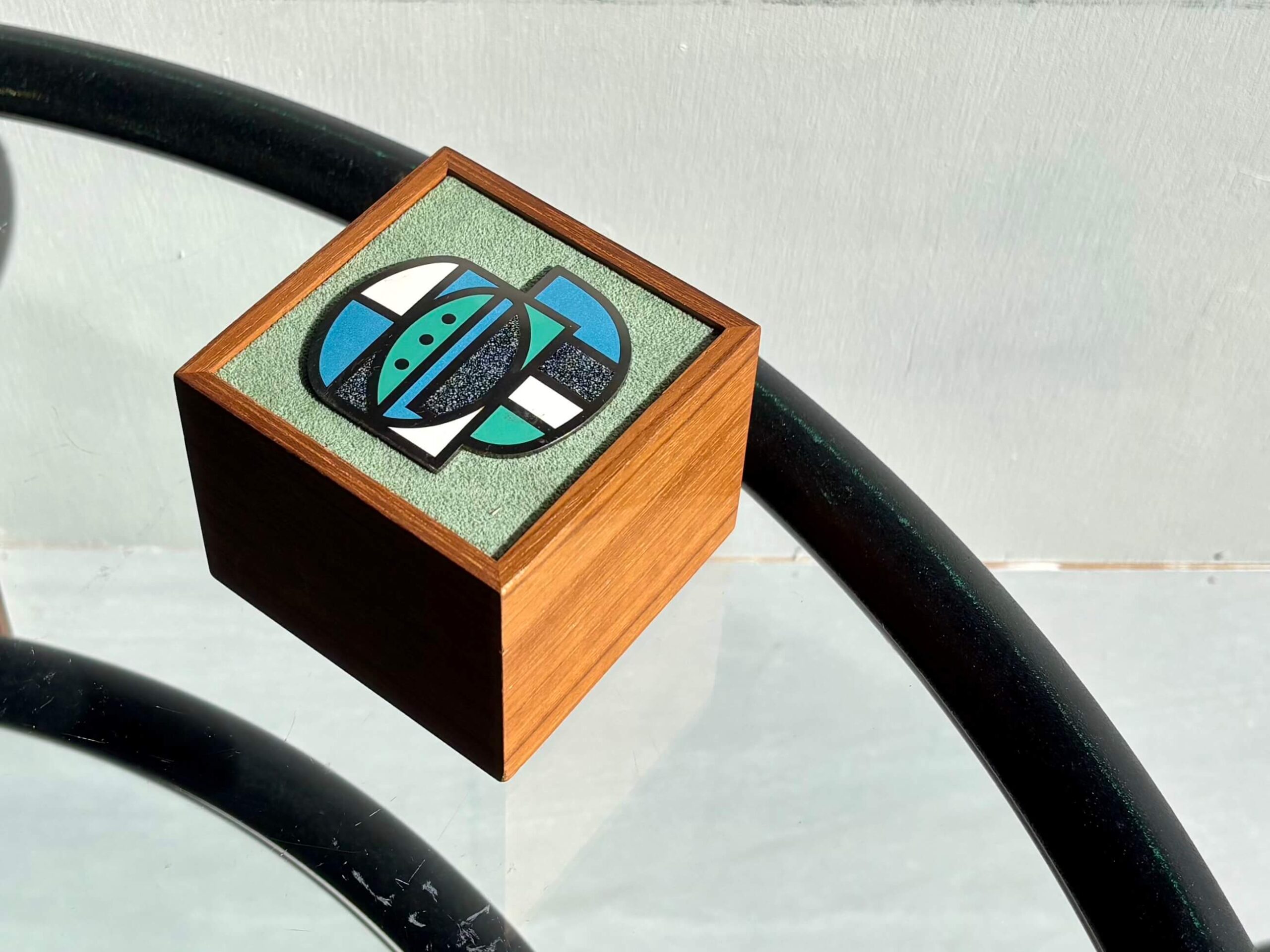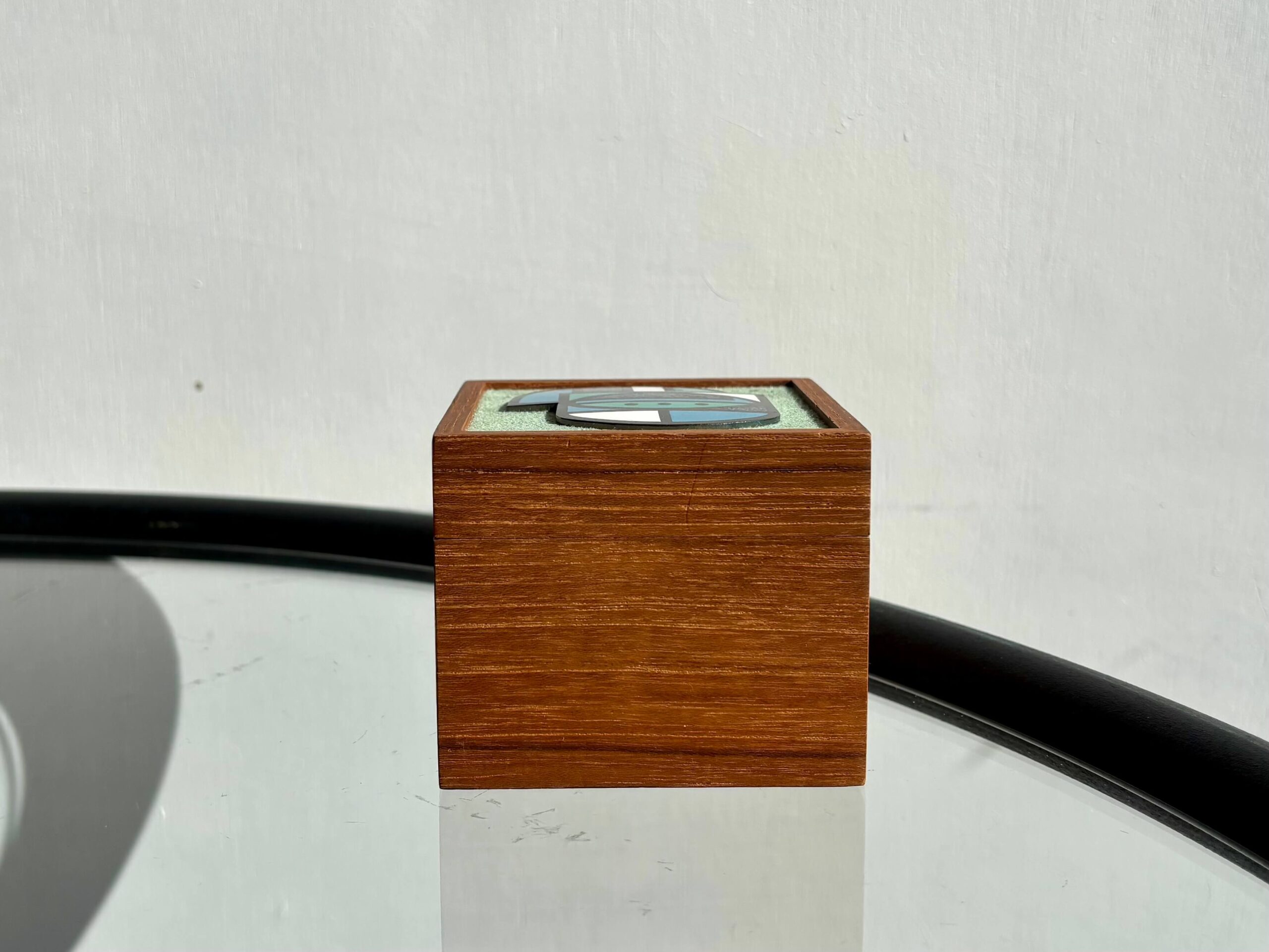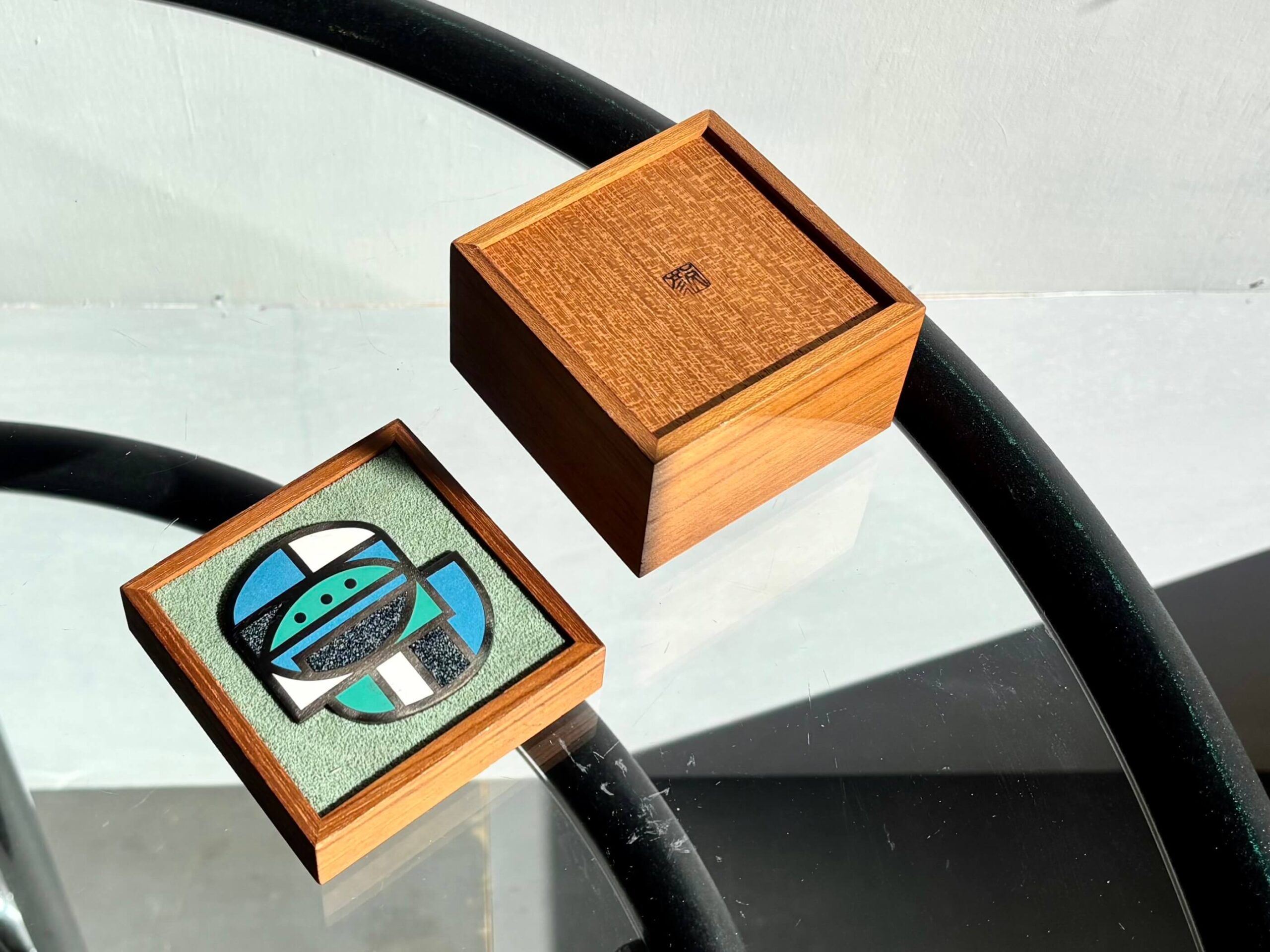 精緻なつくりのチーク無垢ボックス、そして蓋には七宝飾り。