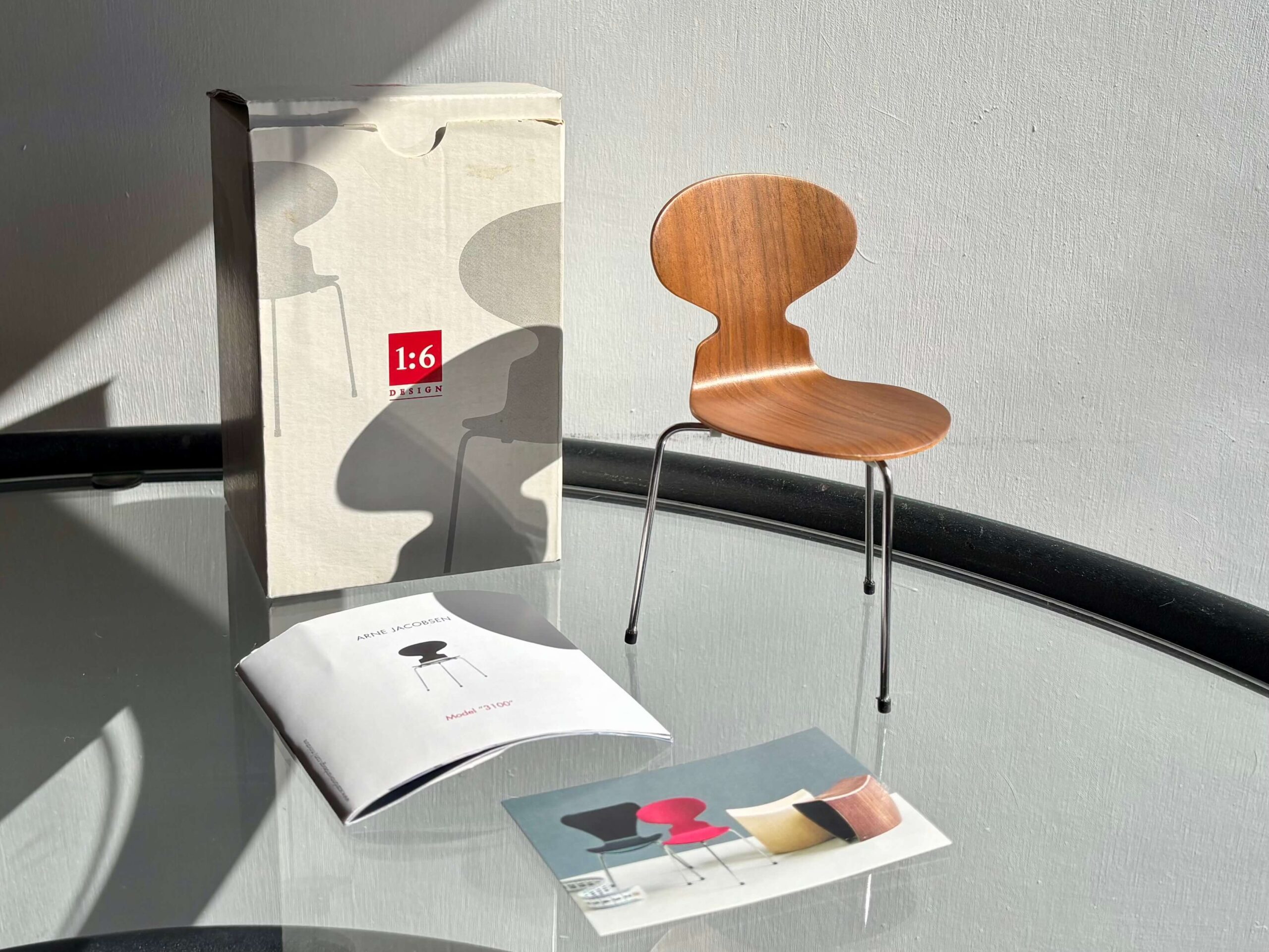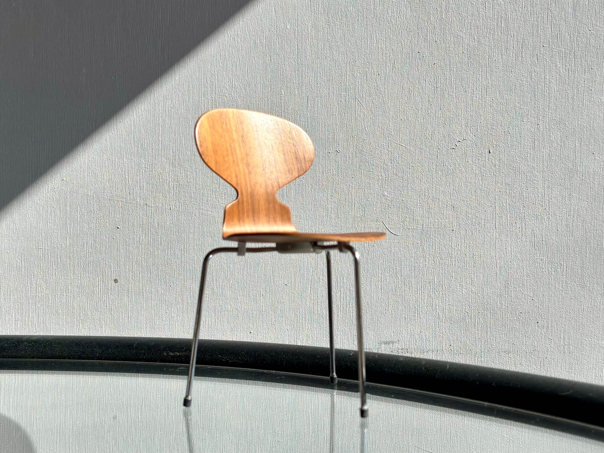 1952年アルネ・ヤコブセンによりデザインされた〈ANT CHAIR / アリンコチェア〉のミニチュアオブジェ。