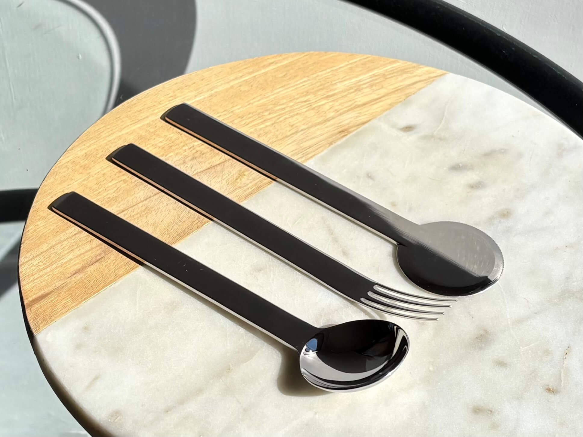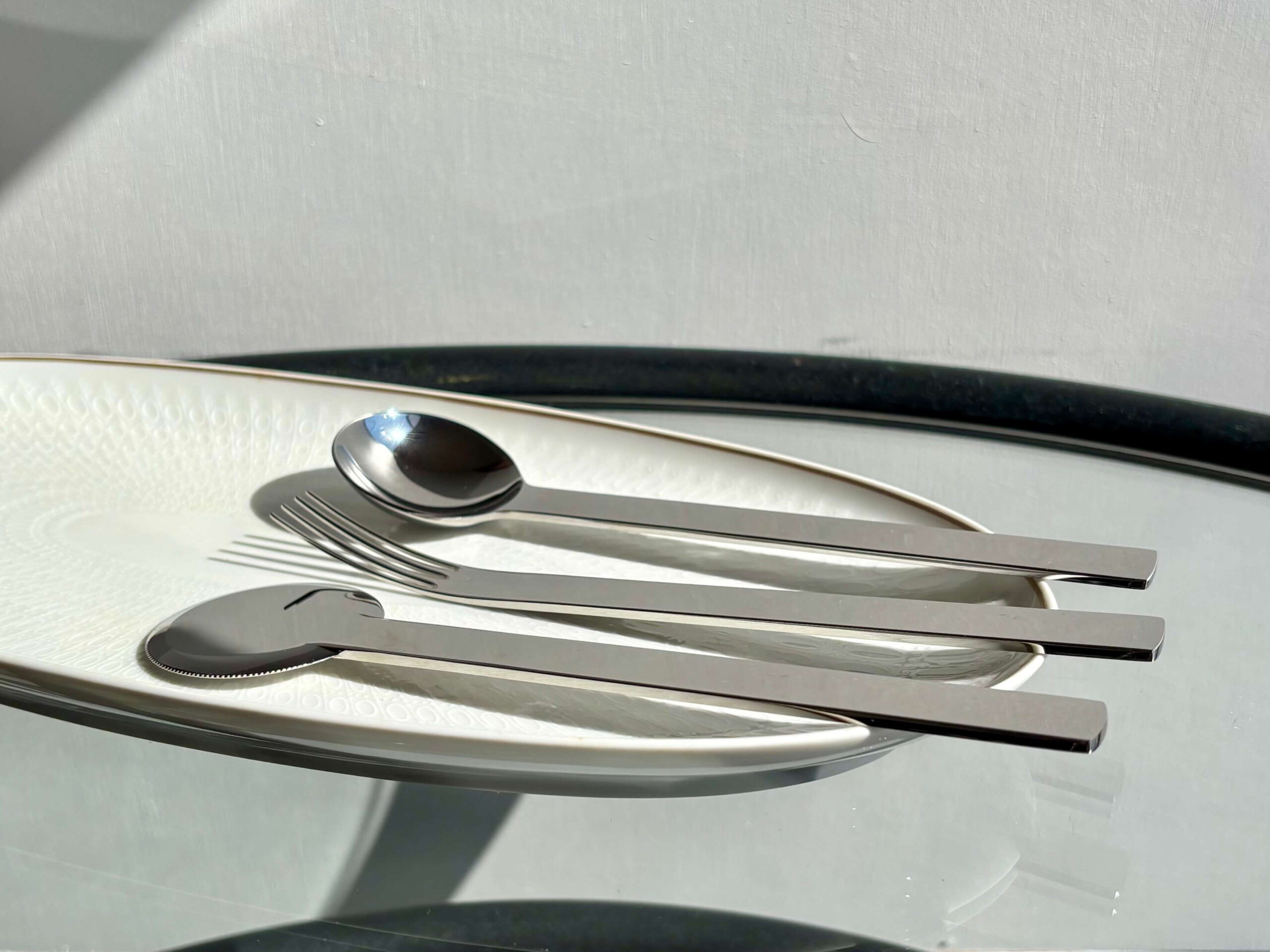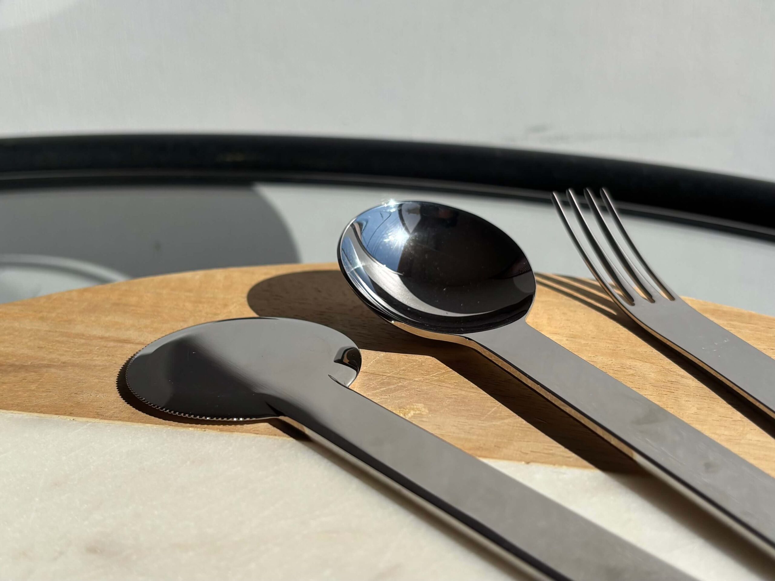 特に目を惹くディナーナイフは円形!片側のみ波刃になっています。