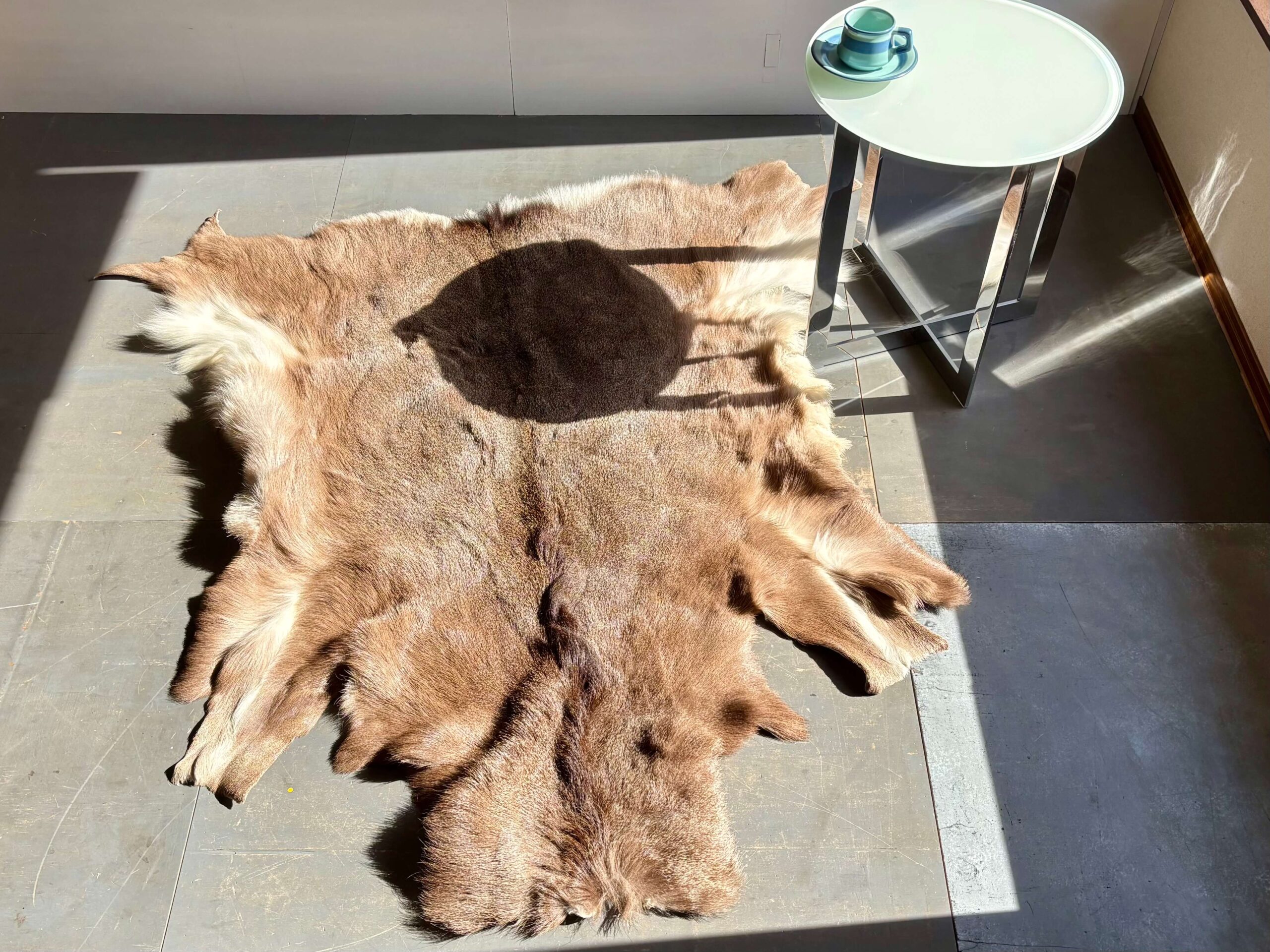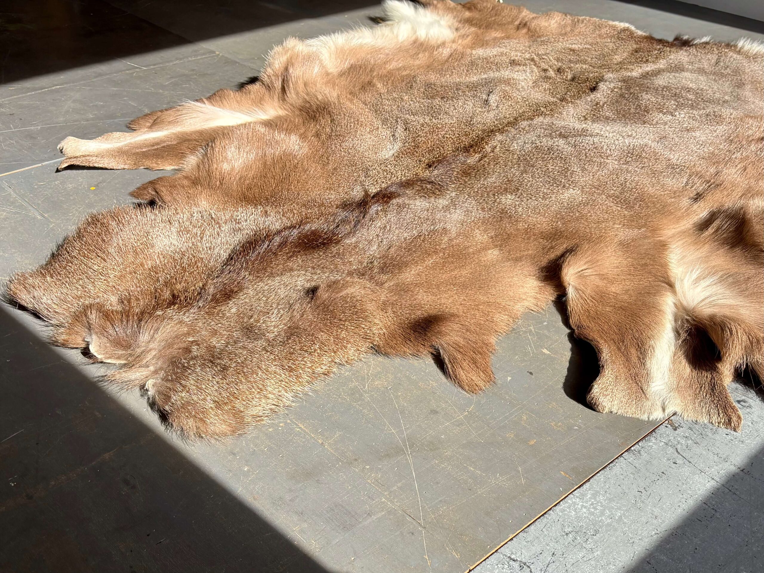 珍しい蝦夷鹿の毛皮のラグ。