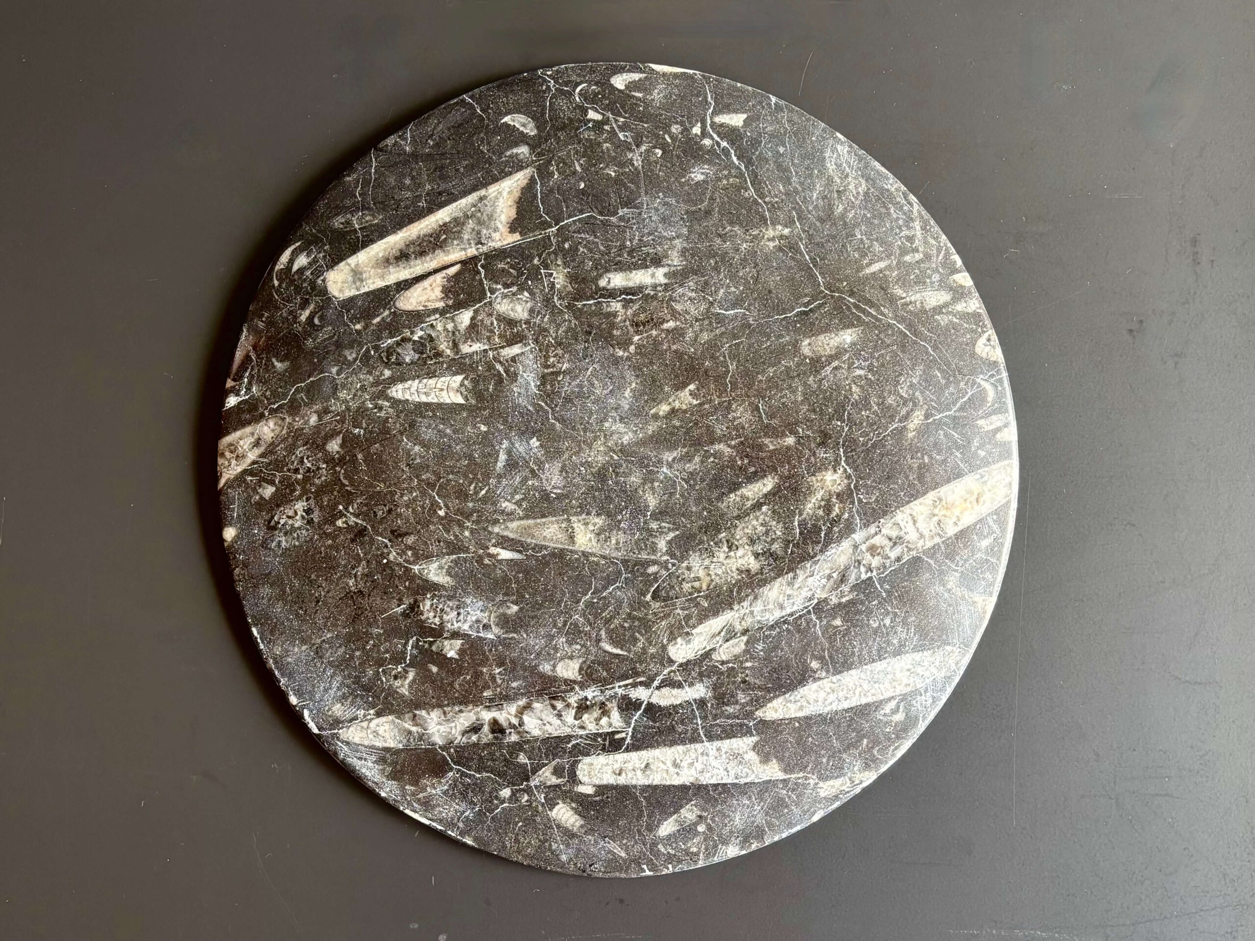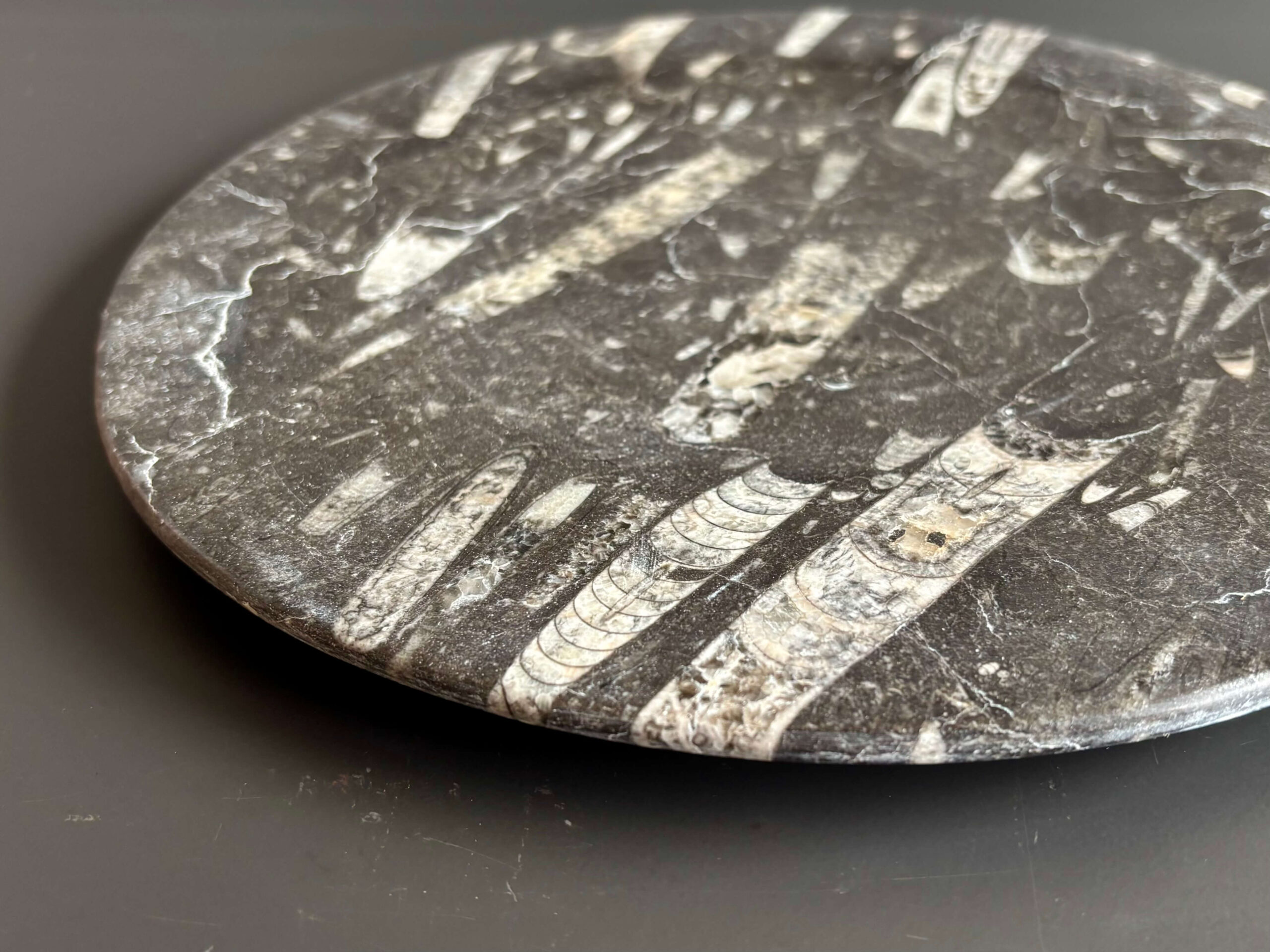 Orthoceras、直角貝と呼ばれるイカやタコの仲間の化石プレート。