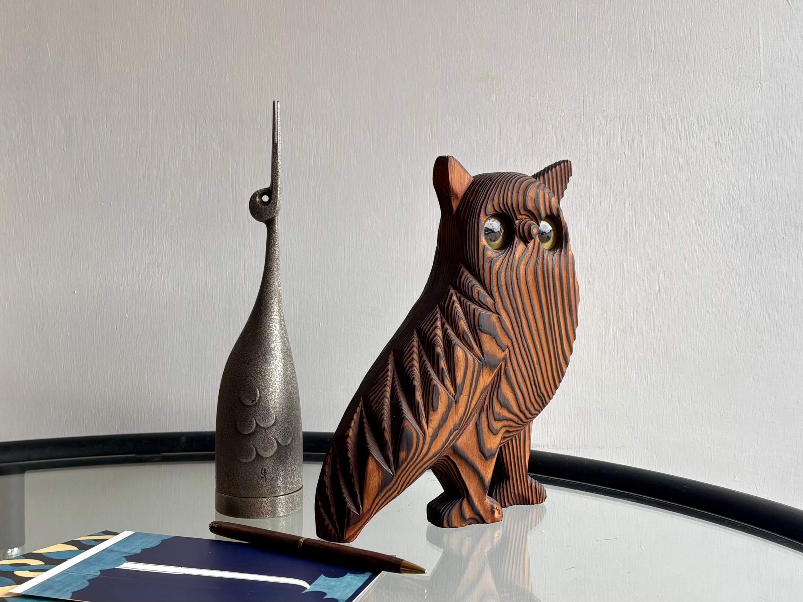 No.12231「伝統工芸品:浮造り オブジェ〈ミミズク〉」高さ20.5cm