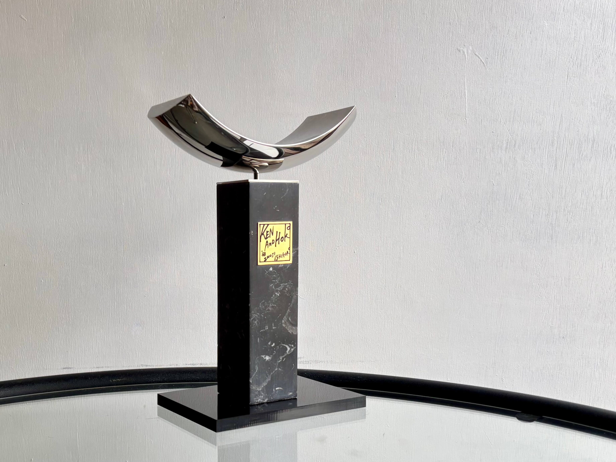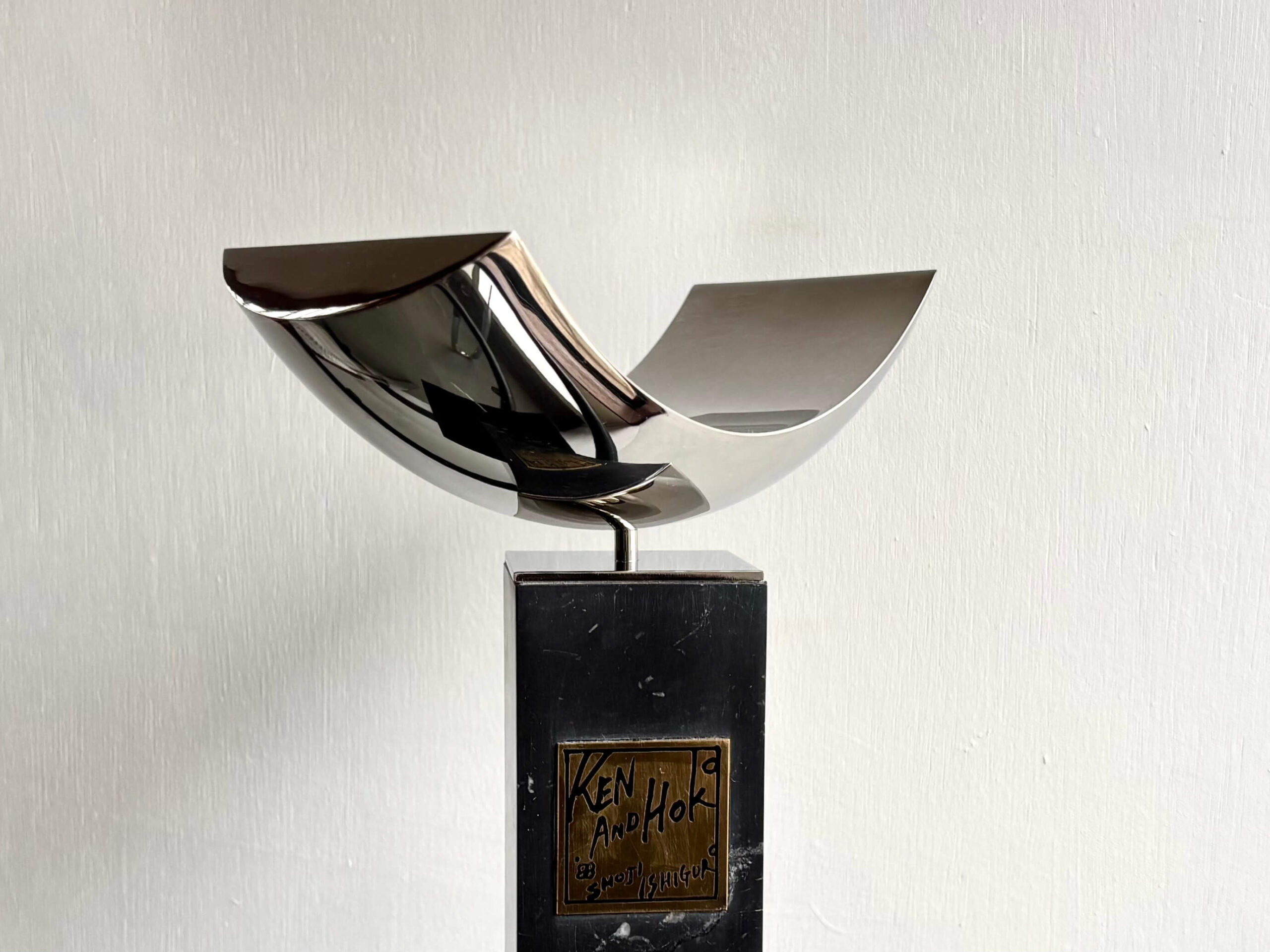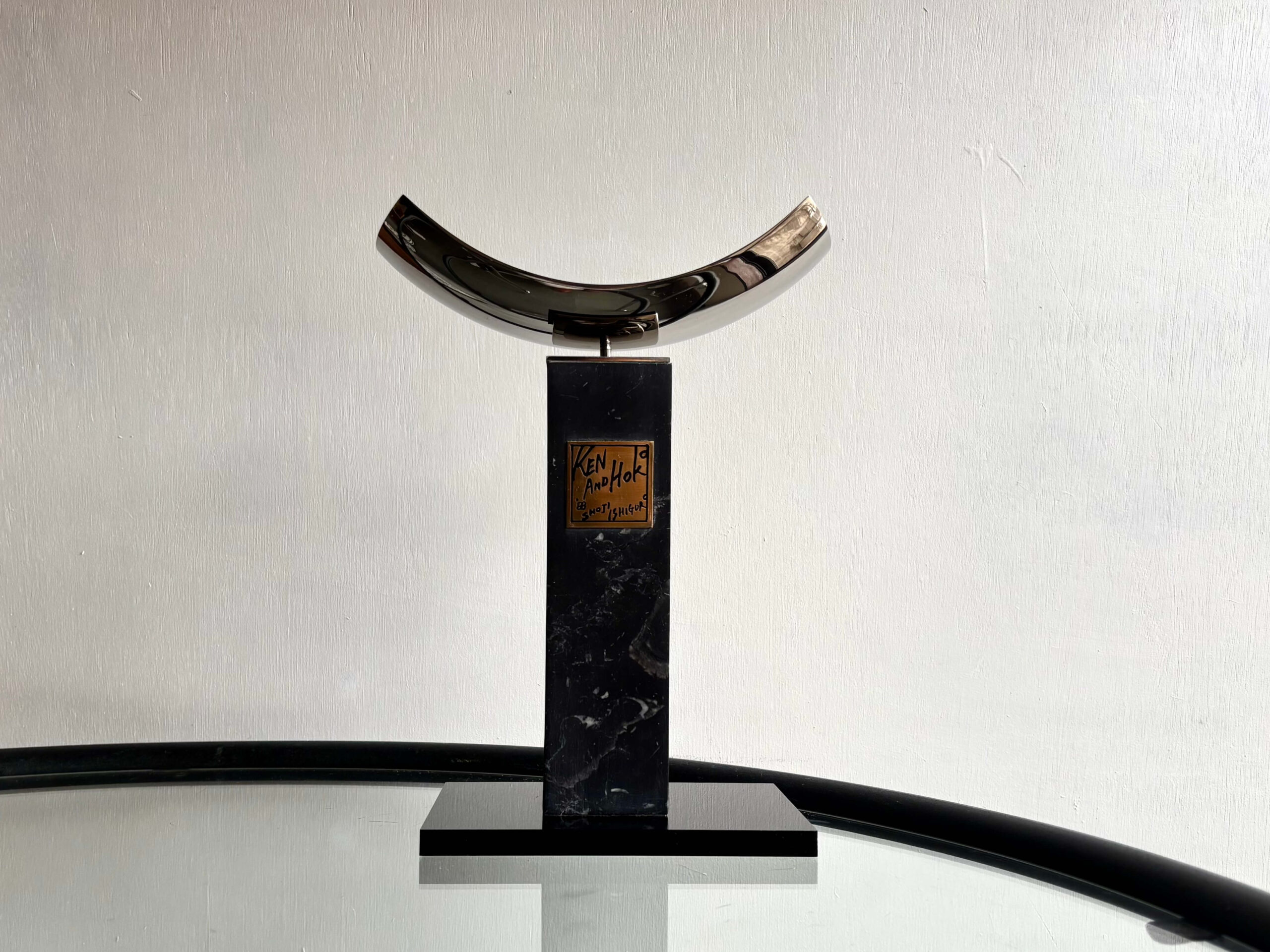 アクリル台に乗せられた支柱には「KEN AND HOKO」の文字。
