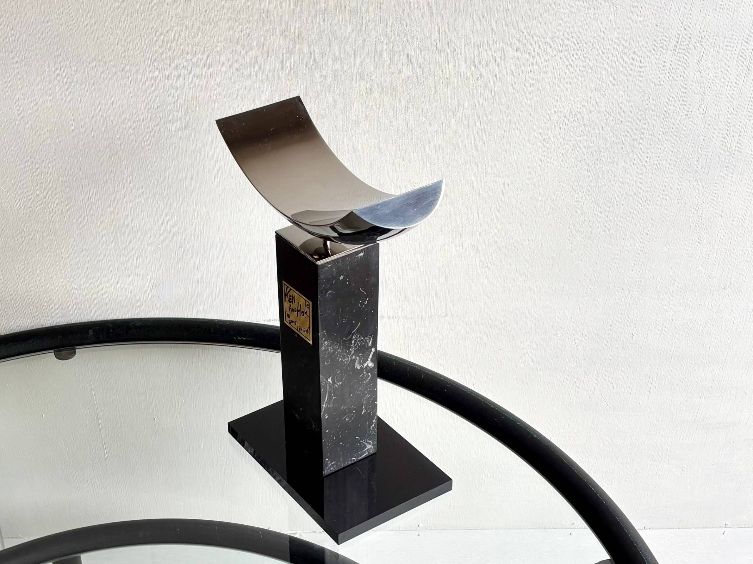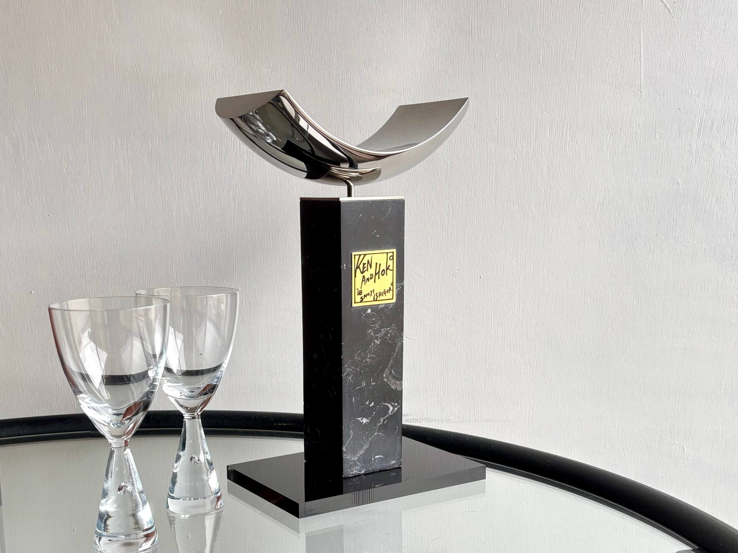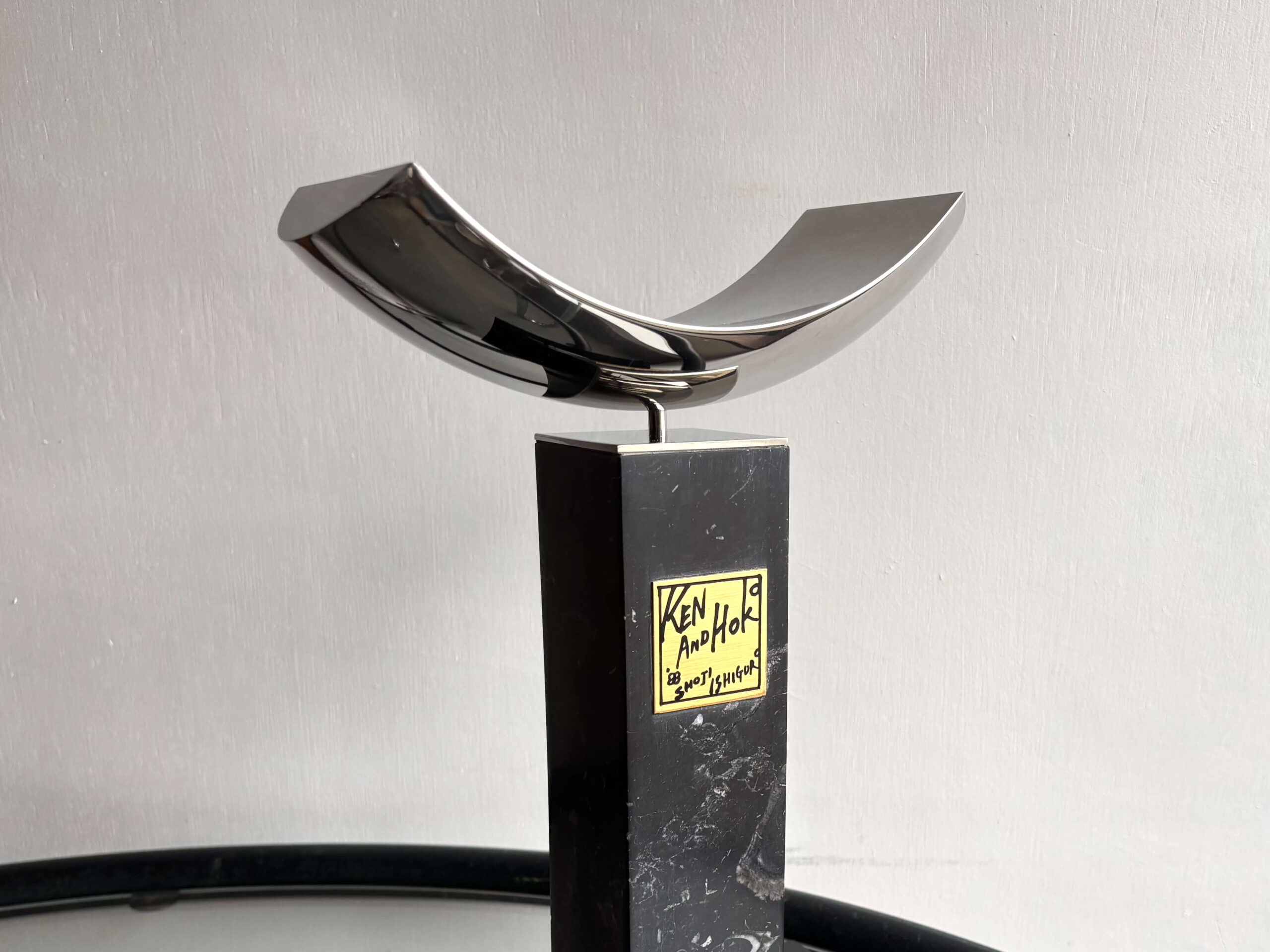 アクリル台に乗せられた支柱には「KEN AND HOKO」の文字。