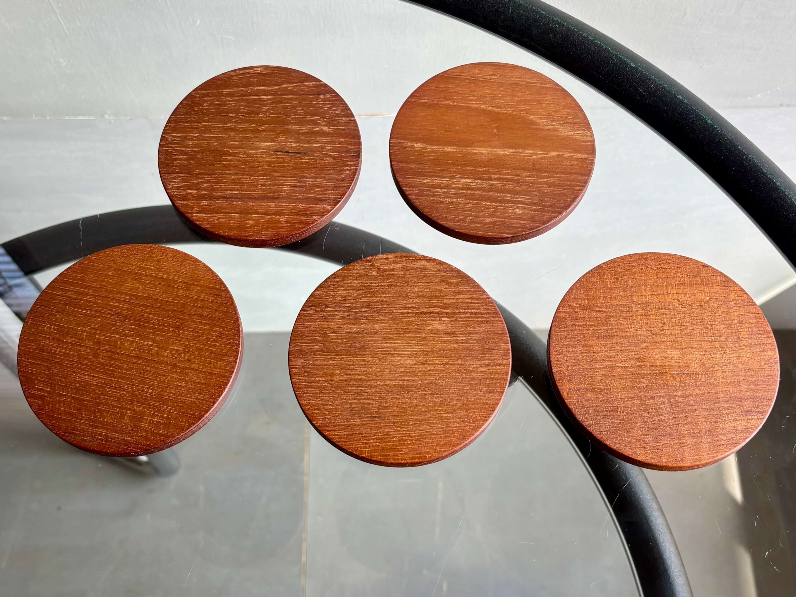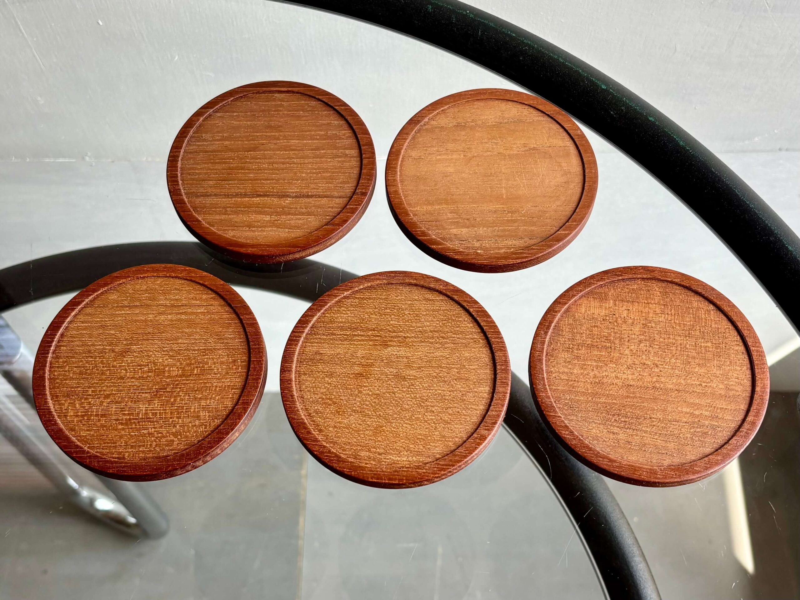 贅沢にチーク無垢材から削り出した5枚。