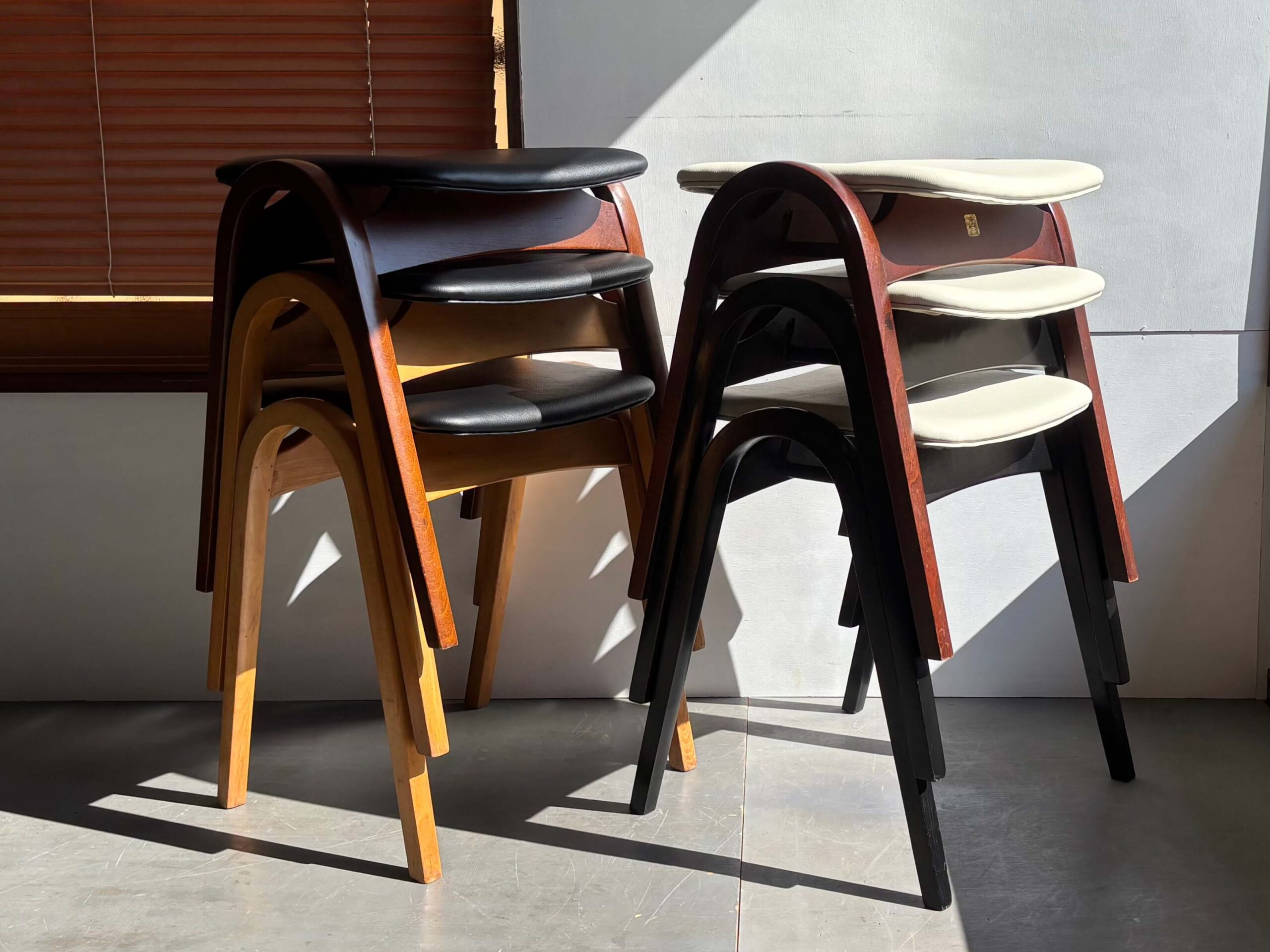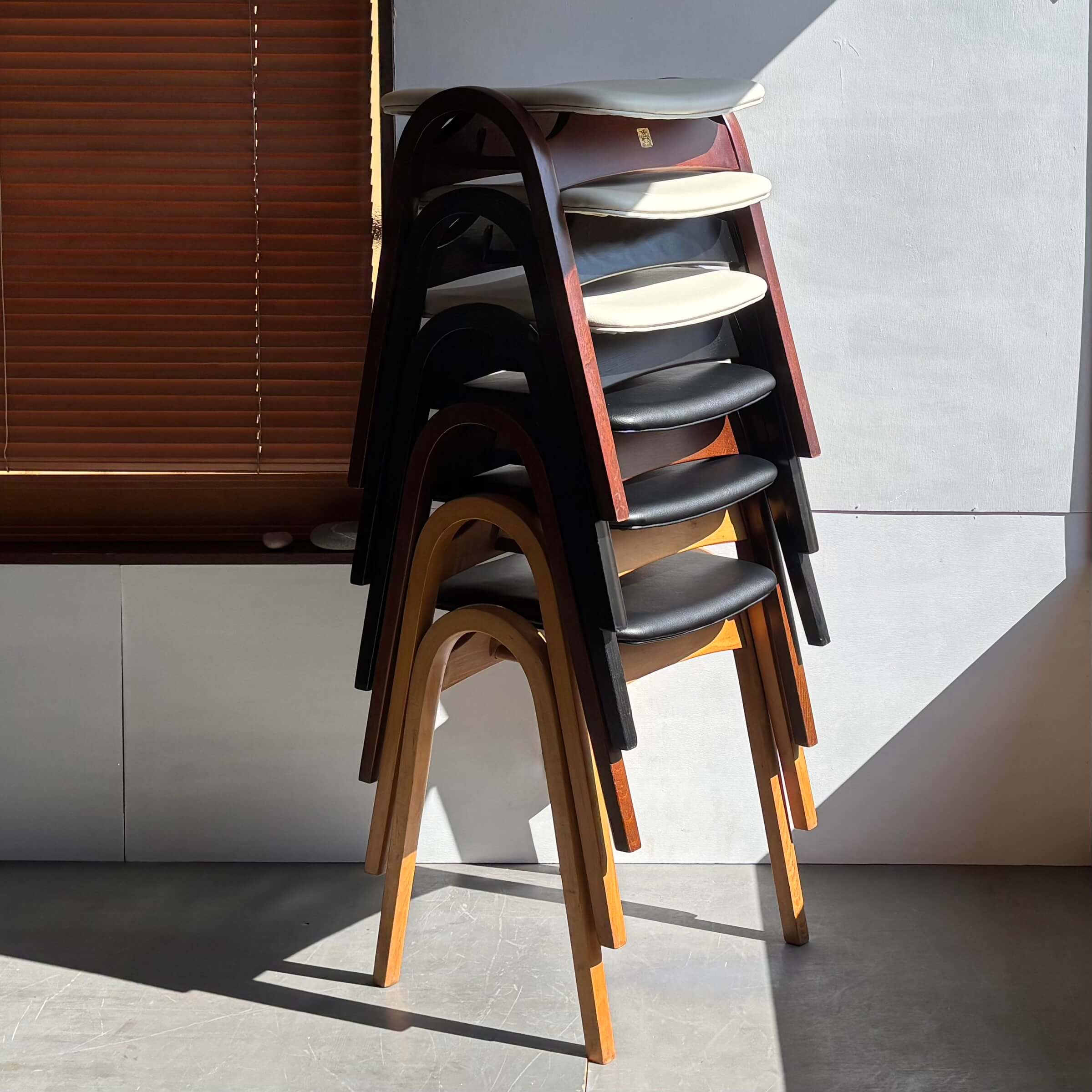 今回当店で新たに張り替えたスタッキング スツール No.202は6脚。
