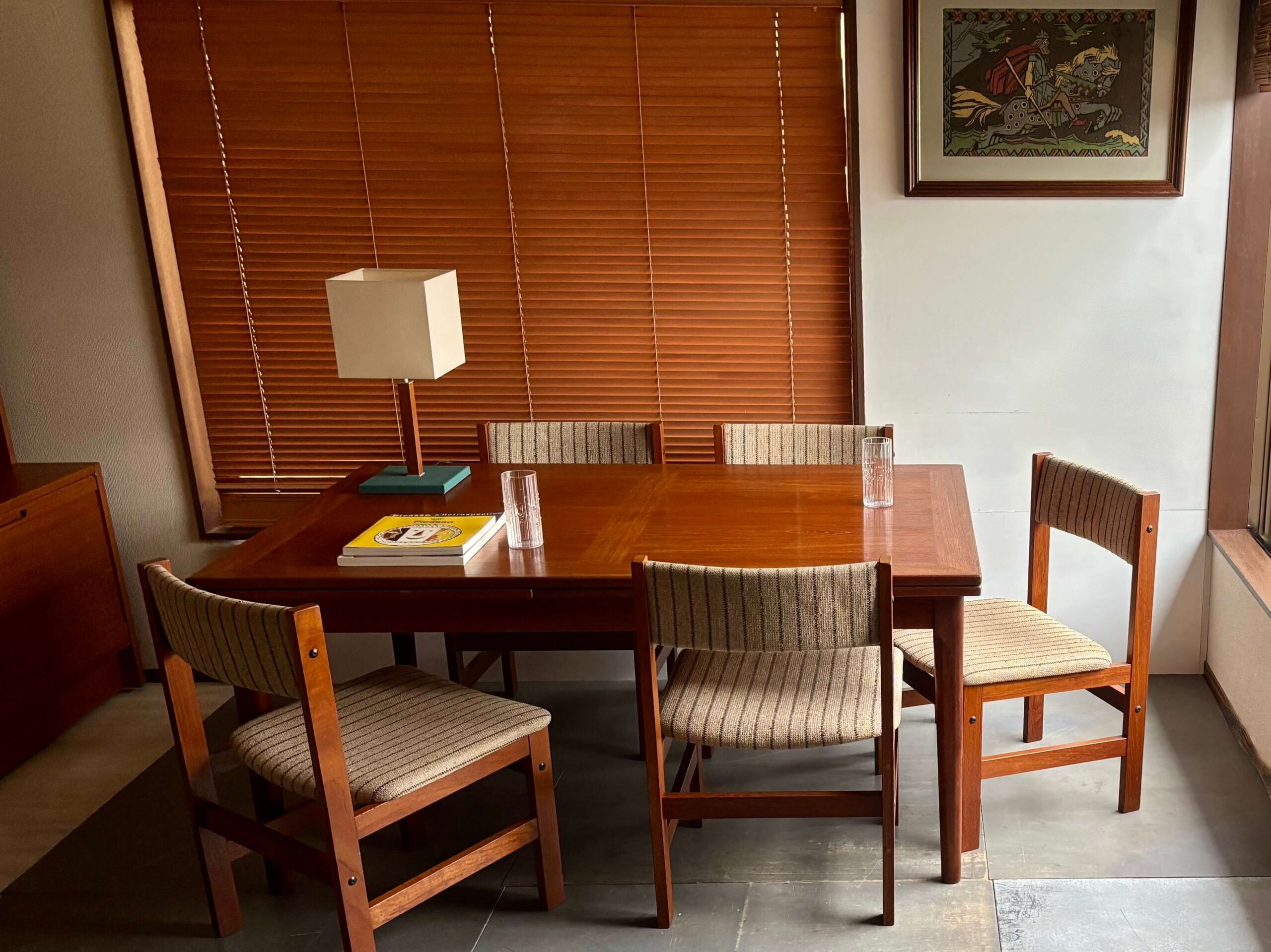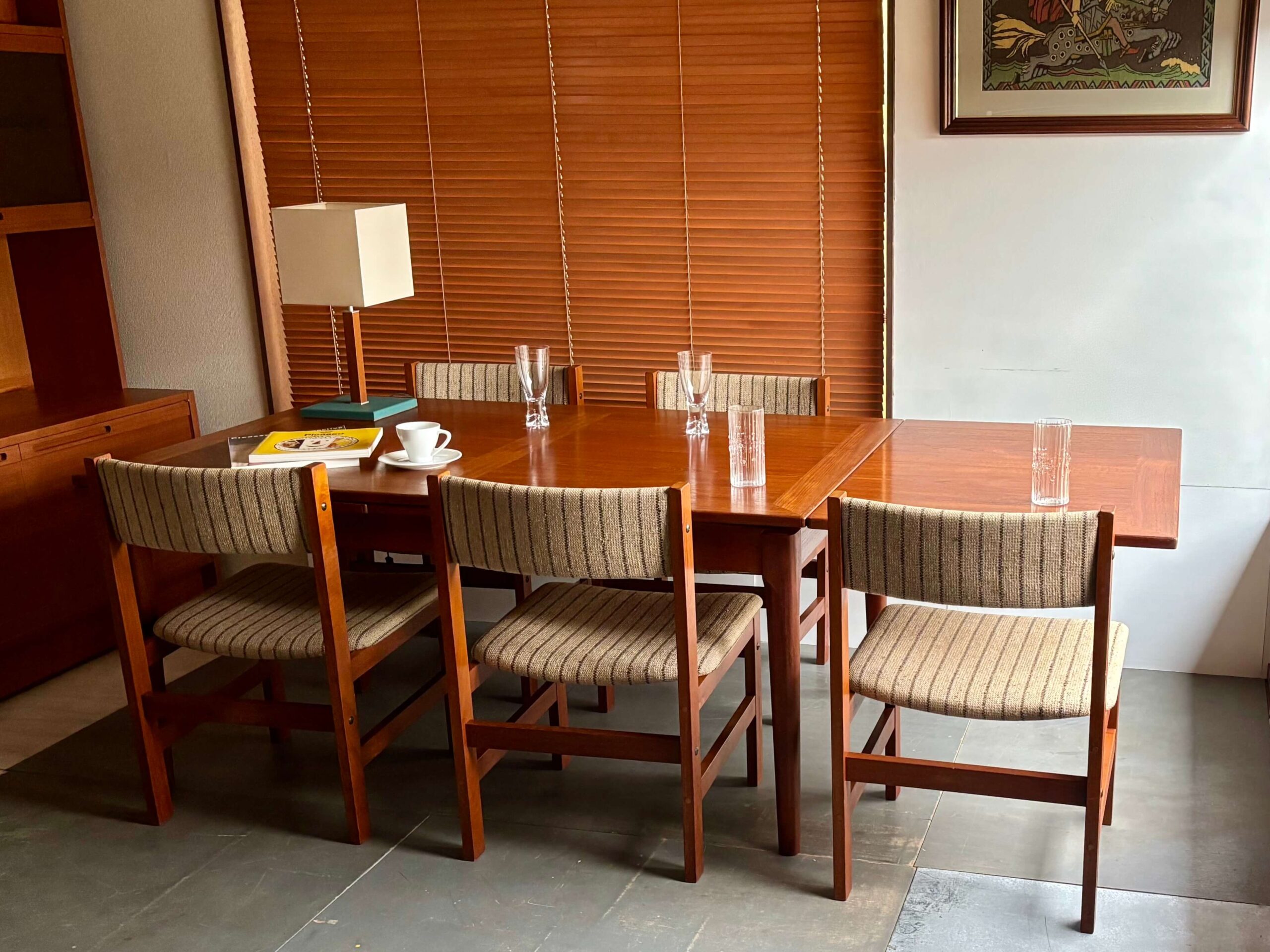 skovby(スコビー)による伸長式テーブルとSPOTTRUP(スポットラップ) チェア5脚のダイニングセット。
